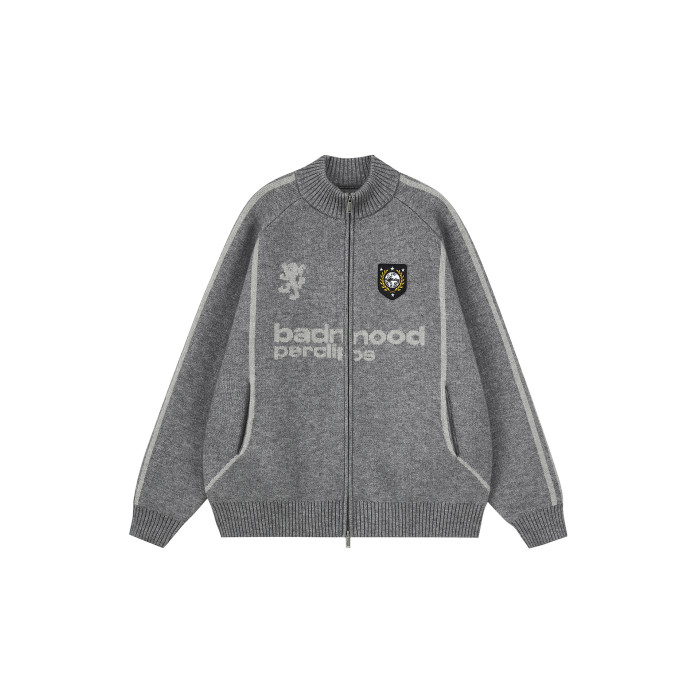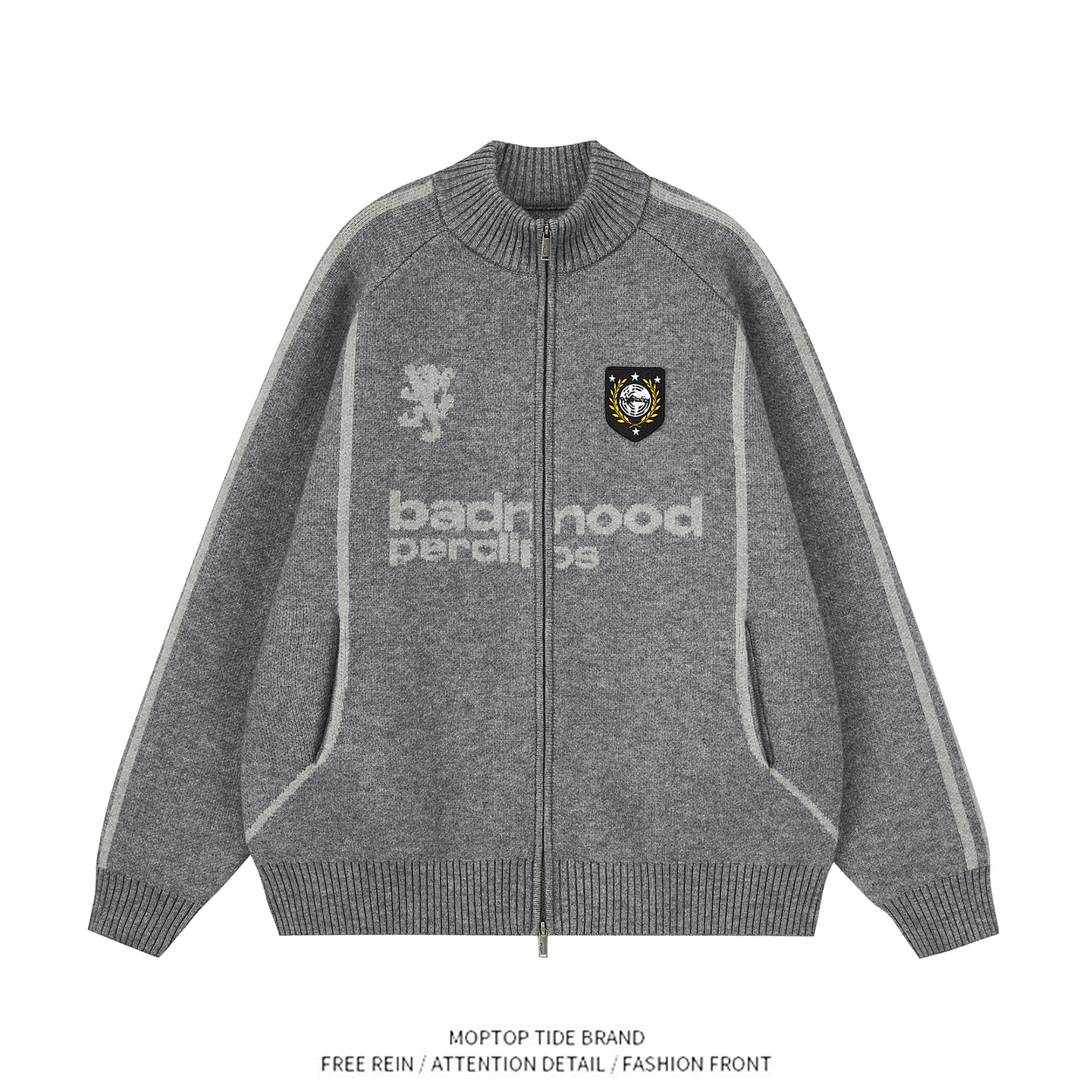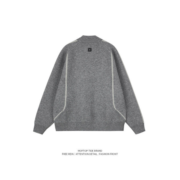 WHXS球服風高領開衫毛衣國潮牌寬松復古秋冬季針織衫拉鍊外套男