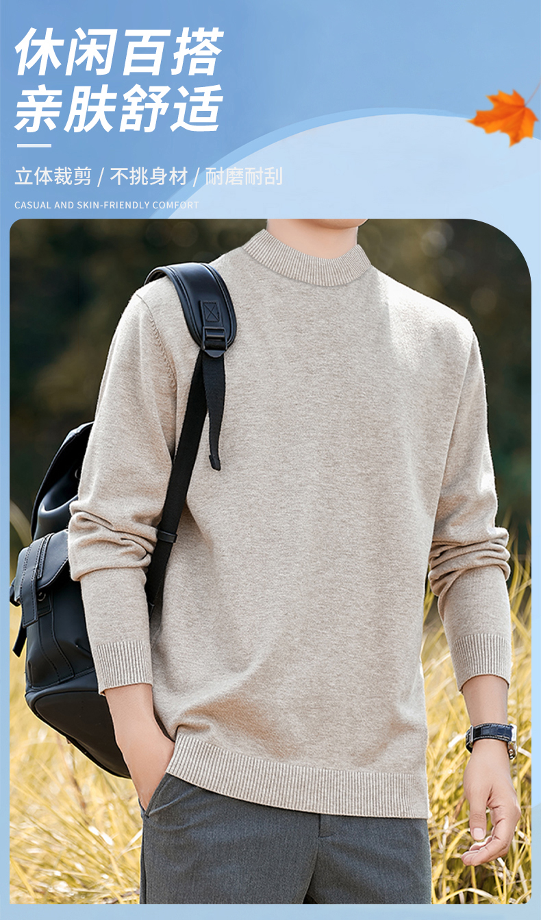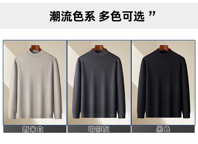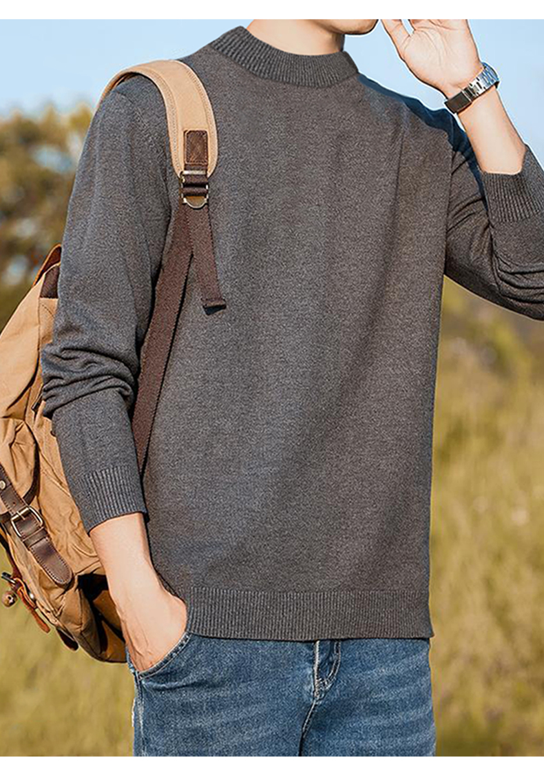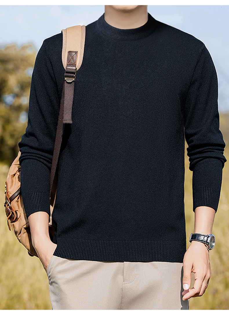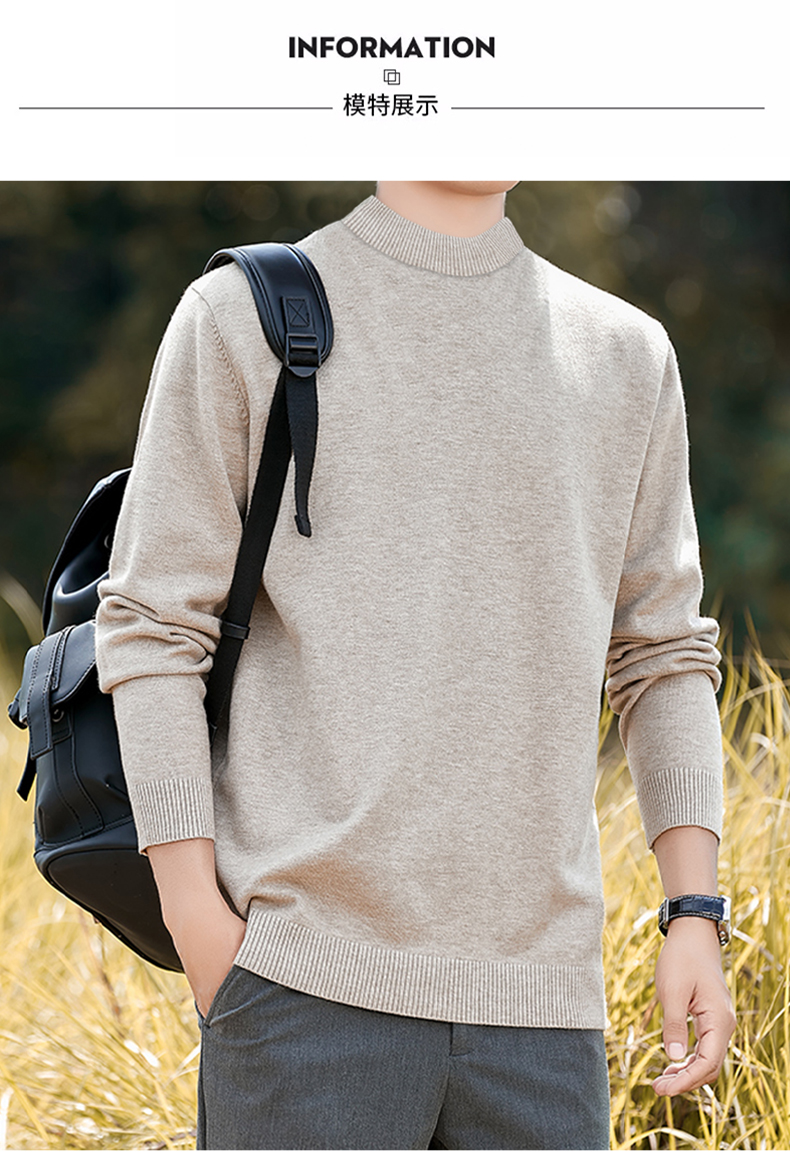 中青年男士保暖半高領毛衣秋冬季純色百搭日常打底休閒舒適針織衫