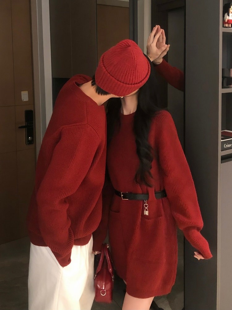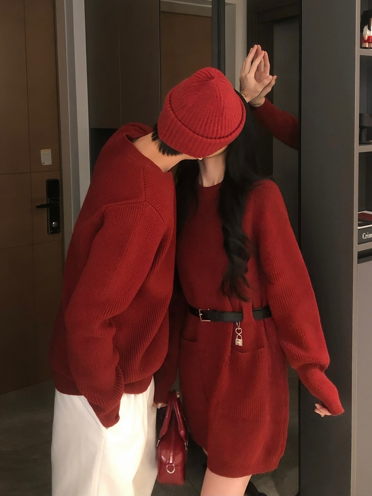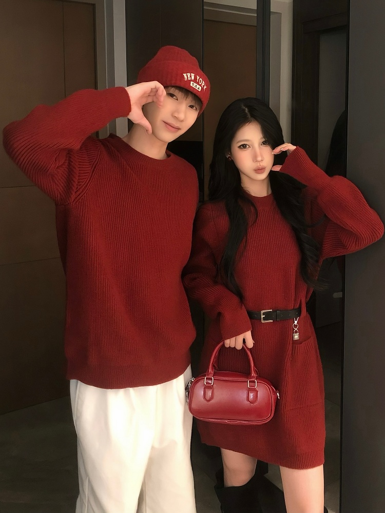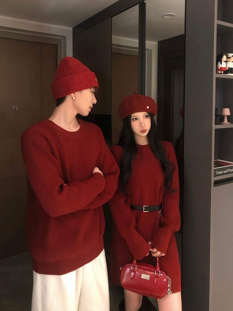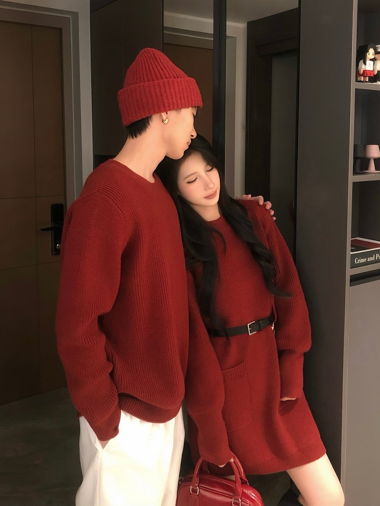 紅色情侶裝毛衣一裙一衣高級感聖誕過年本命年領証登記針織衫男女