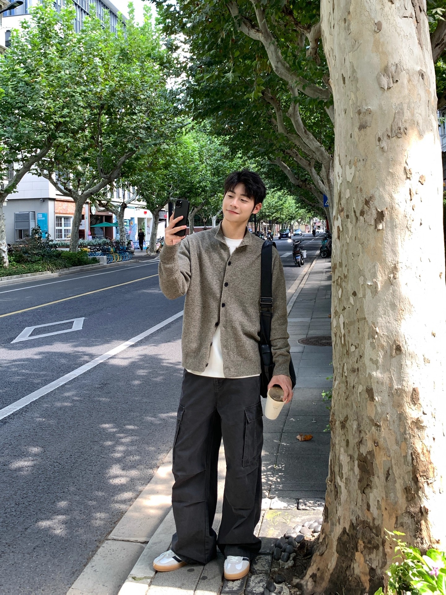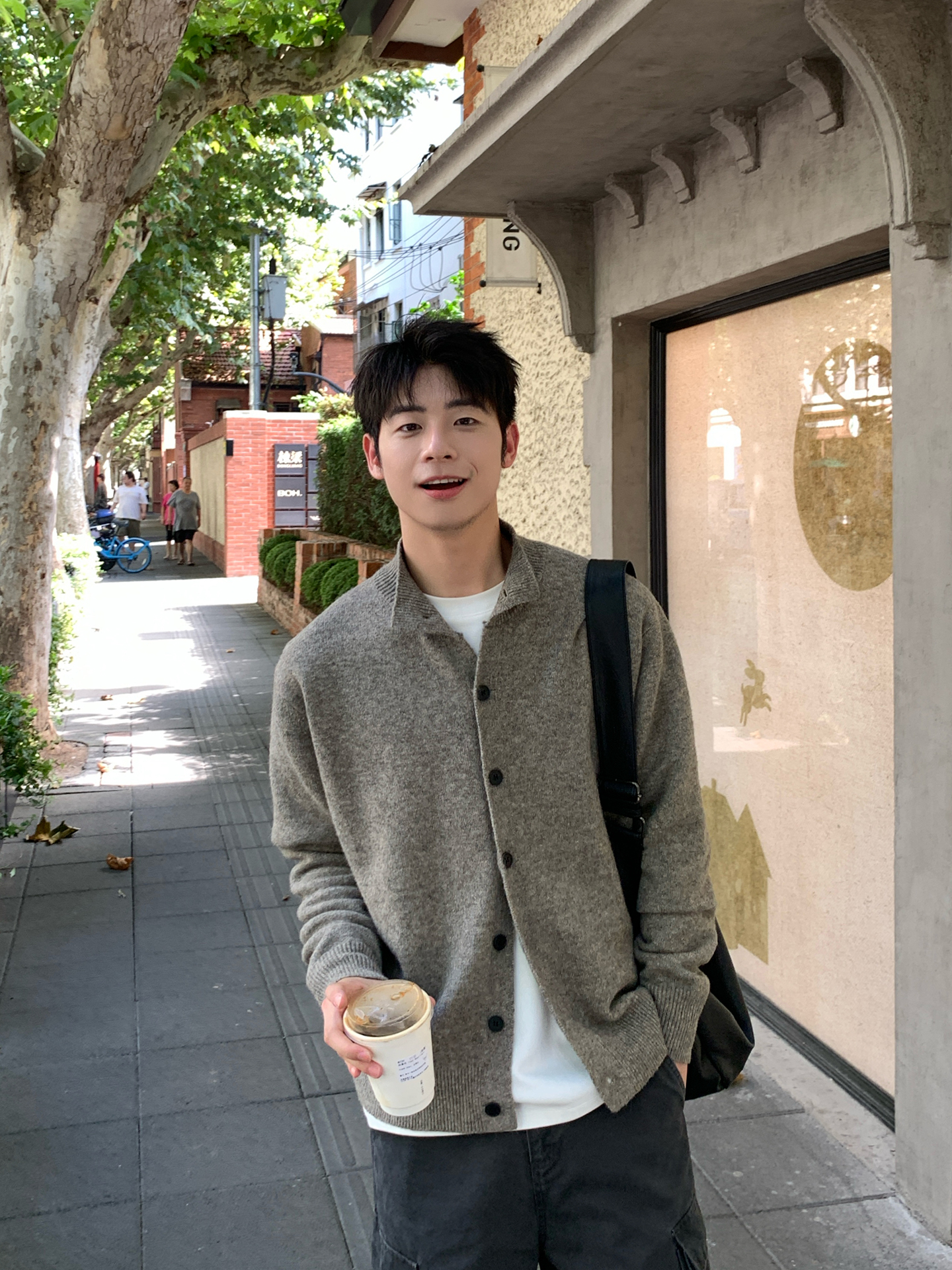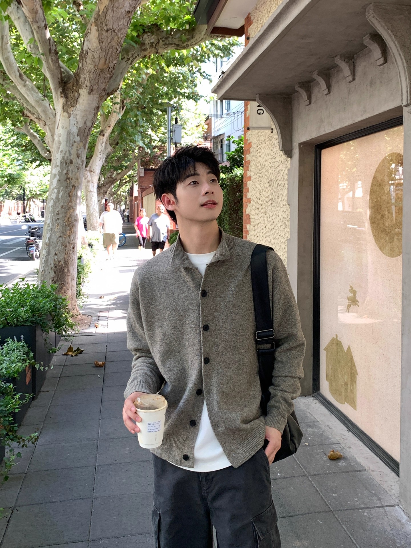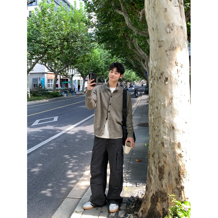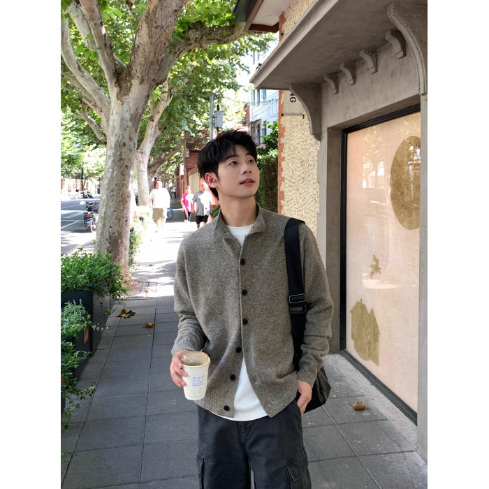 25FW 日式半高領紐釦開衫毛衣男秋冬季簡約休閒長袖針織線衣外套