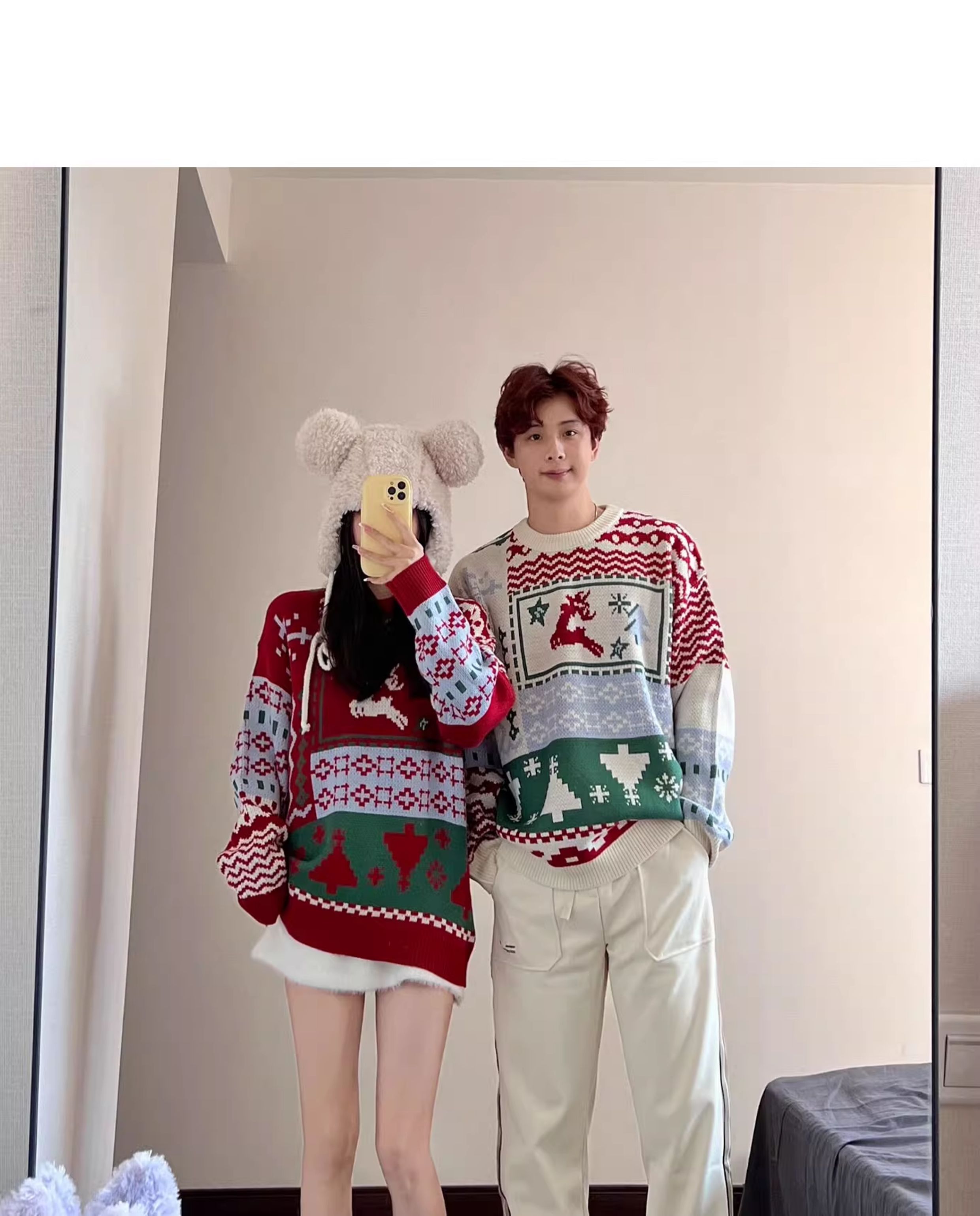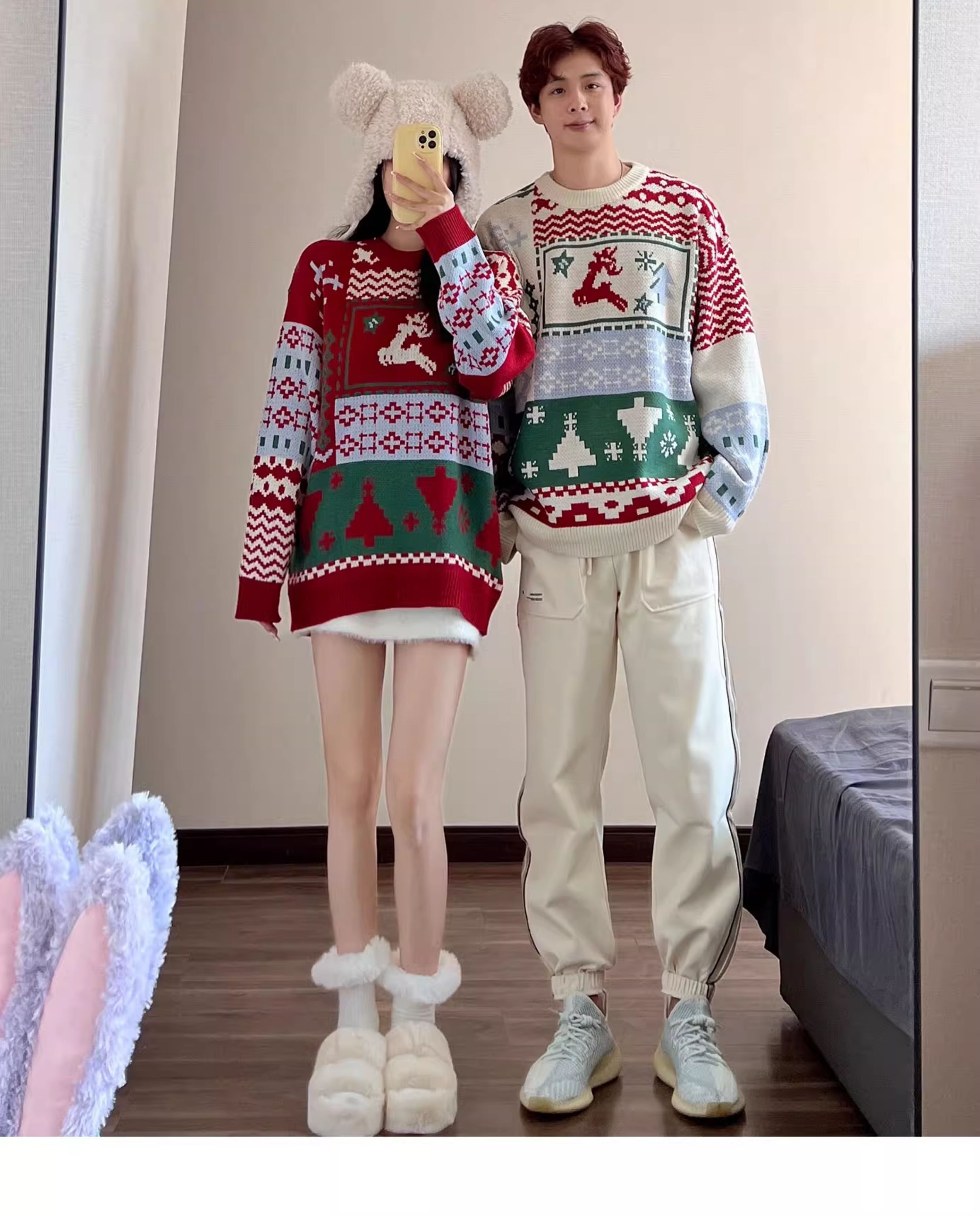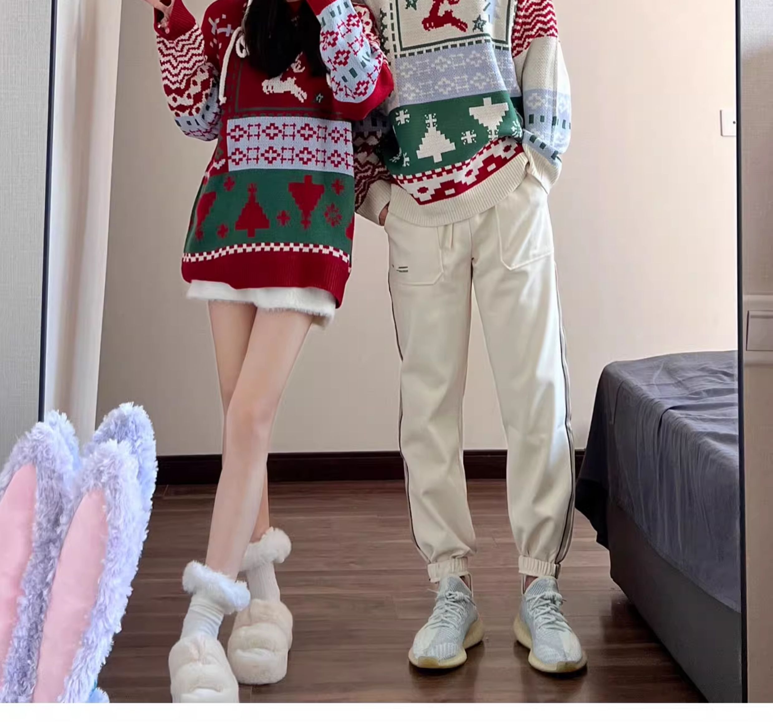 聖誕節戰袍情侶裝秋冬2025新款聖誕氛圍感穿搭毛衣紅色外穿針織衫
