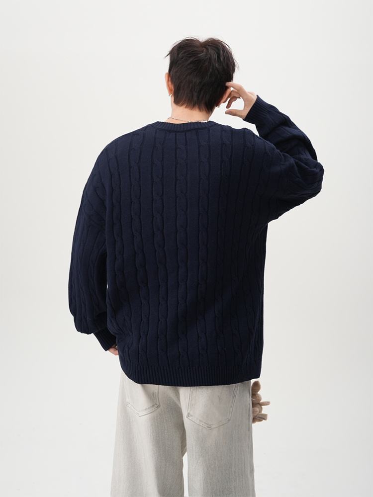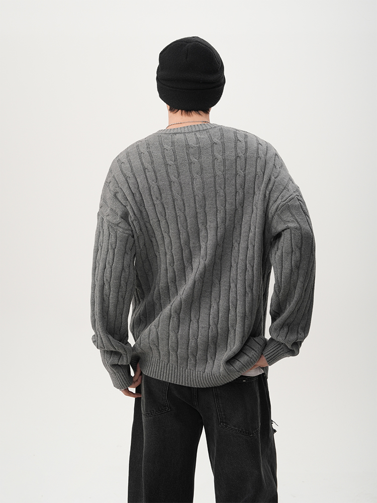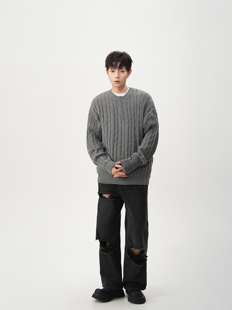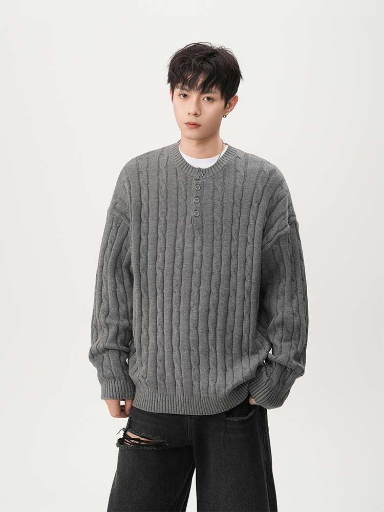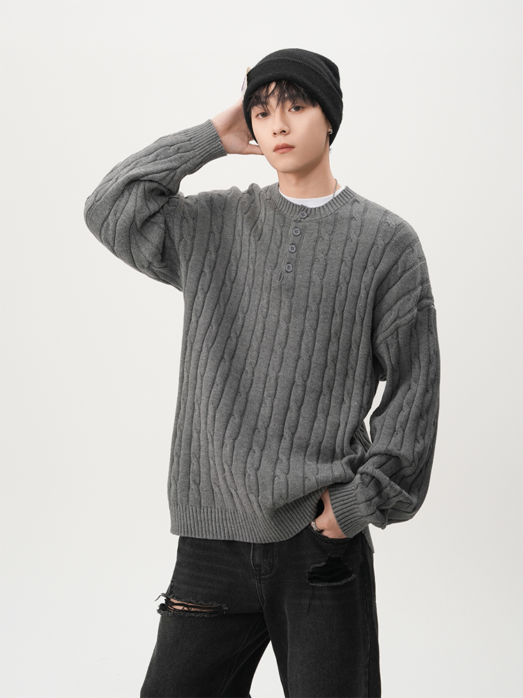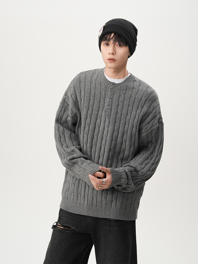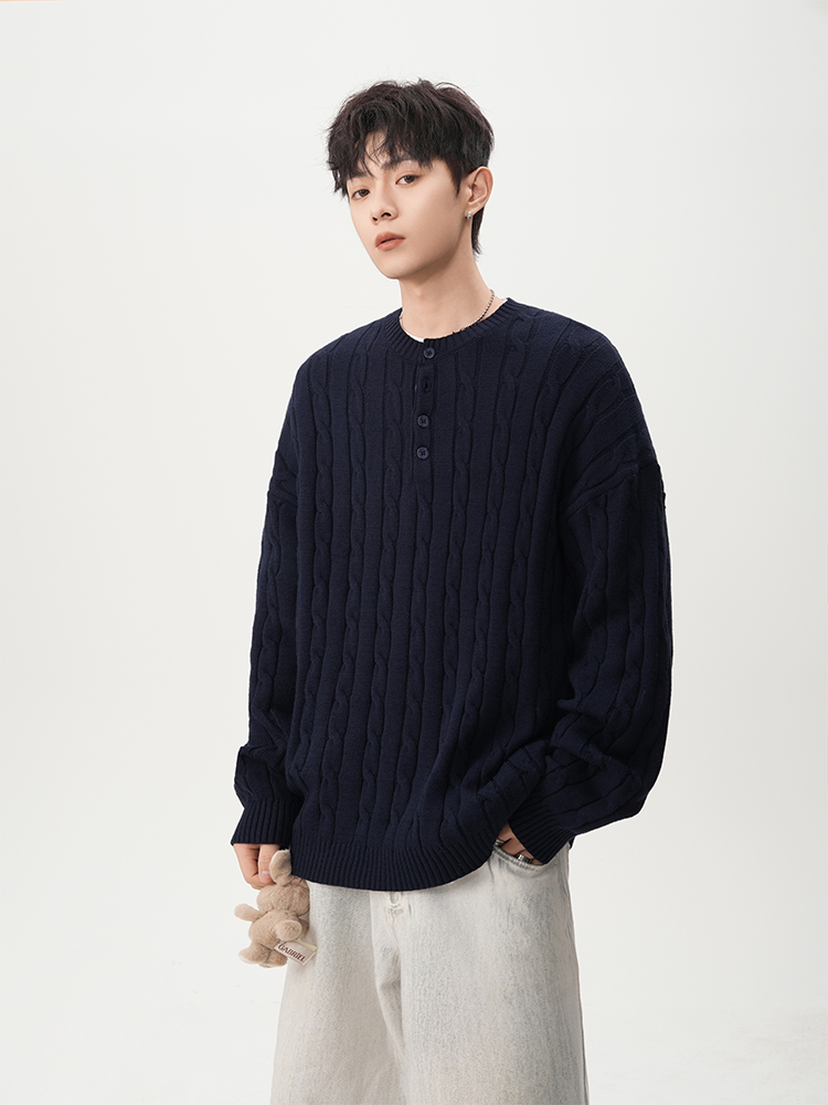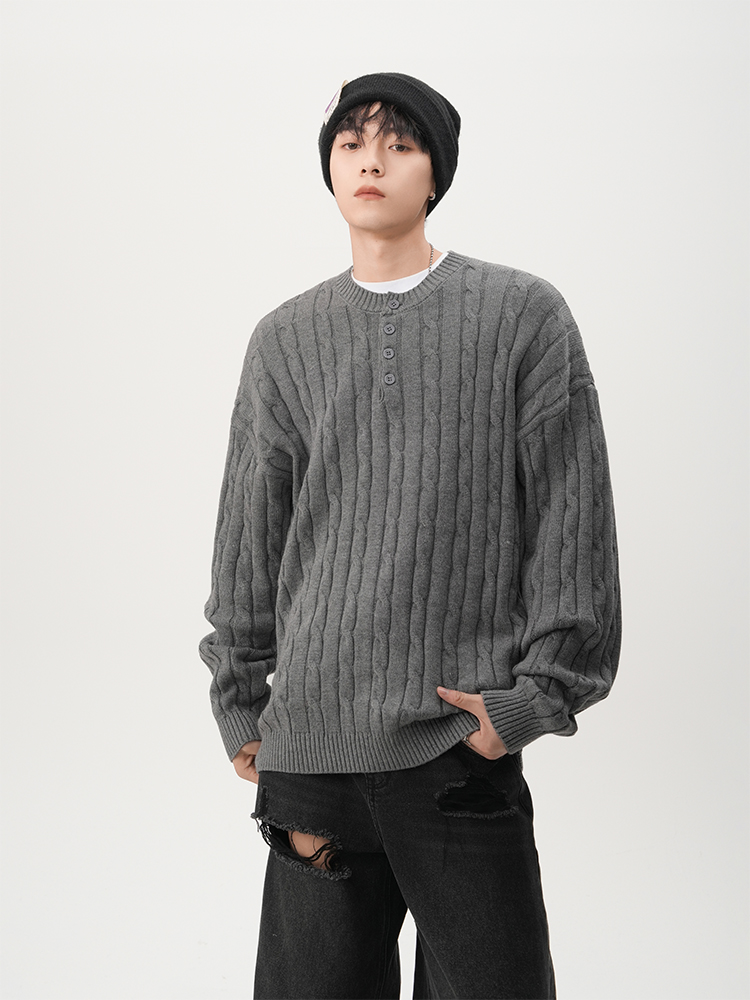 美式本命年紅色休閒毛衣男女冬季潮牌亨利領麻花針織衫慵懶風外套
