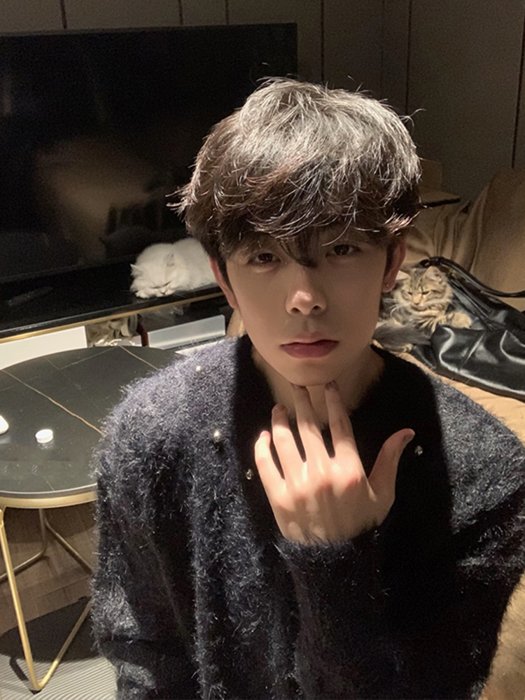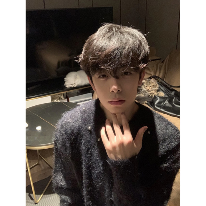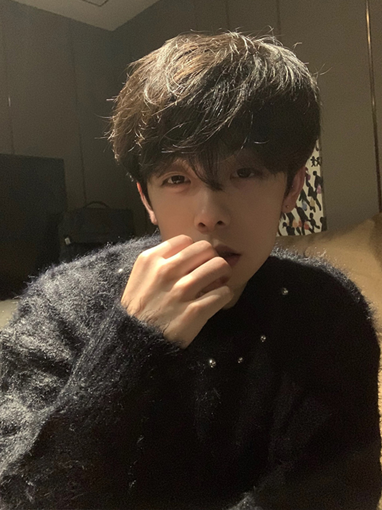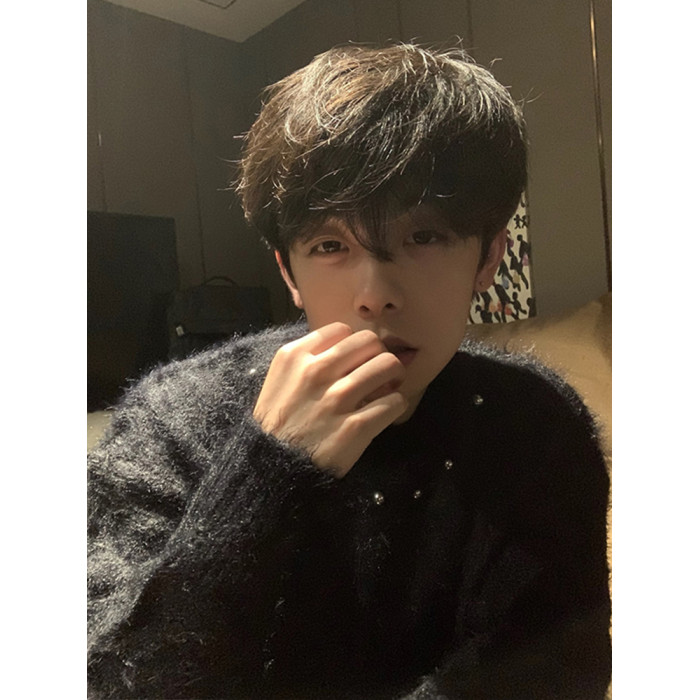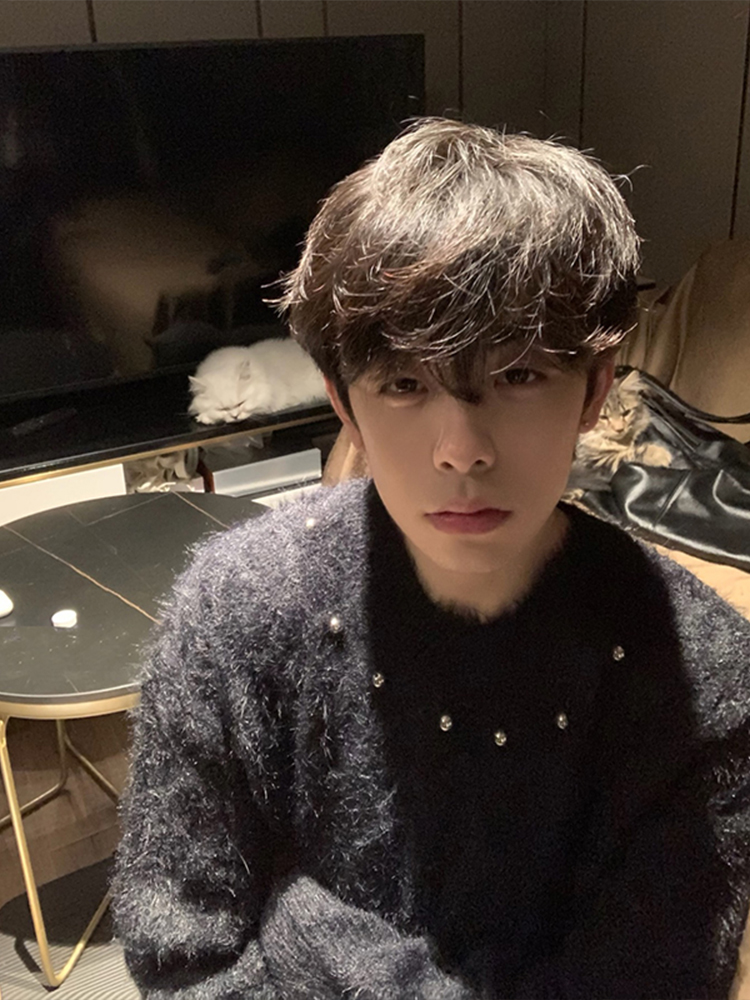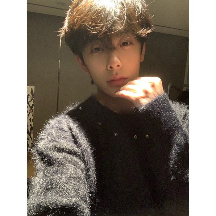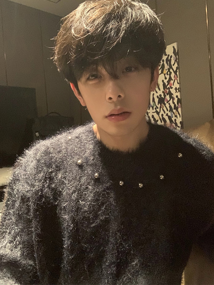 黑色水貂毛釘珠毛衣男春季美式潮牌馬海毛針織衫cleanfit慵懶外套