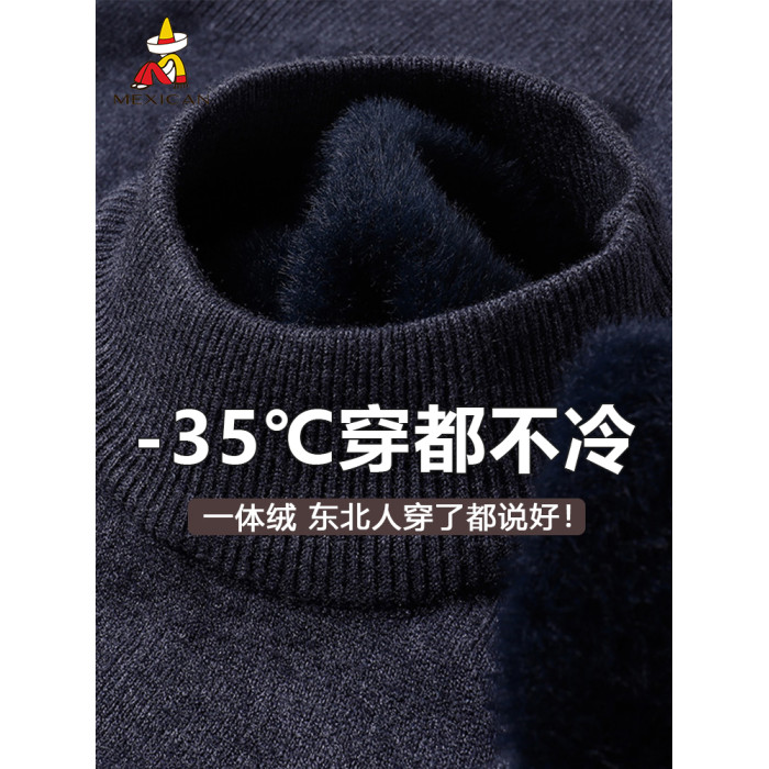 一體絨稻草人2025年冬季男士毛衣加絨加厚半高領針織打底衫上衣男