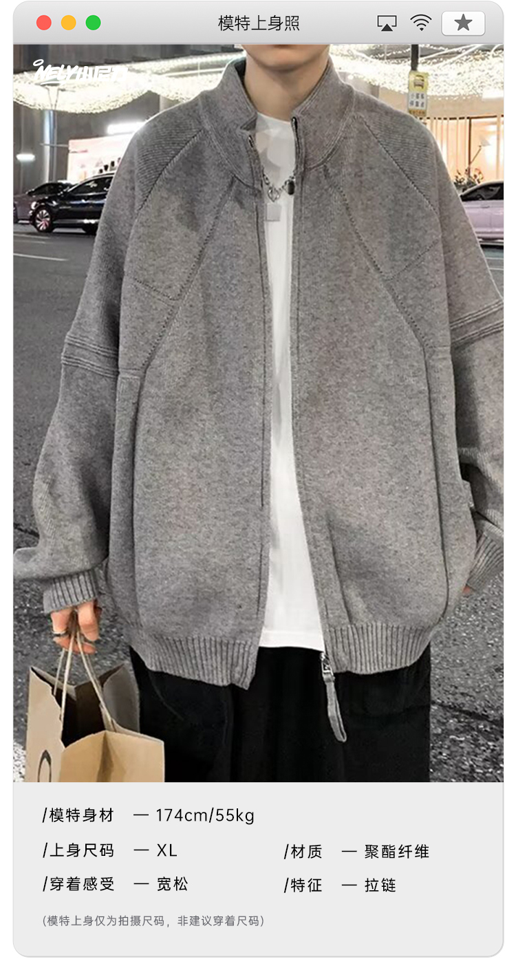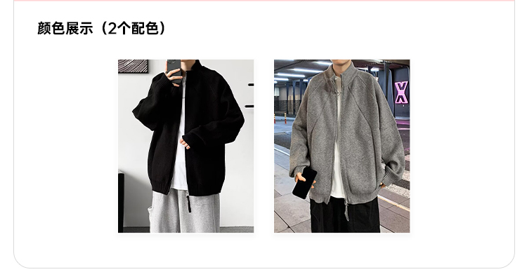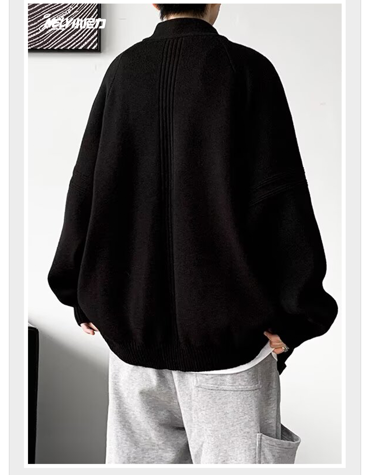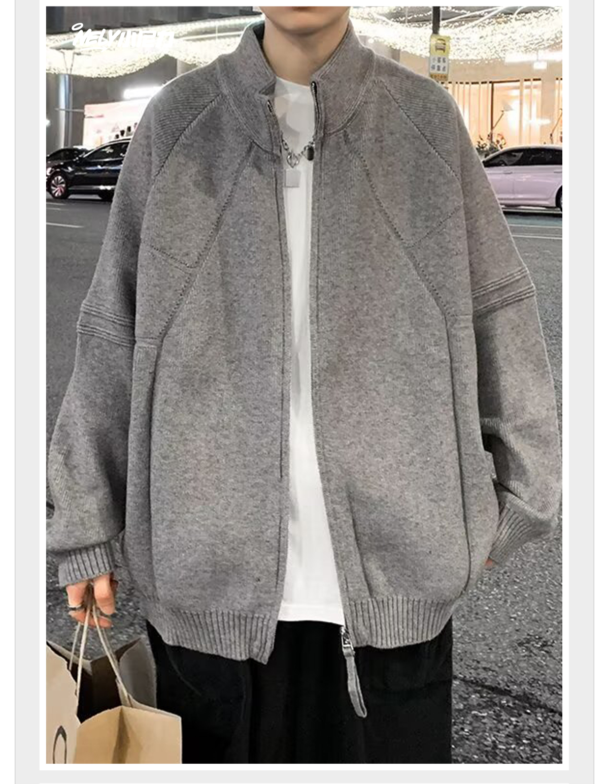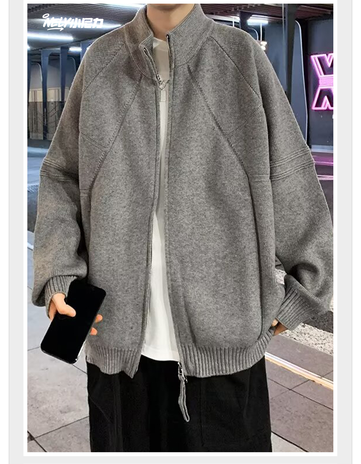 NELY小尼力秋冬慵懶風簡約百搭拉鍊立領毛衣男女休閒情侶針織開衫