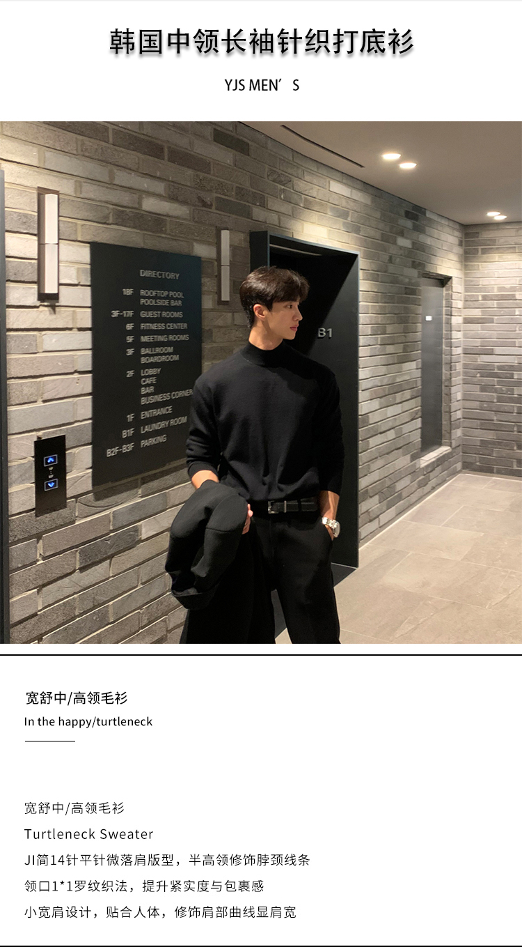 秋冬高級感半高領毛衣男韓版寬松休閒純色中領針織打底衫長袖內搭