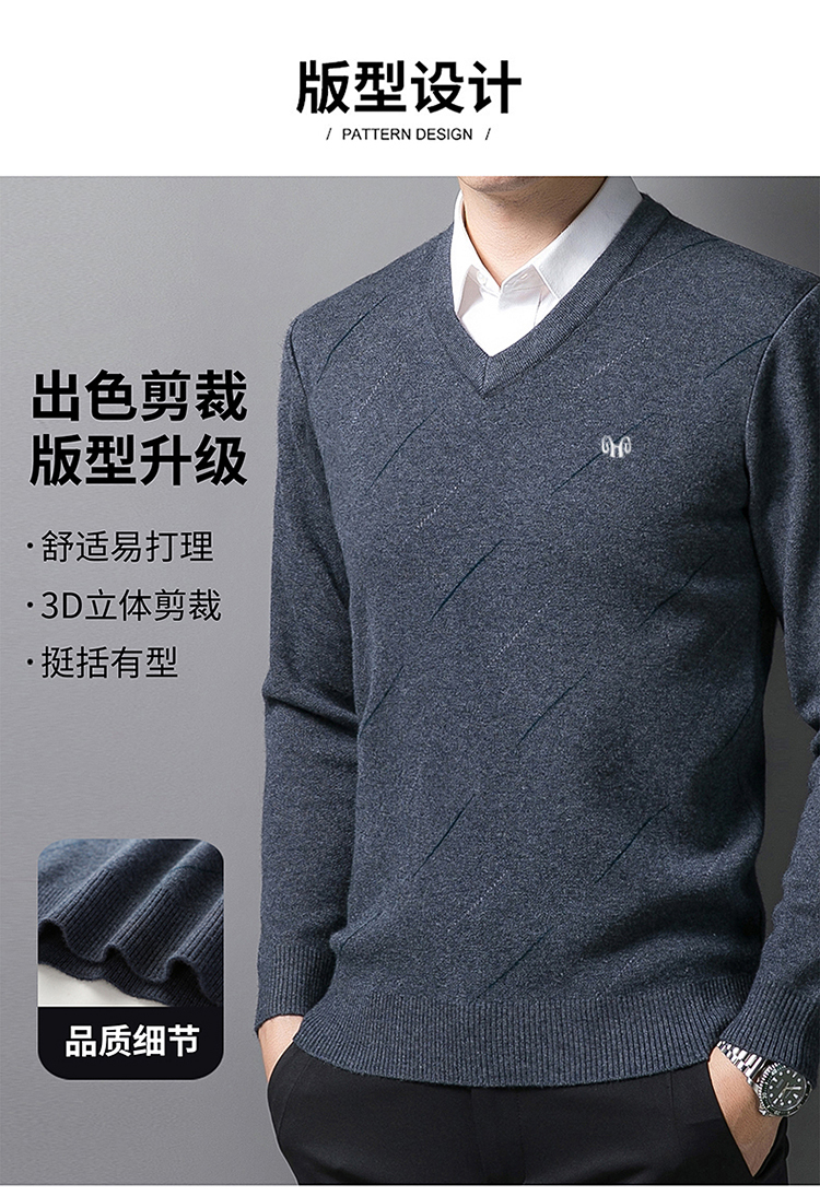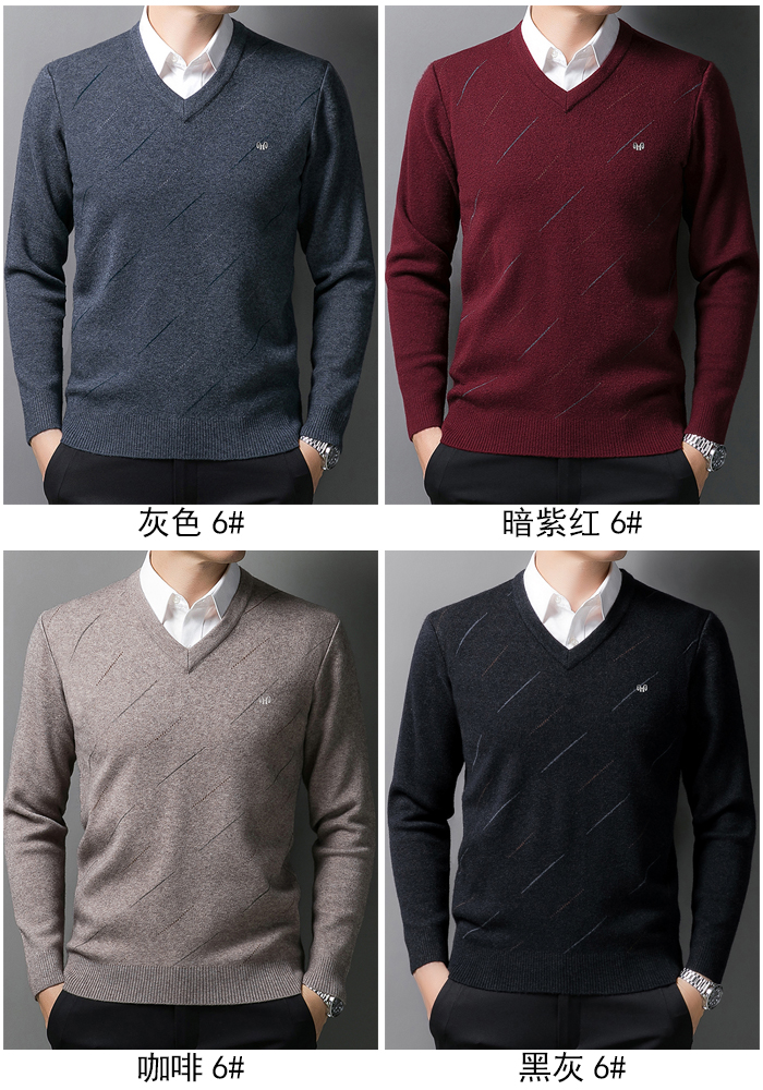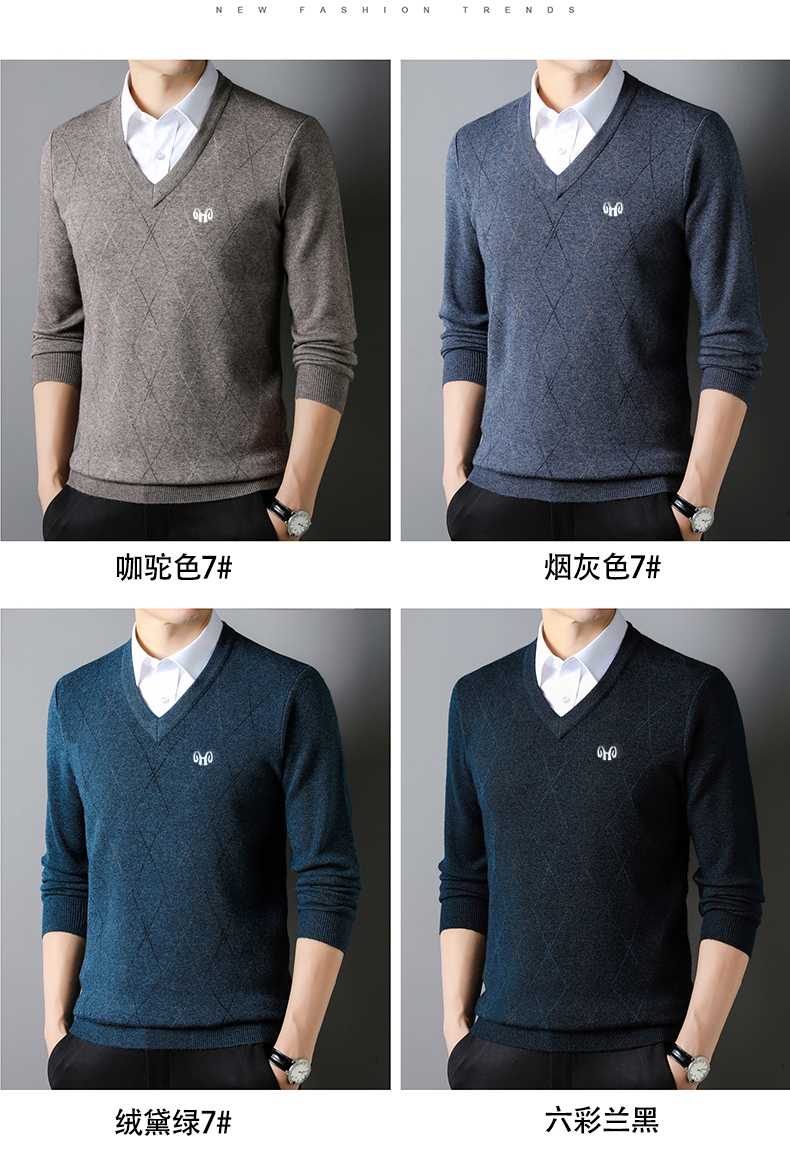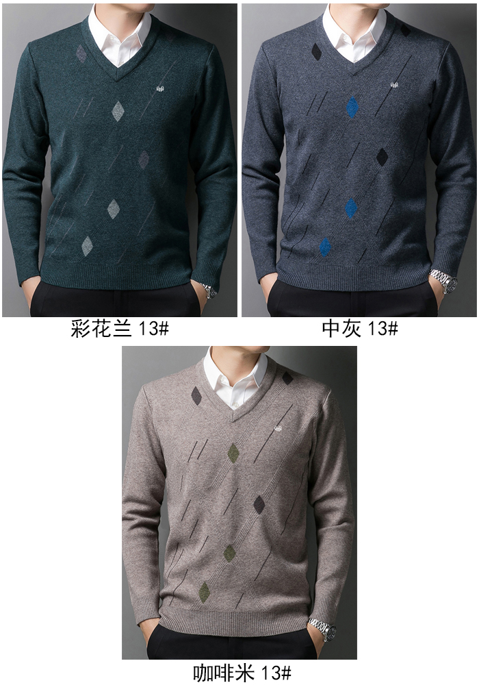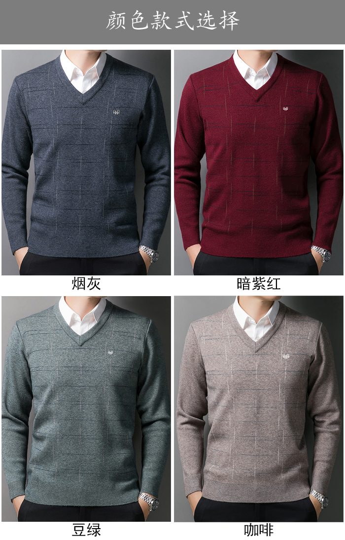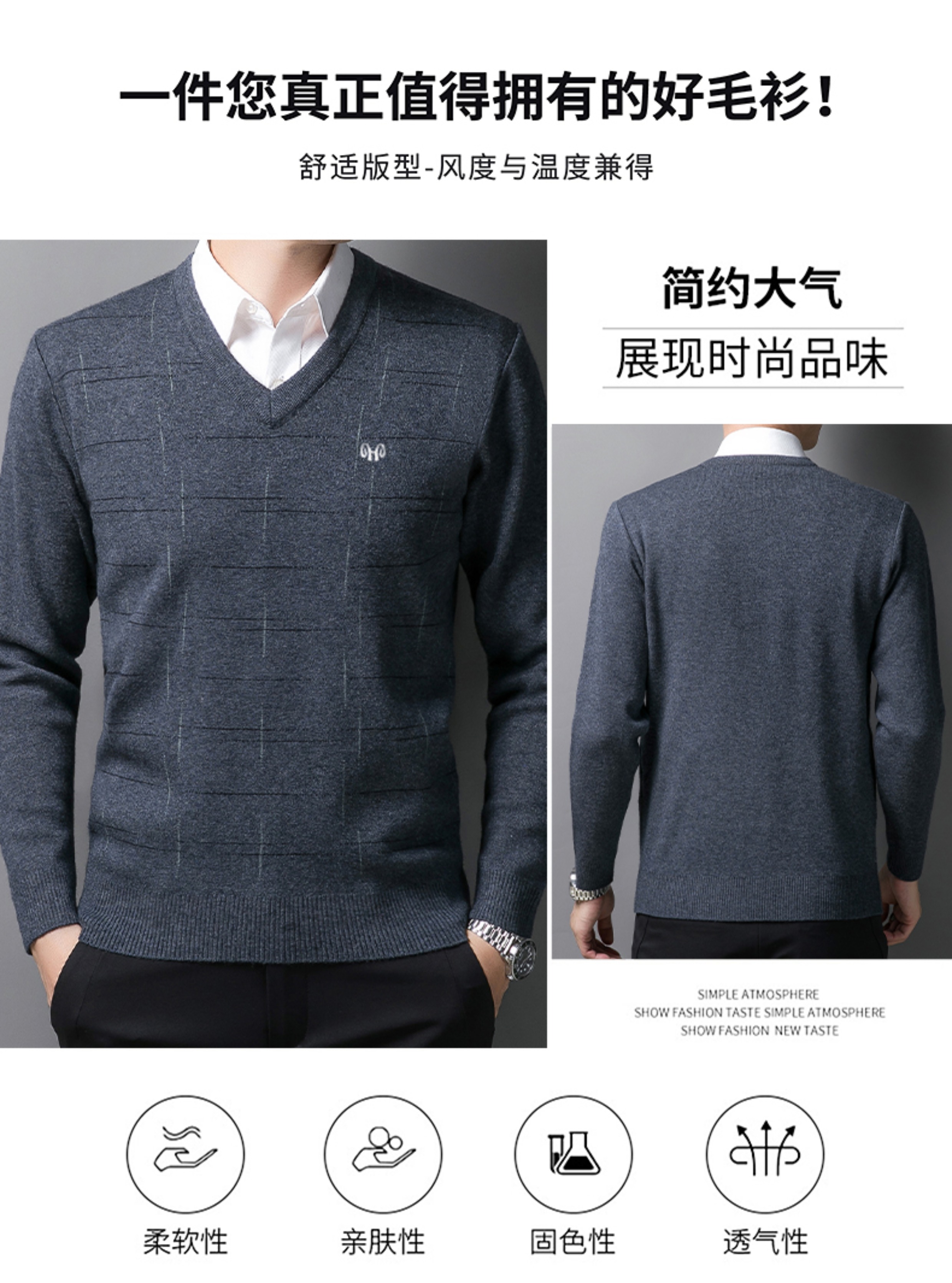秋冬新款男士V領羊毛衫加厚抗起球雞心領毛線衣爸休閒保暖打底衫