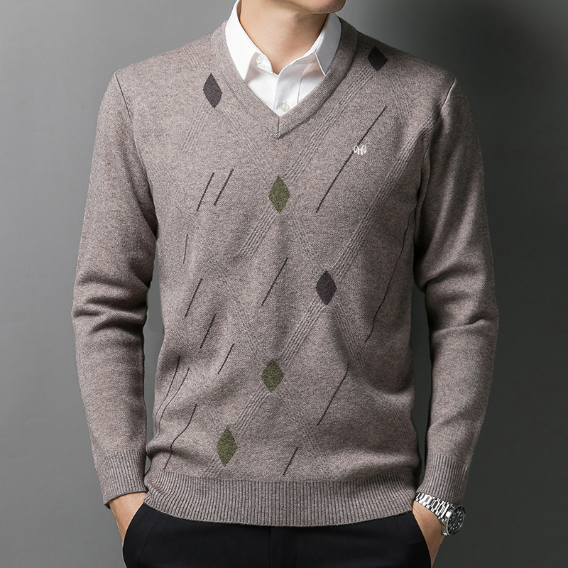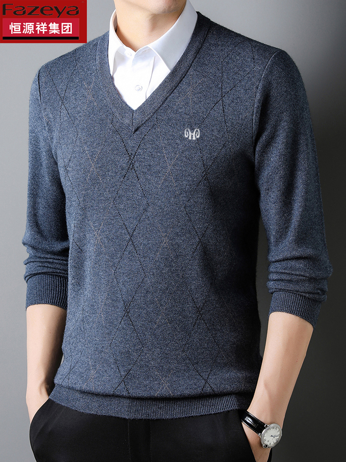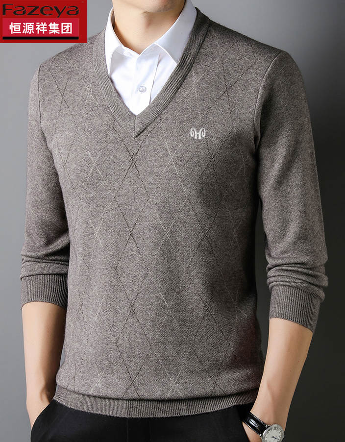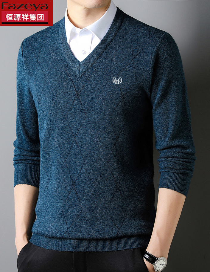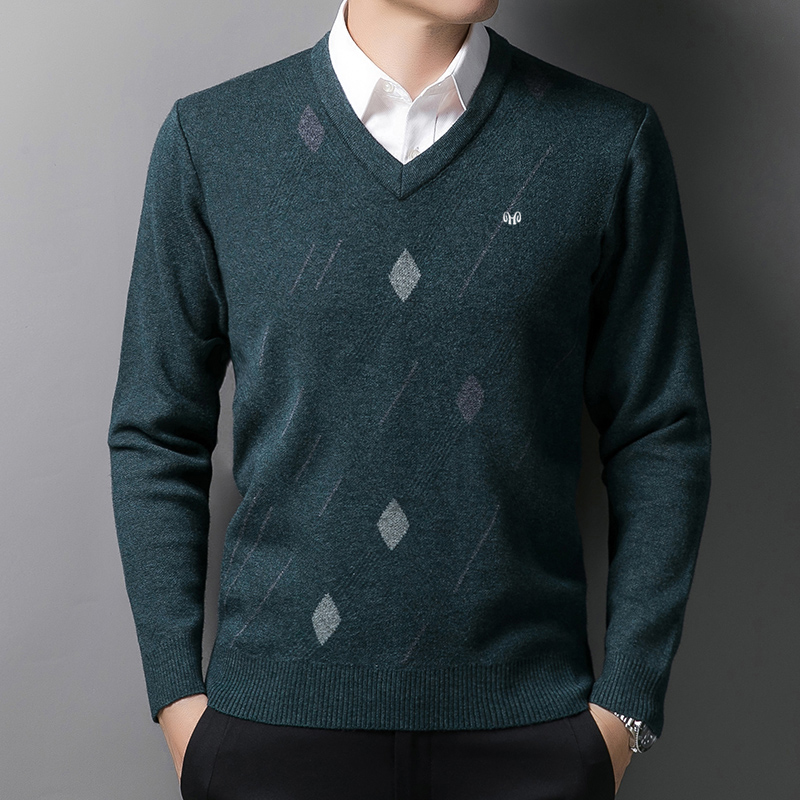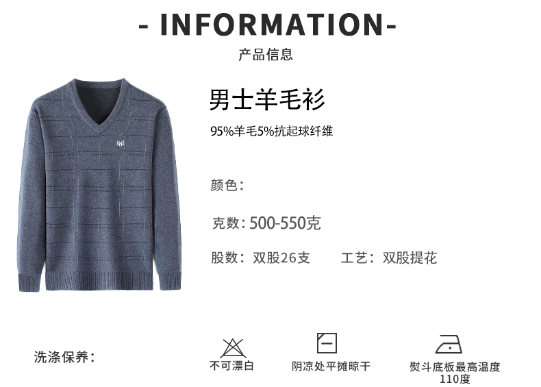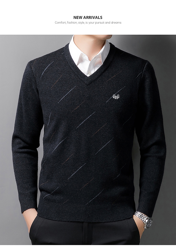 秋冬新款男士V領羊毛衫加厚抗起球雞心領毛線衣爸休閒保暖打底衫