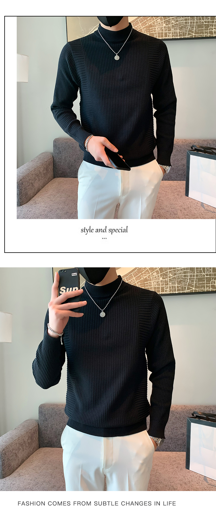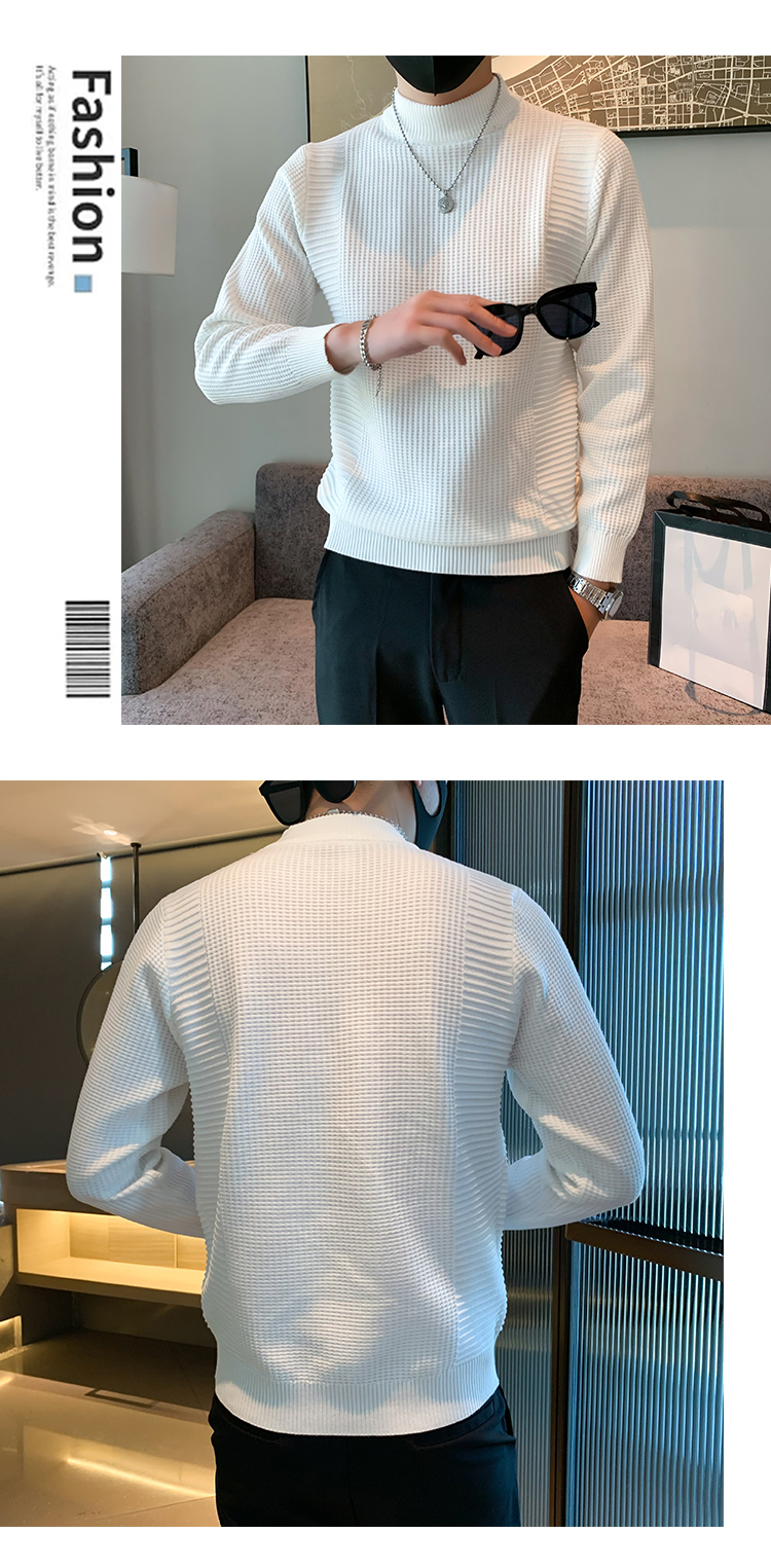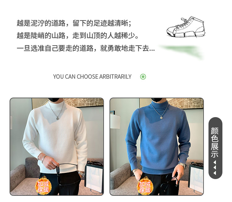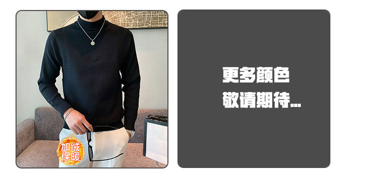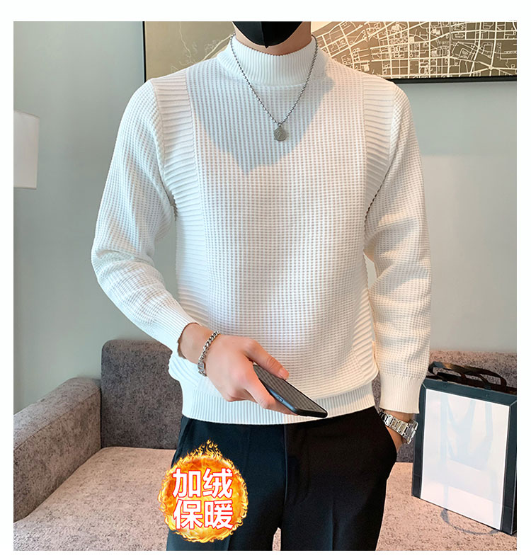 半高領加絨毛衣男士秋冬韓版修身內搭針織衫高級感百搭加厚毛線衣