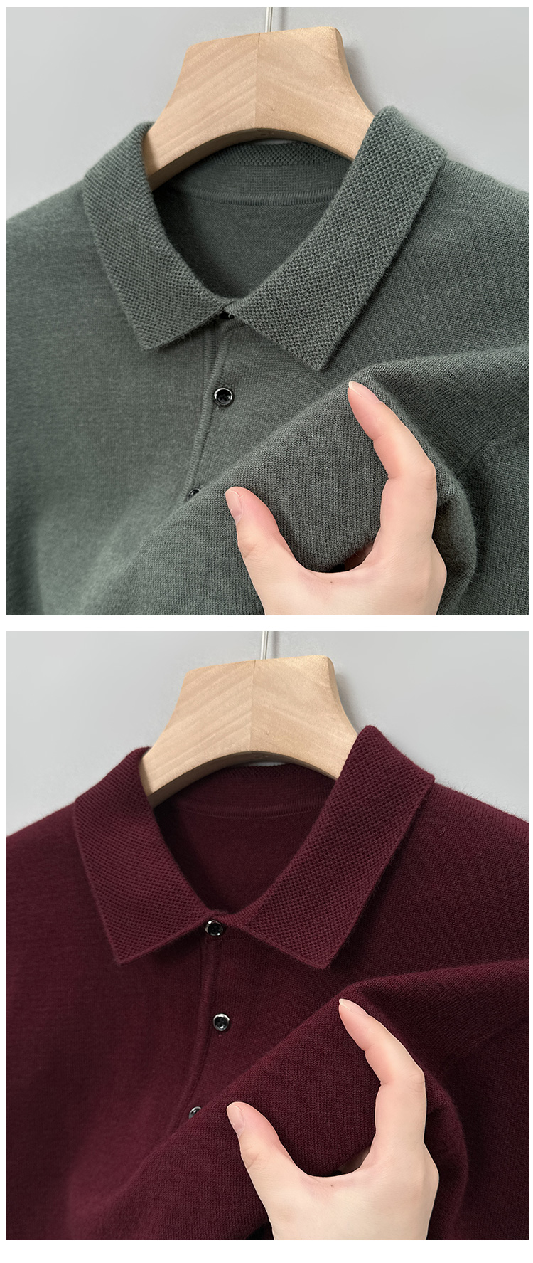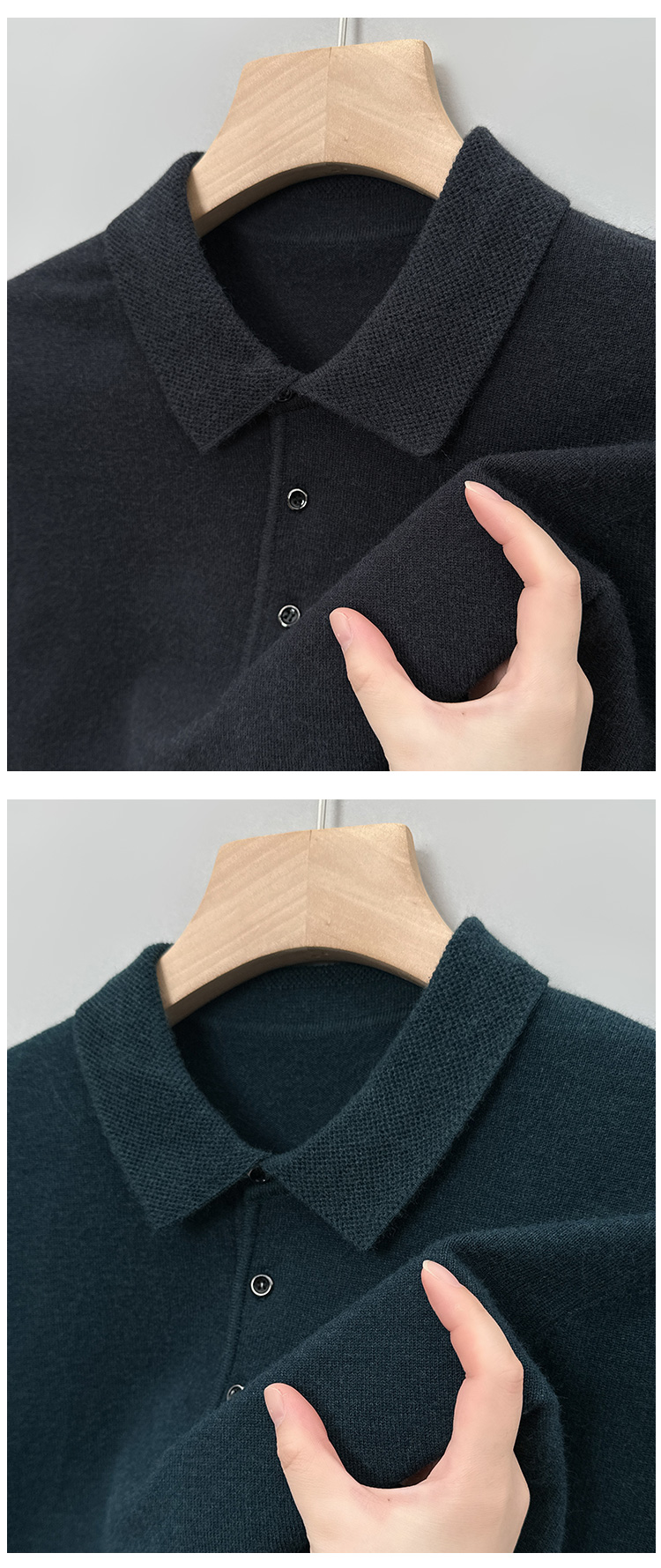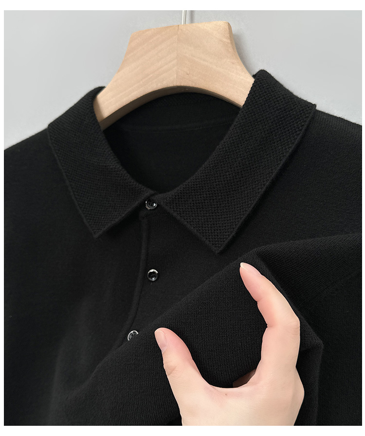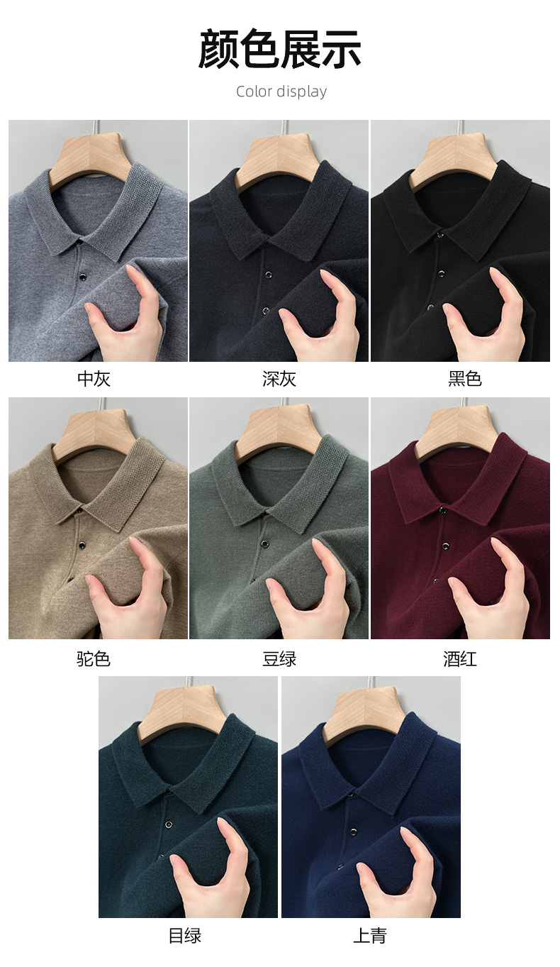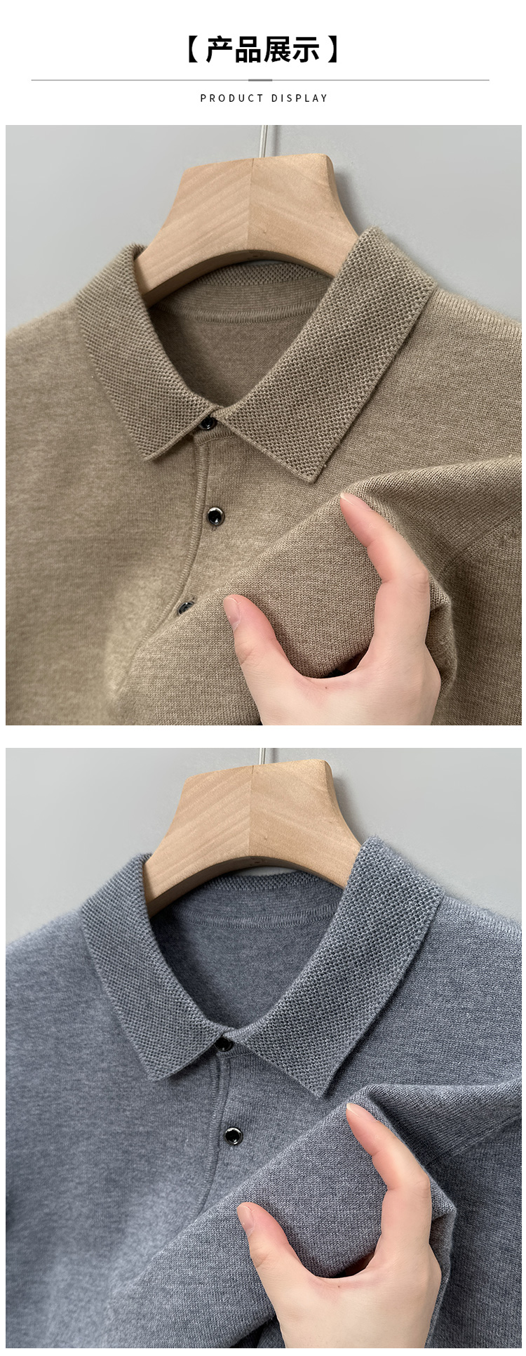 羅矇純色polo針織衫男士秋冬季商務休閒翻領套頭上衣毛衣打底衫男