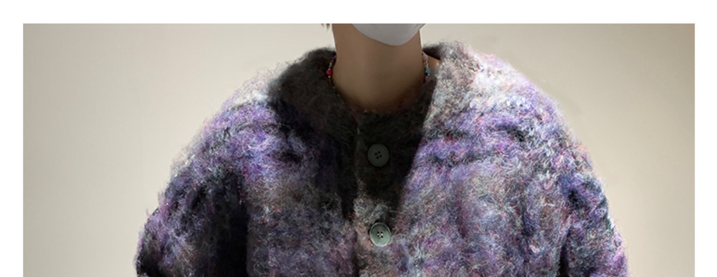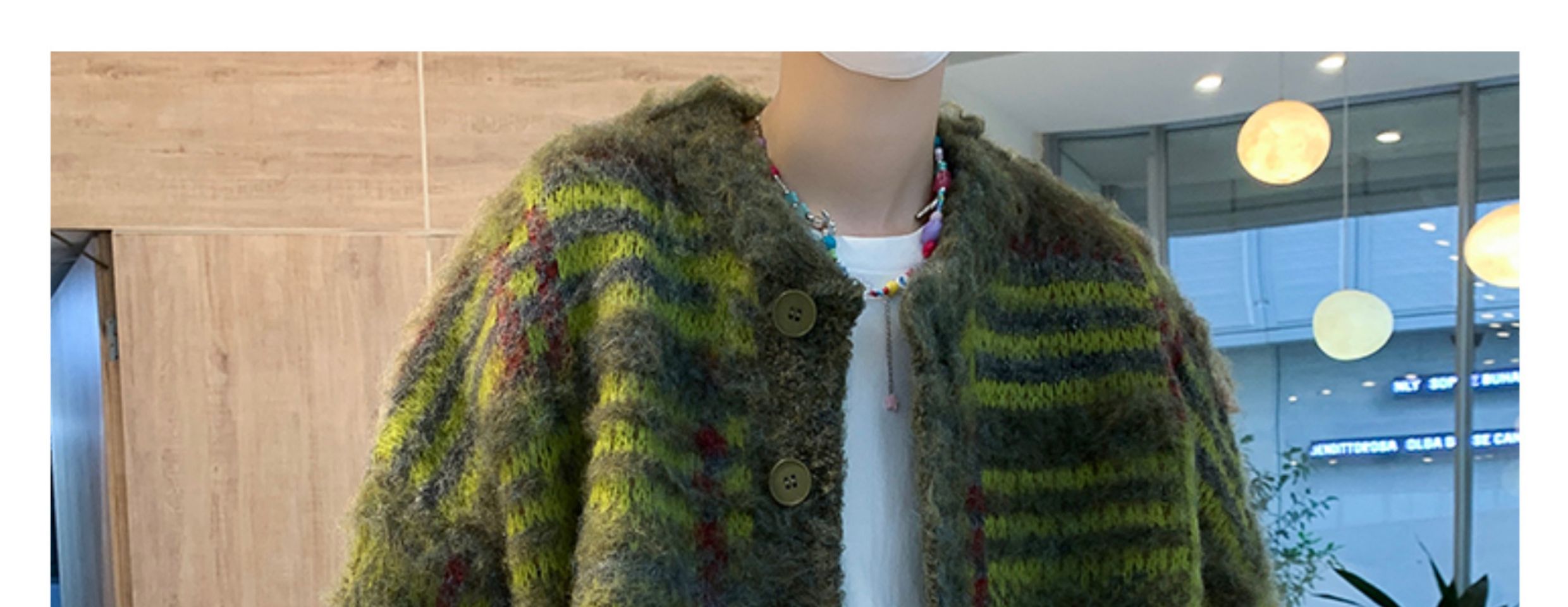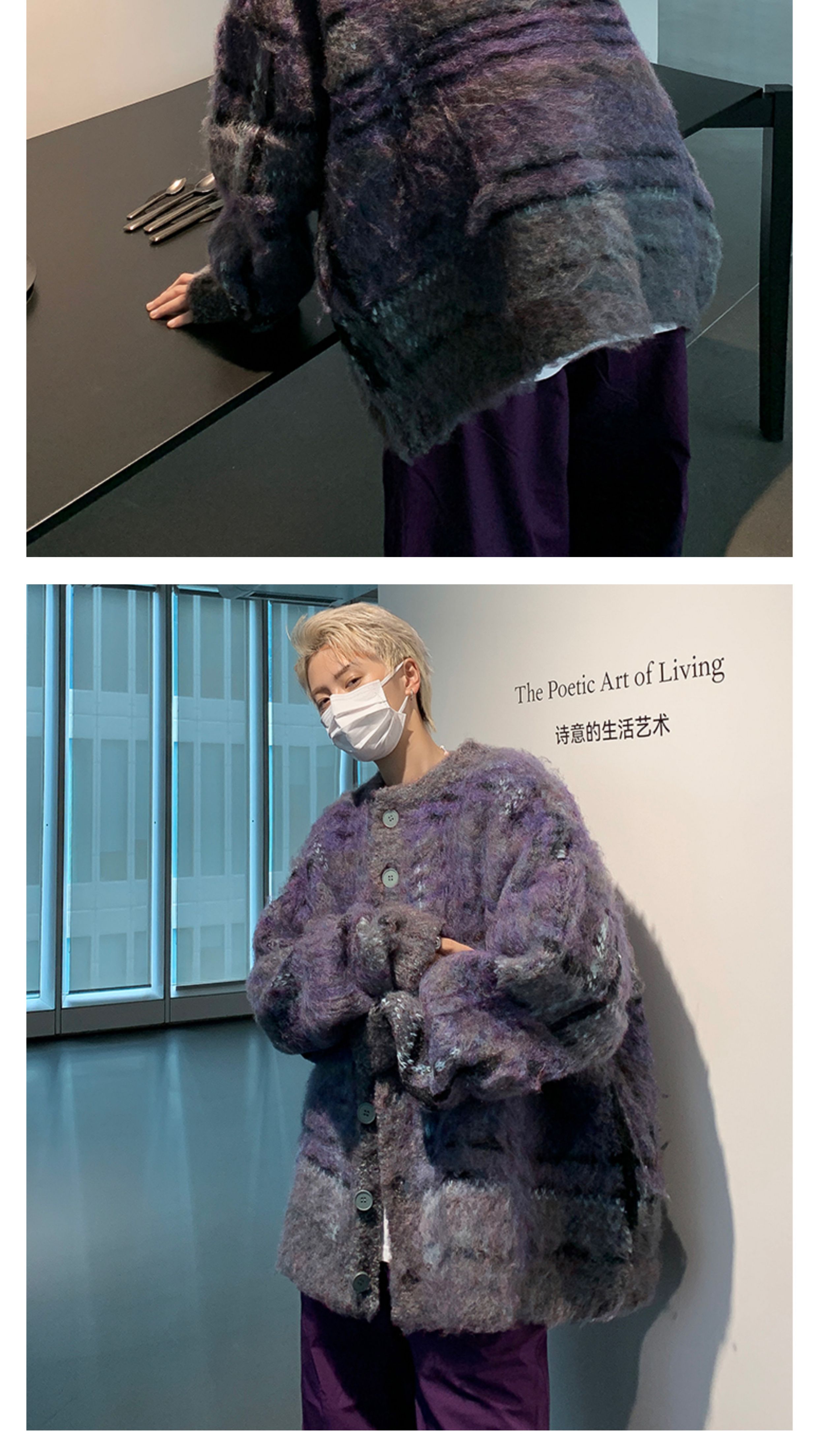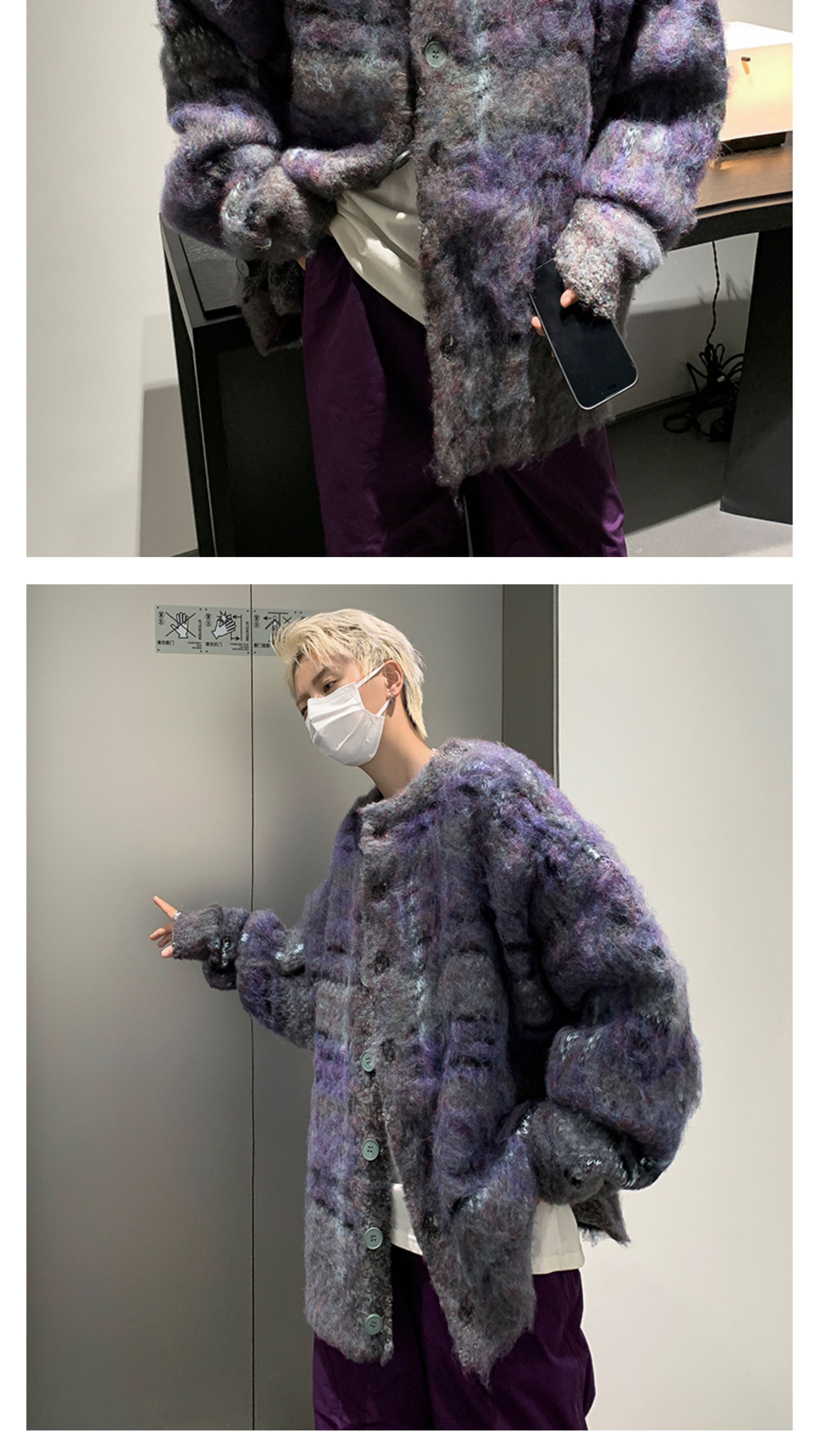 美式復古彩色編織馬海毛開衫毛衣男女潮牌情侶外套撞色拼接針織衫