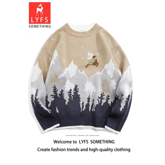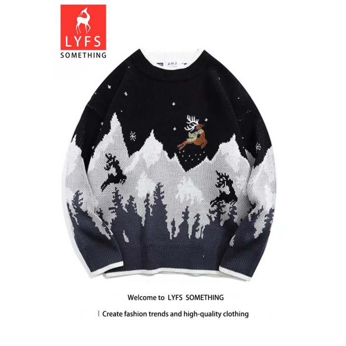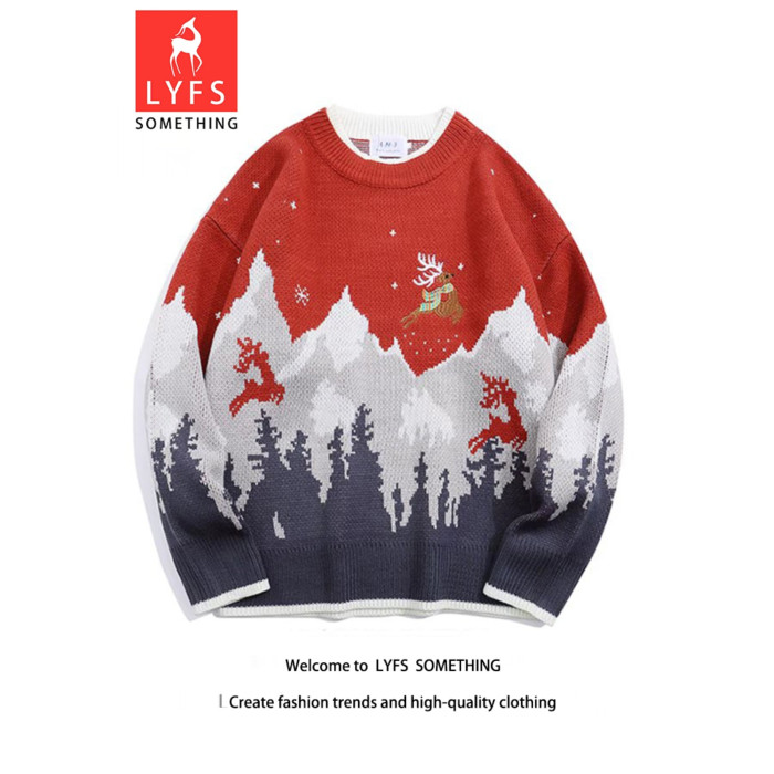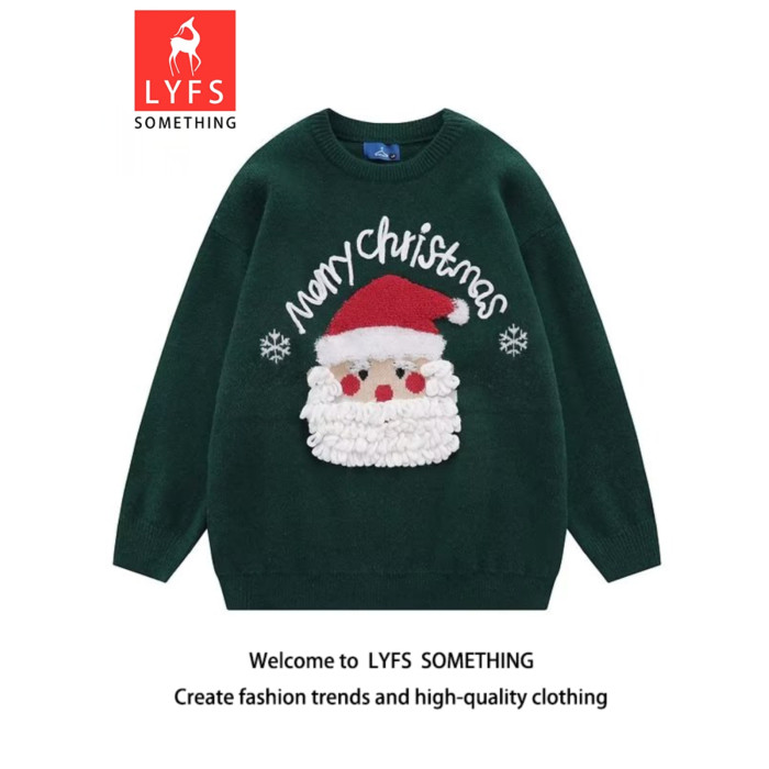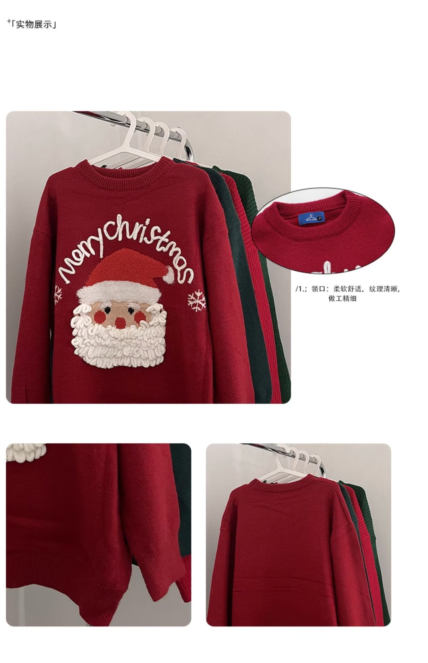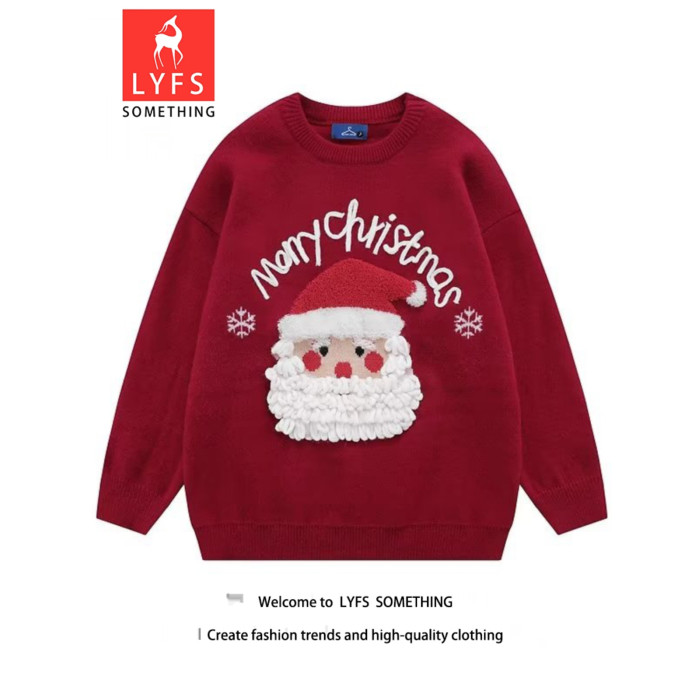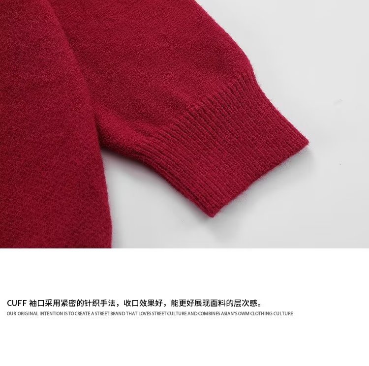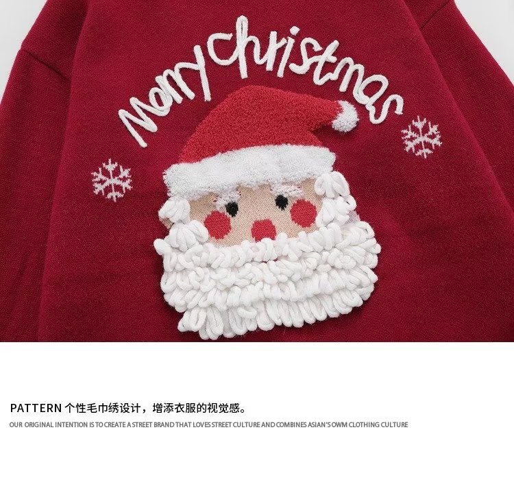 2023新年復古聖誕老人紅色毛衣秋冬寬松慵懶風圓領情侶針織打底衫