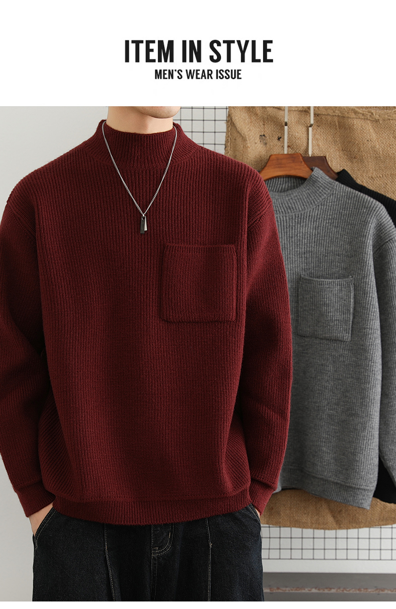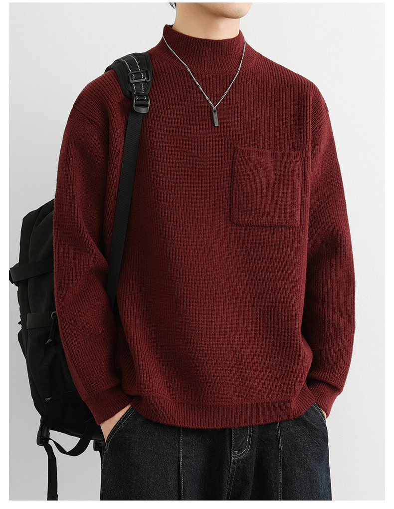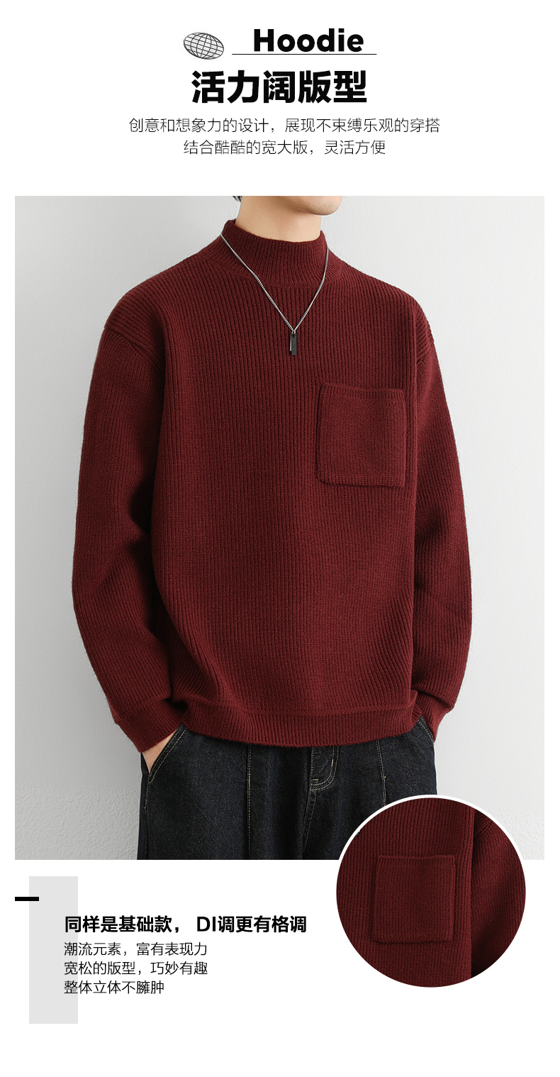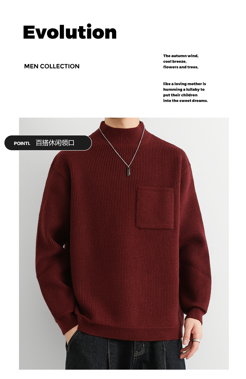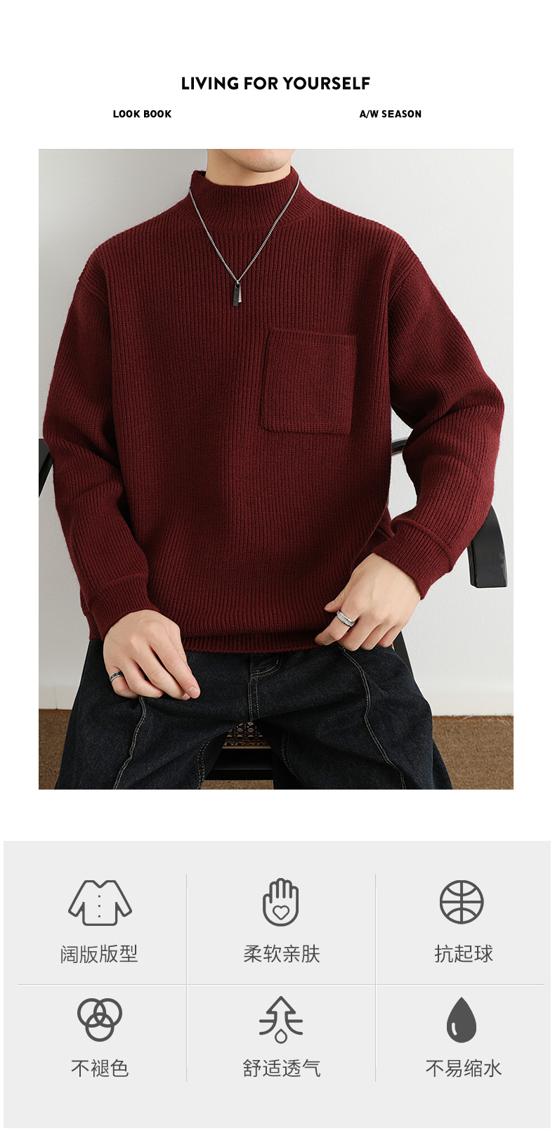 本命年紅色毛衣男秋冬季半高領針織衫男中領內搭高級感毛線上衣服