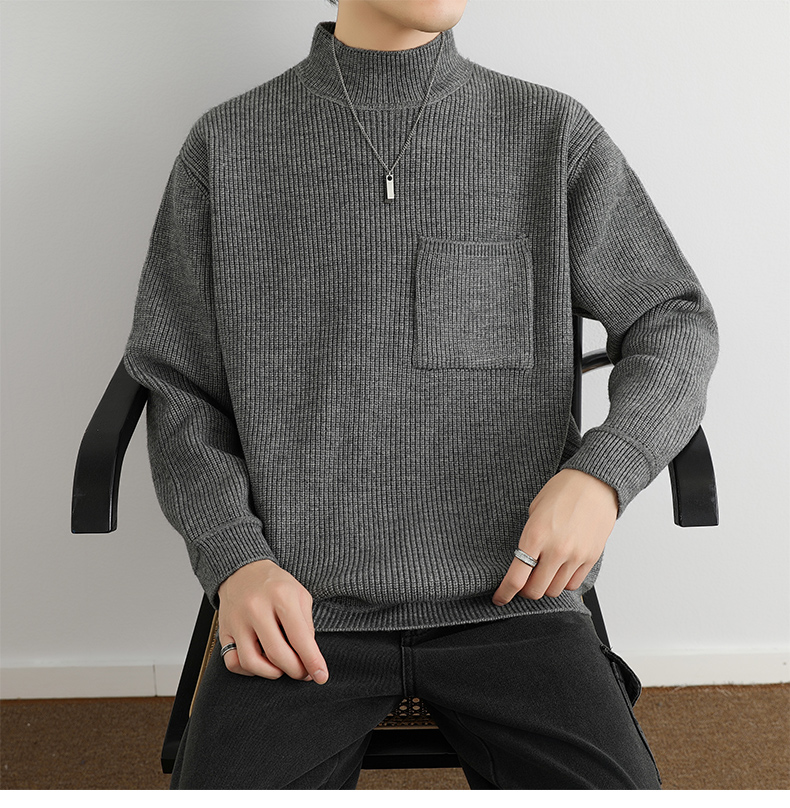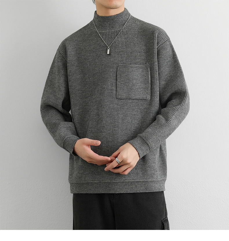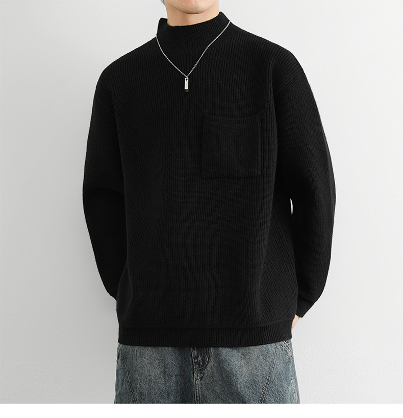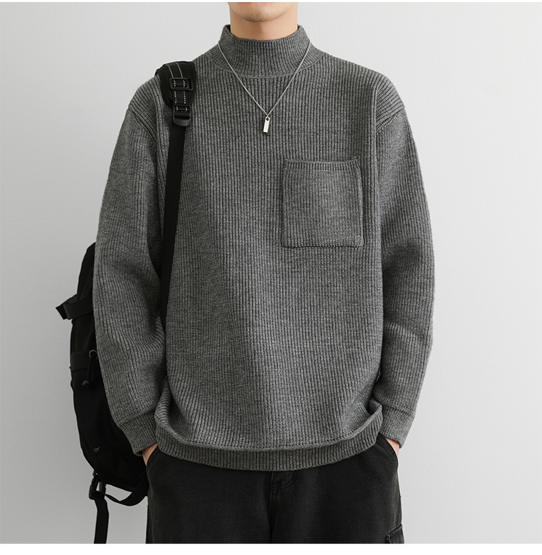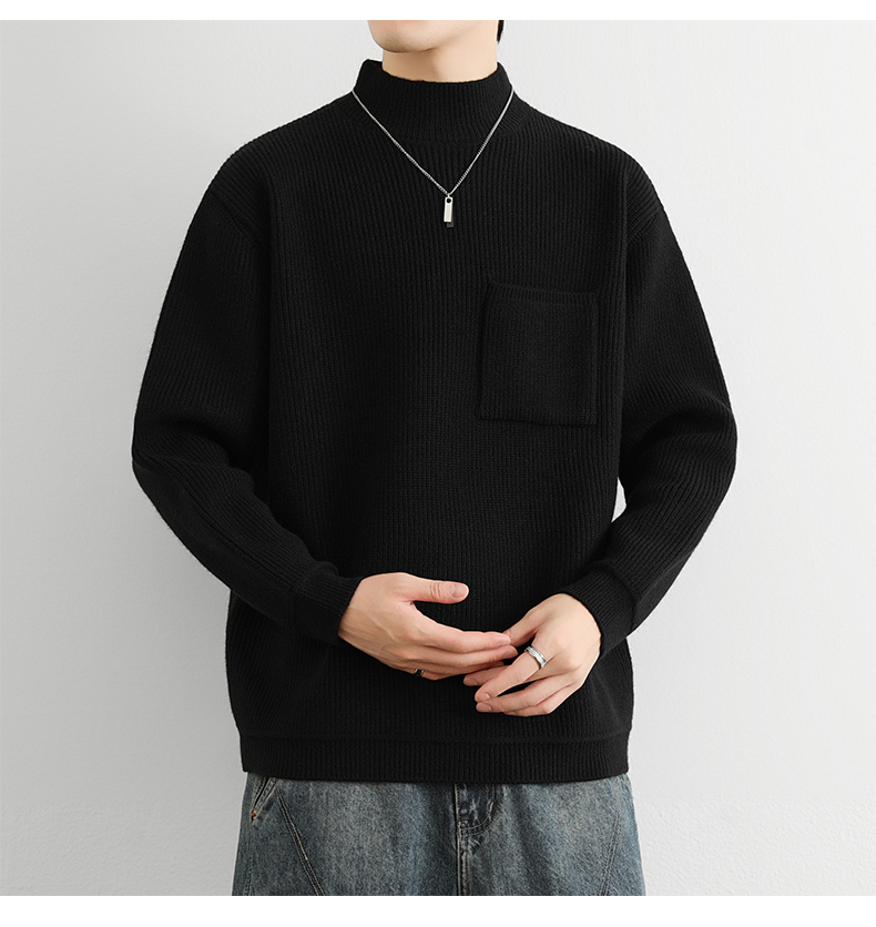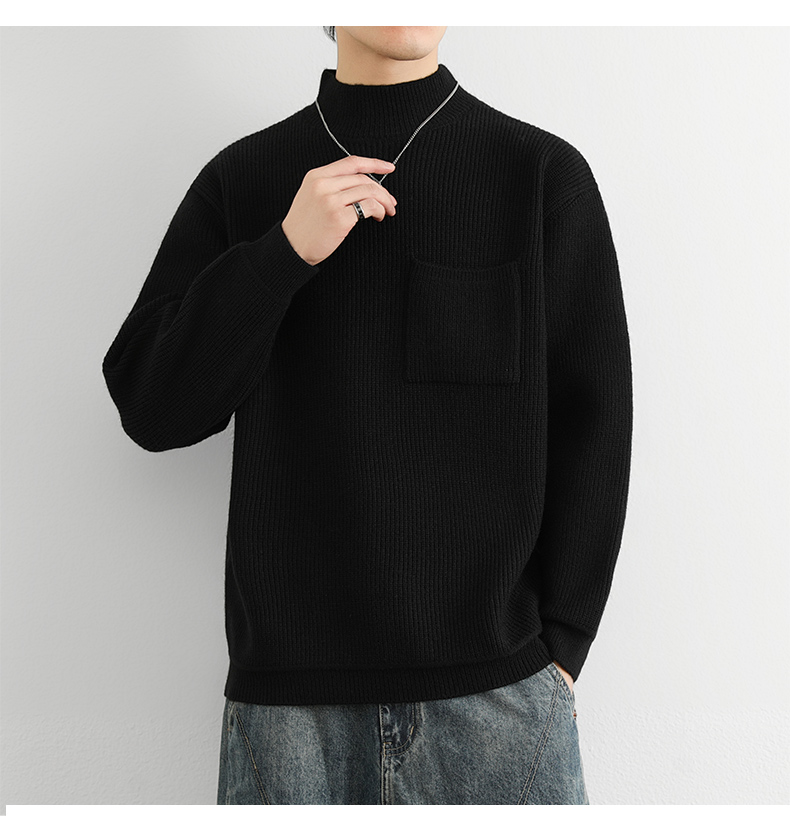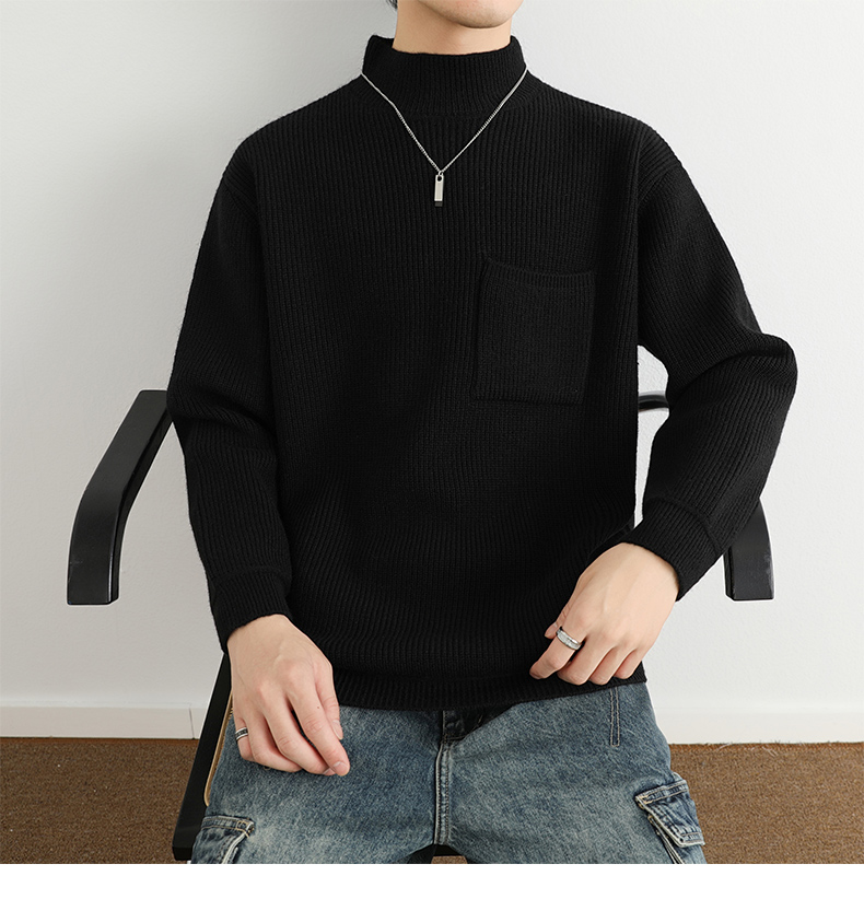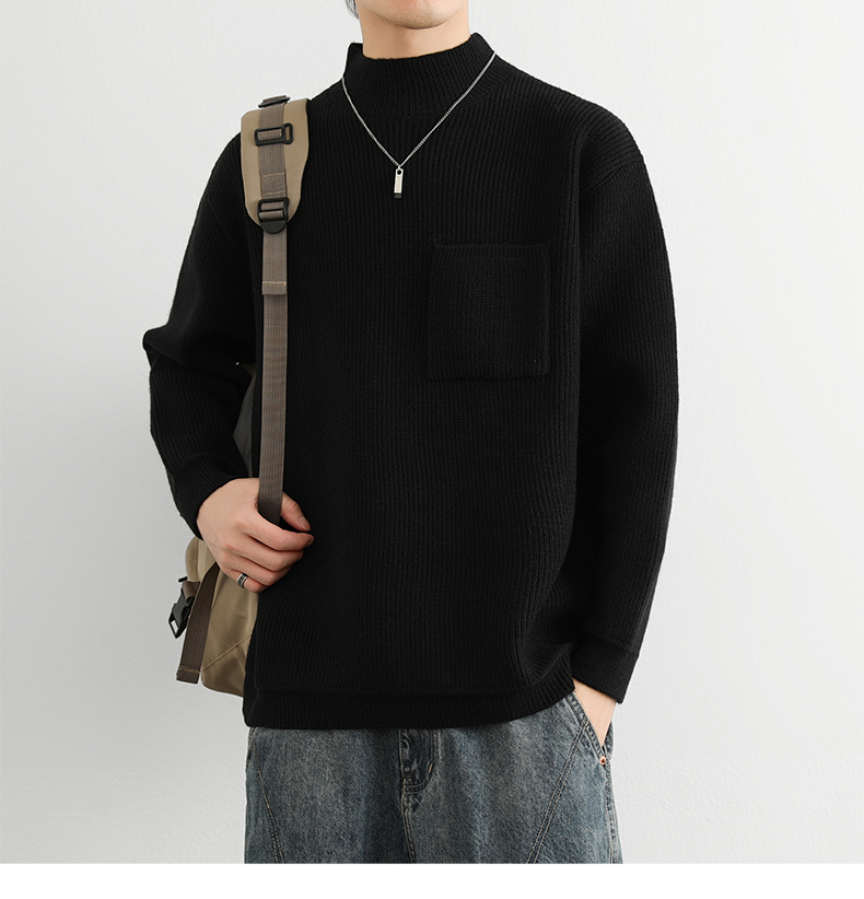 本命年紅色毛衣男秋冬季半高領針織衫男中領內搭高級感毛線上衣服