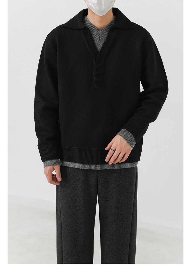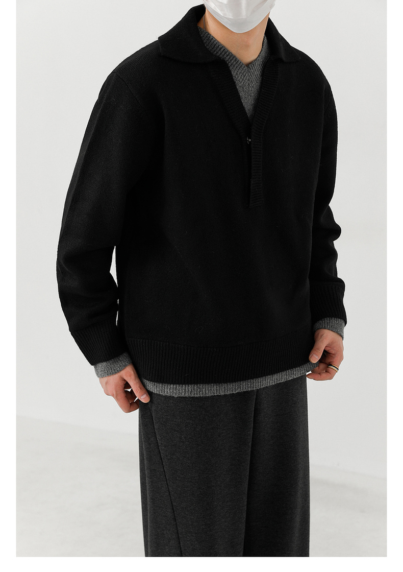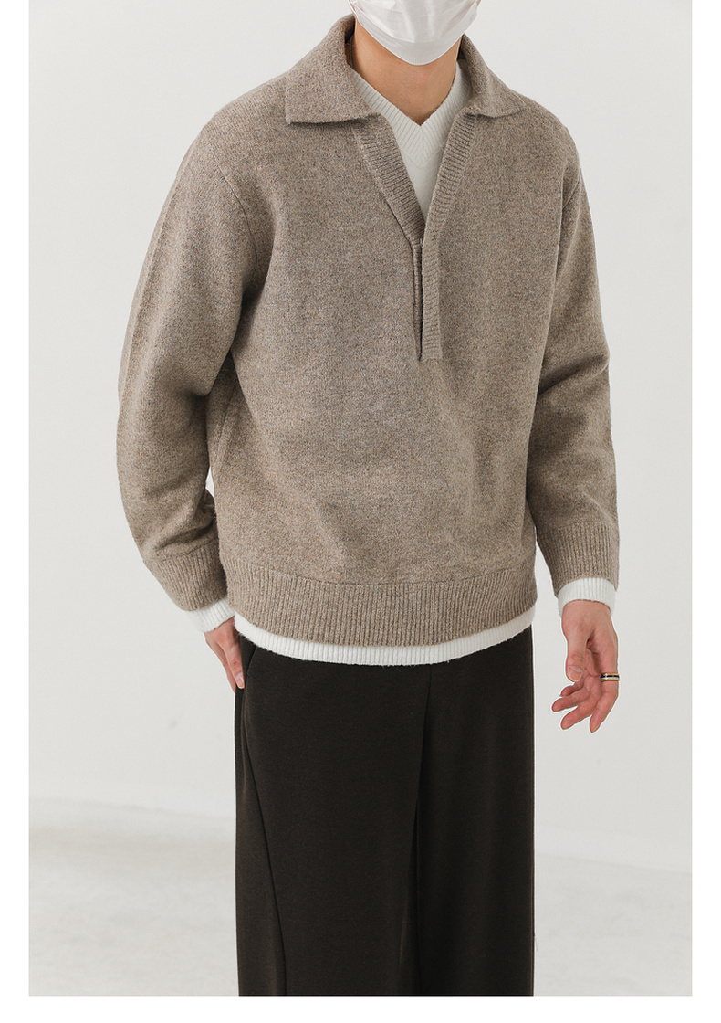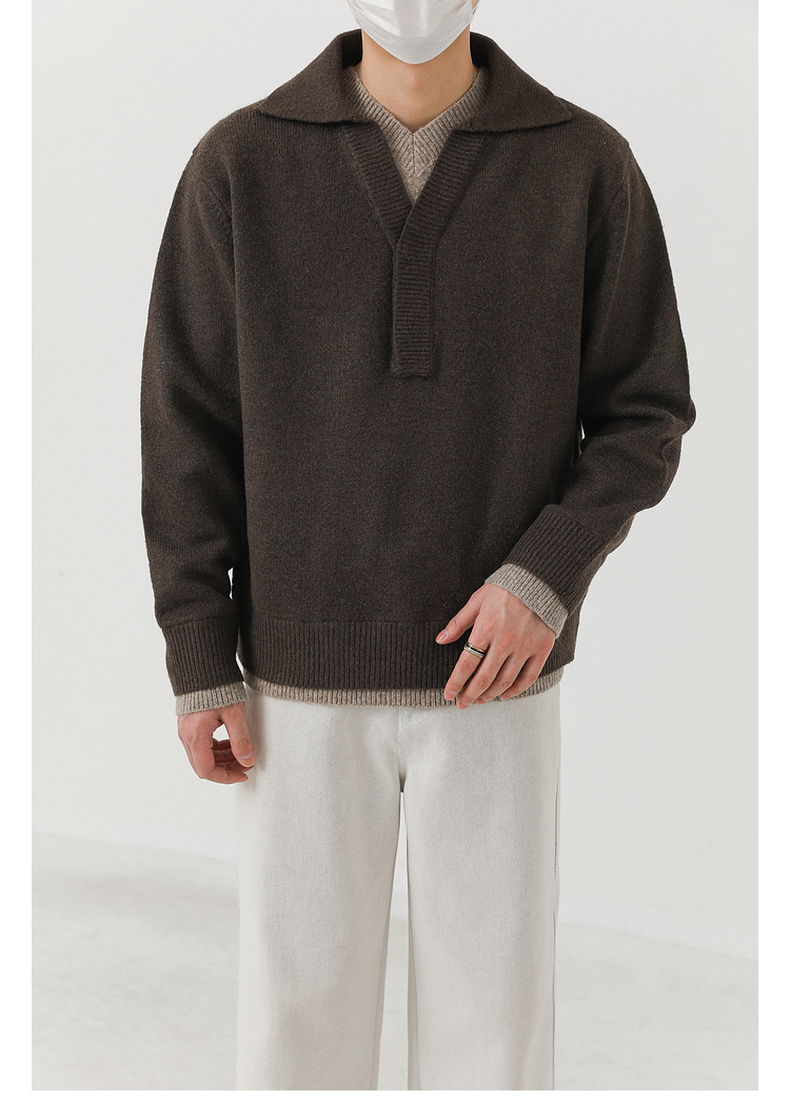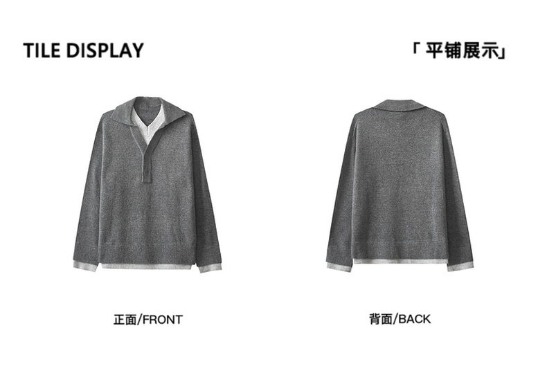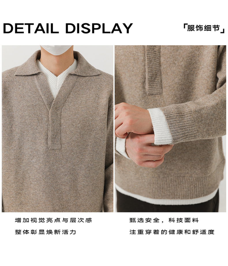 ZPZ設計感拼接撞色假兩件POLO翻領針織衫男秋冬季寬松V領套頭毛衣