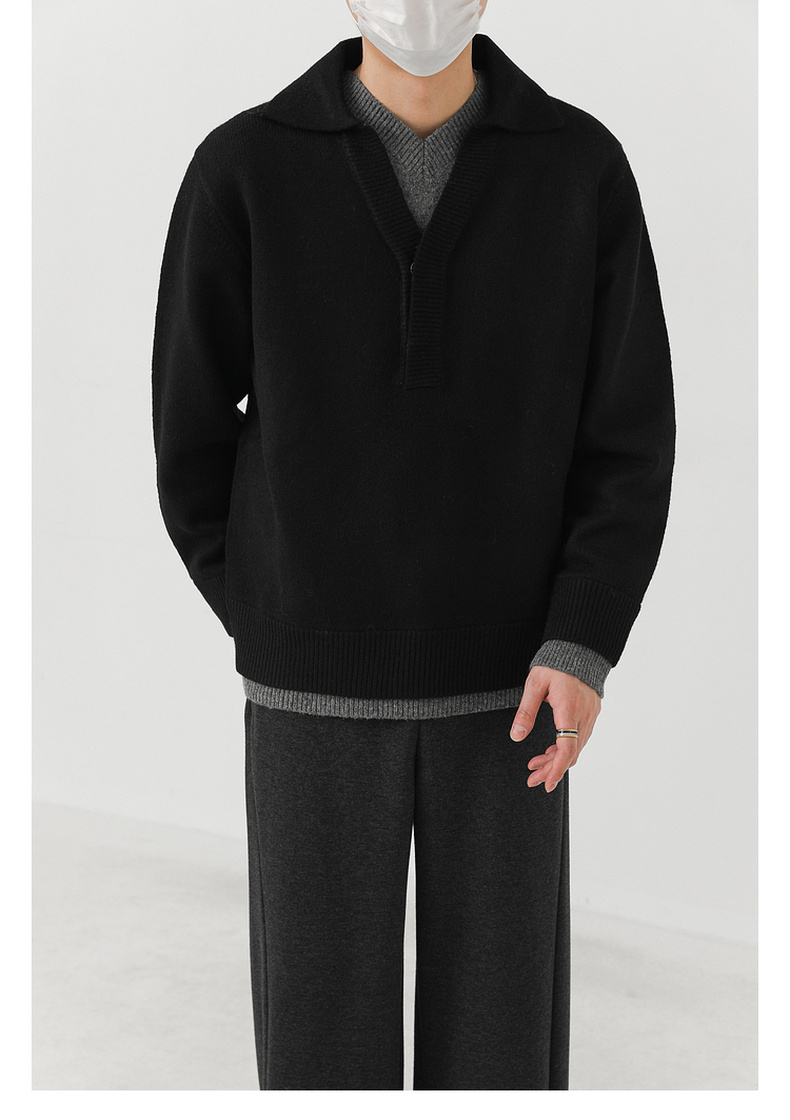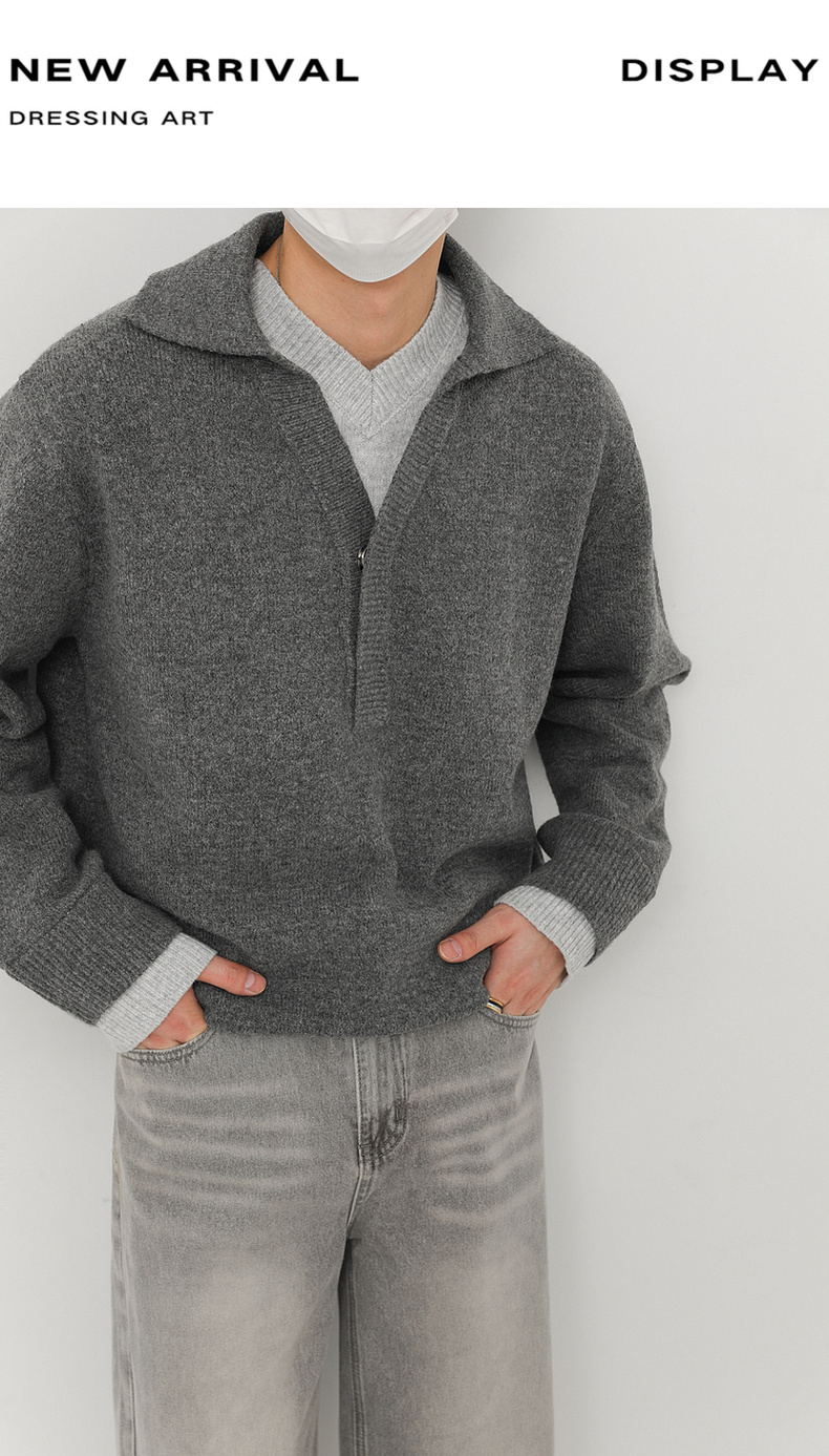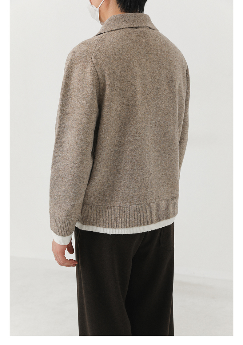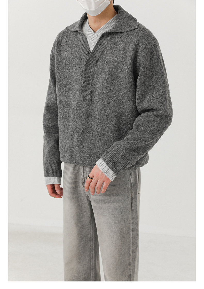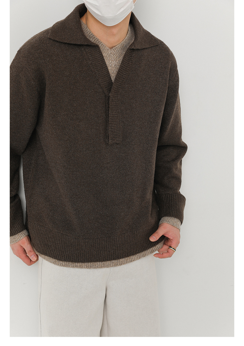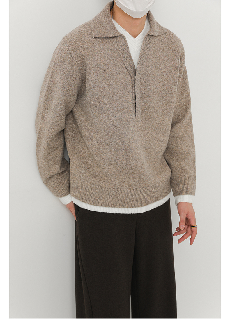 ZPZ設計感拼接撞色假兩件POLO翻領針織衫男秋冬季寬松V領套頭毛衣