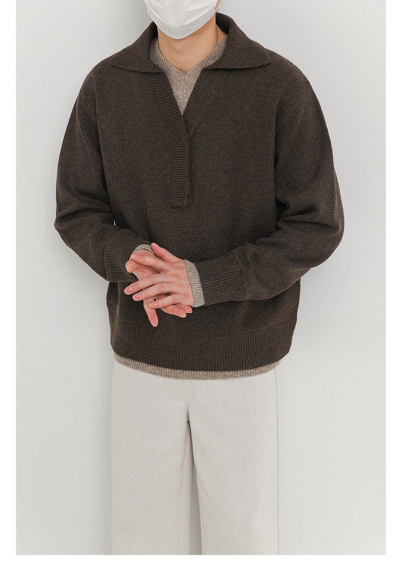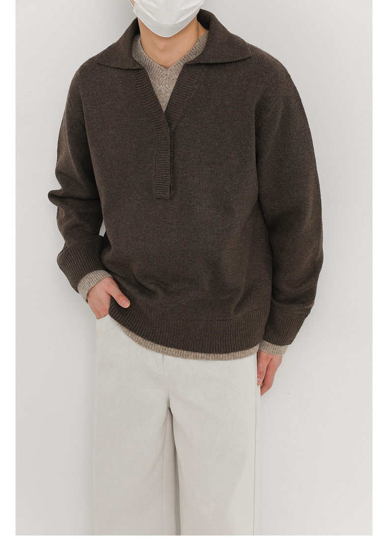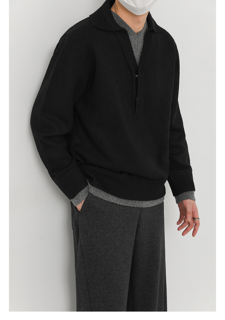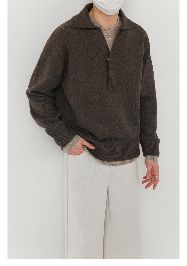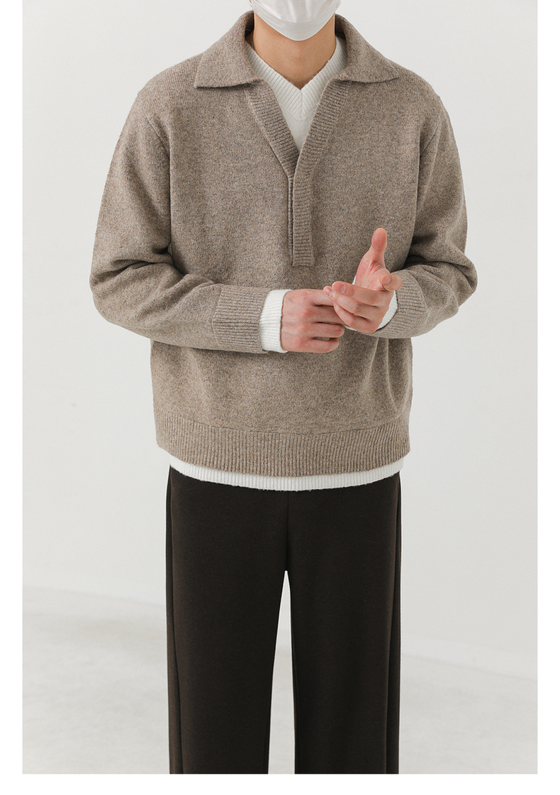 ZPZ設計感拼接撞色假兩件POLO翻領針織衫男秋冬季寬松V領套頭毛衣