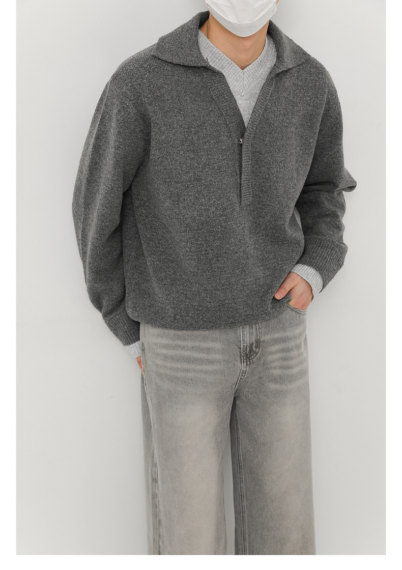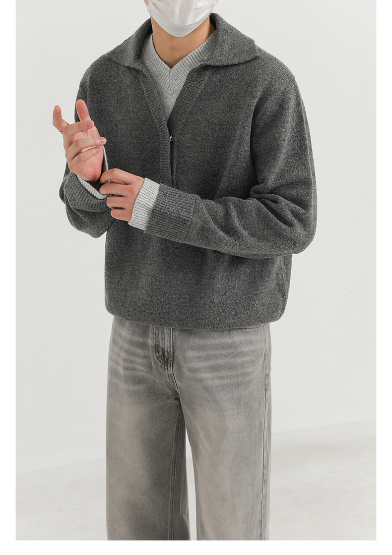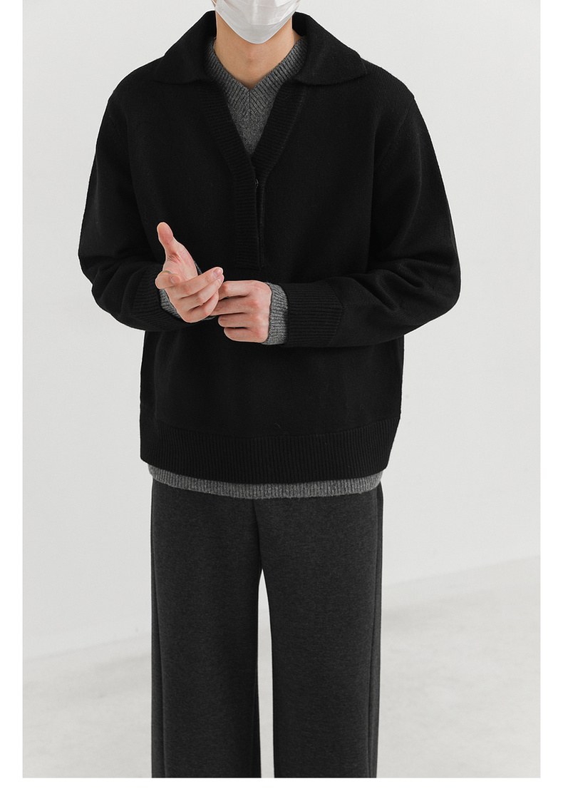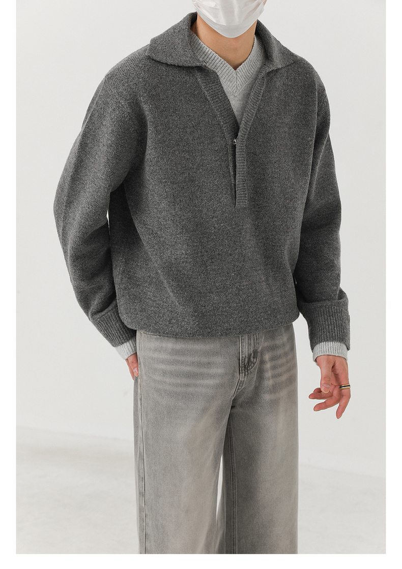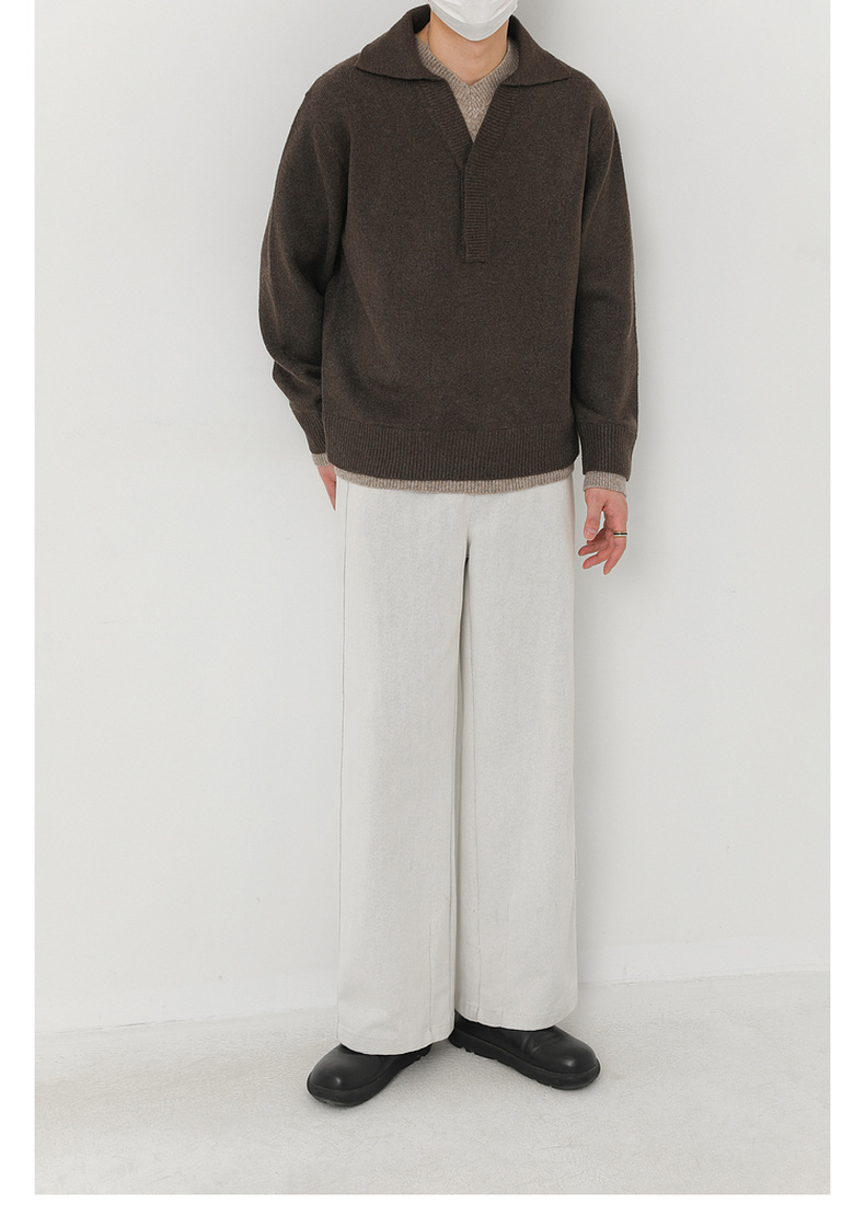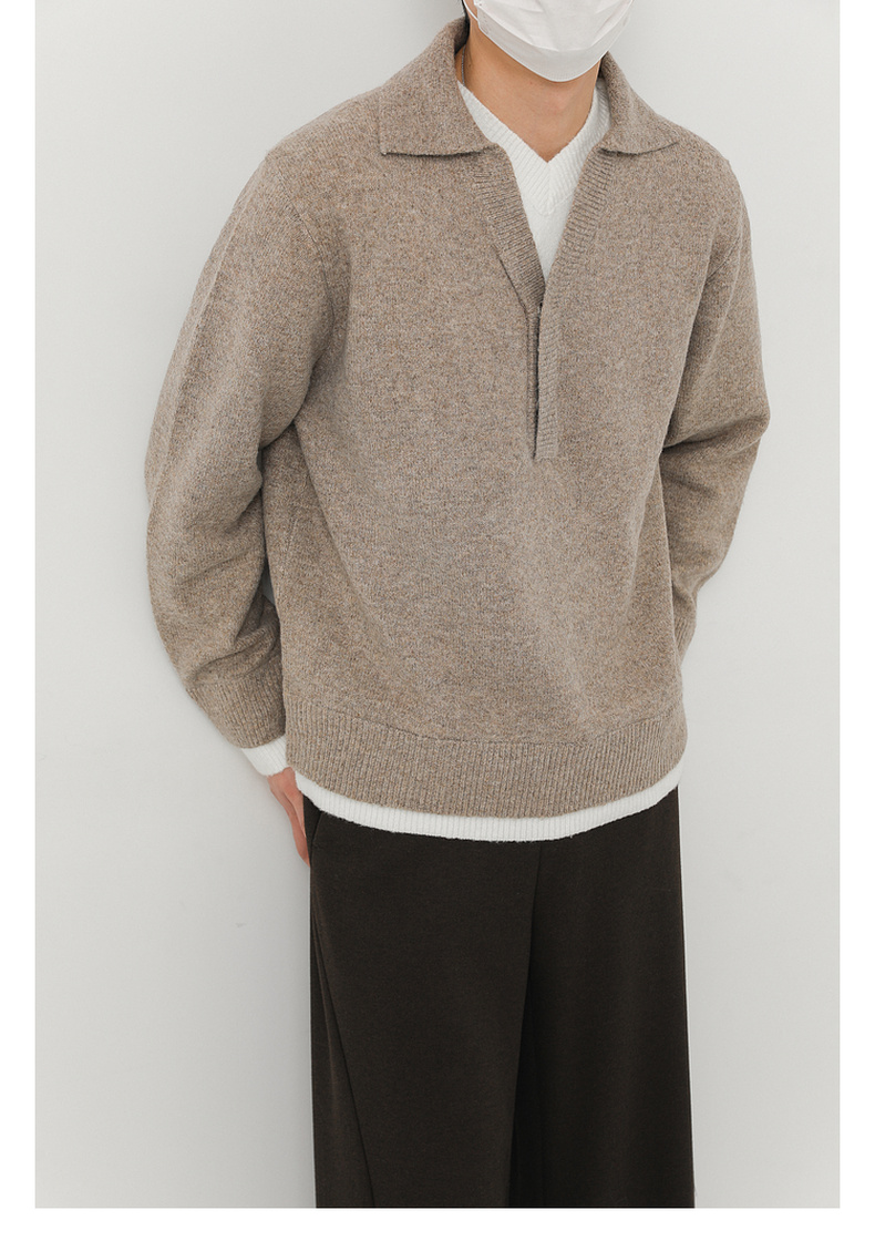 ZPZ設計感拼接撞色假兩件POLO翻領針織衫男秋冬季寬松V領套頭毛衣