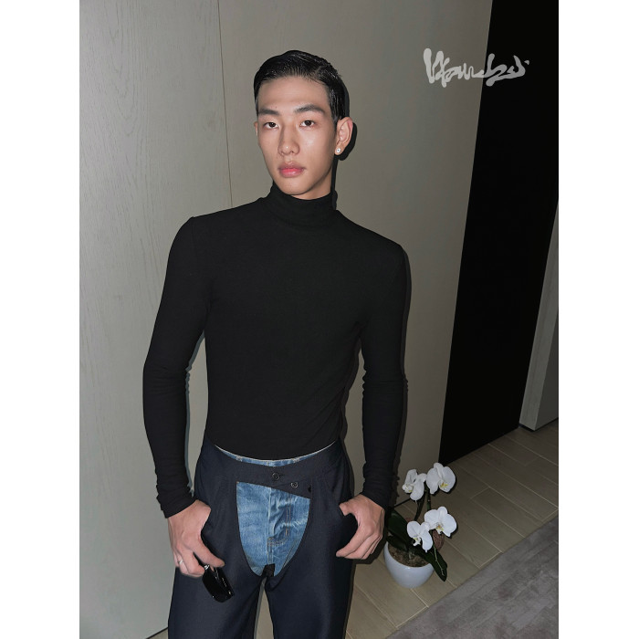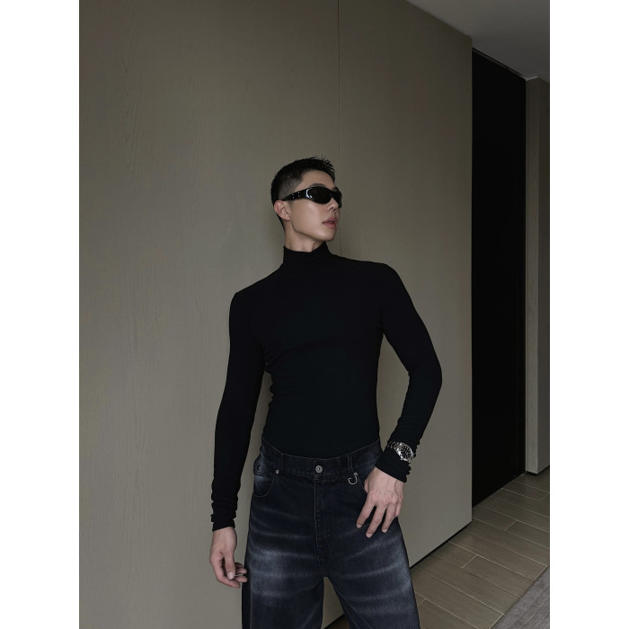 weave 極簡天花板 鎖溫髮熱德絨時髦修身黑色半高領長袖打底上衣