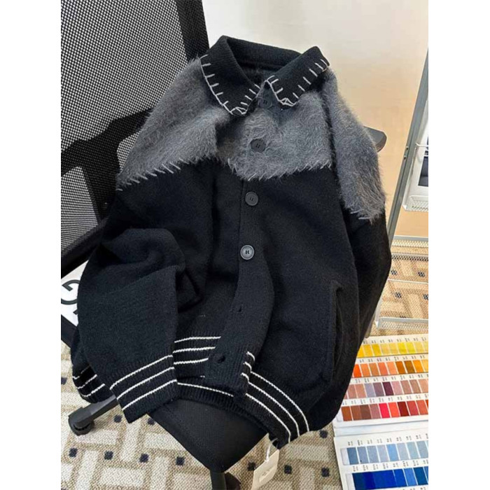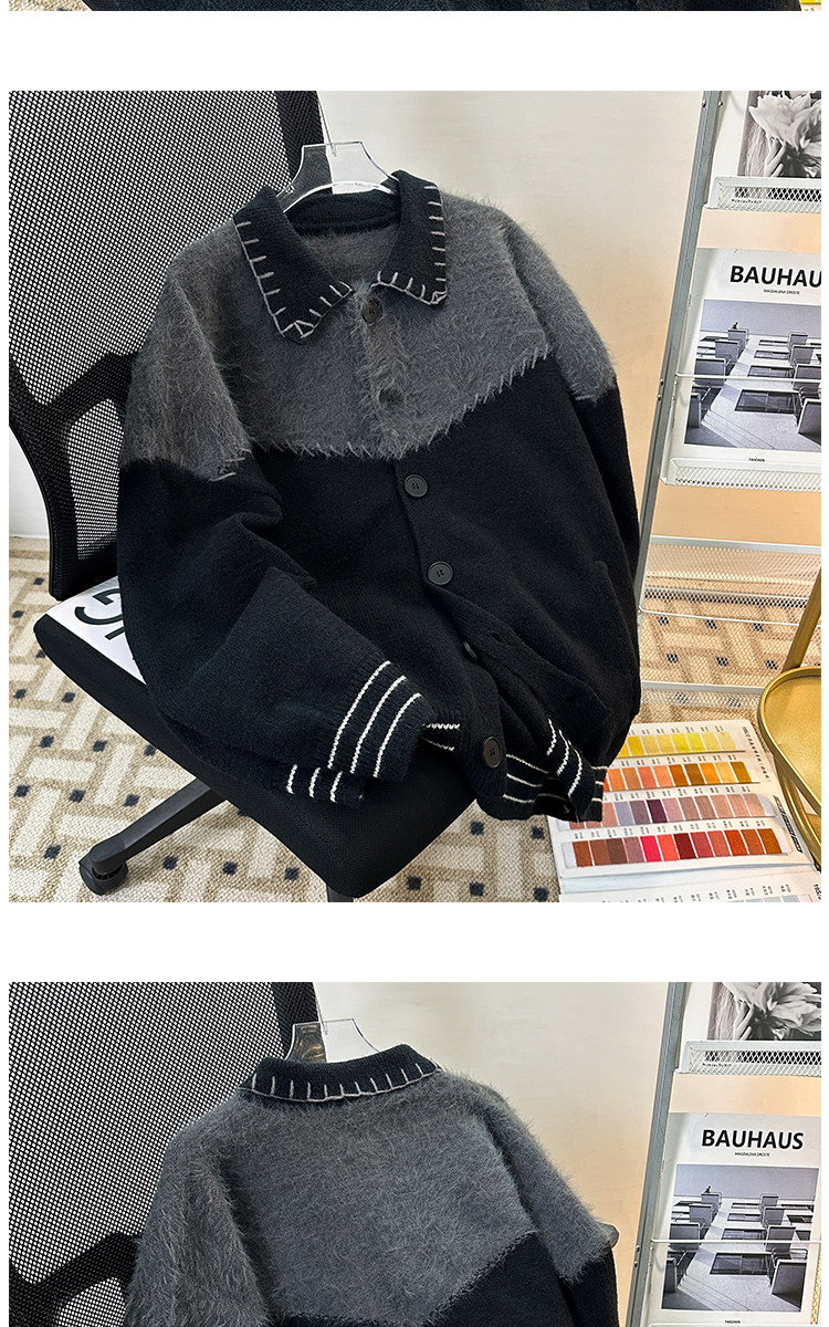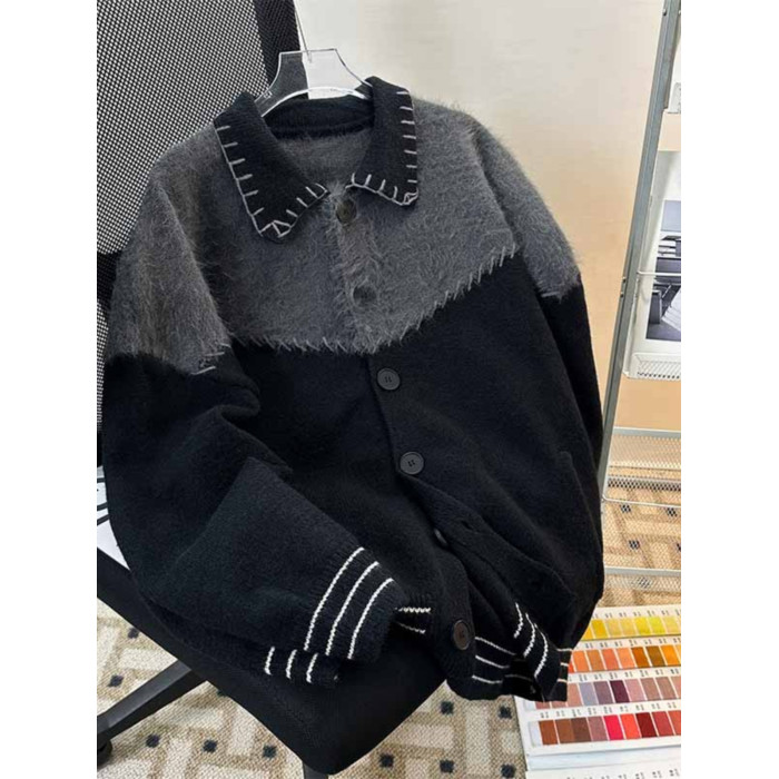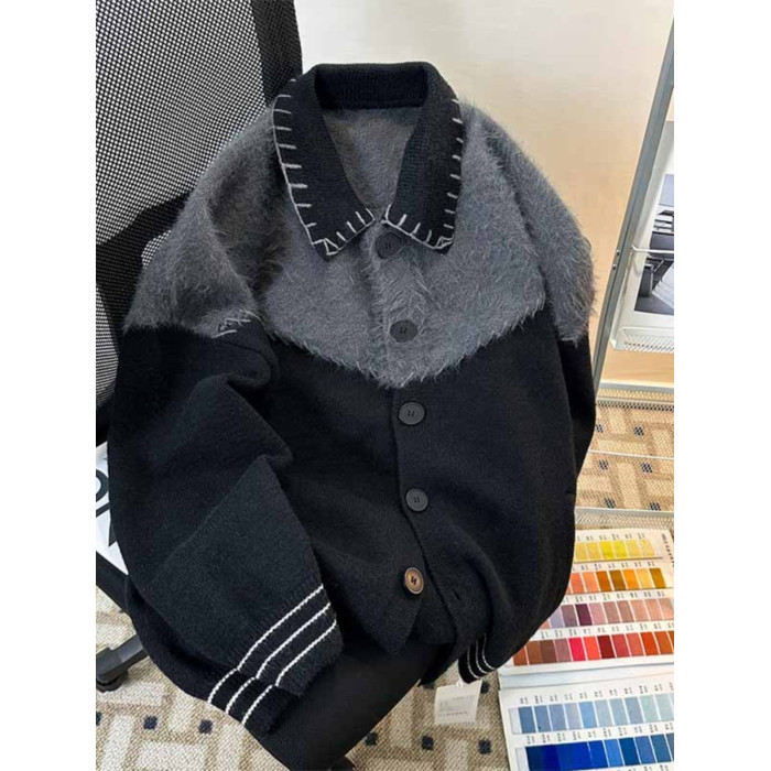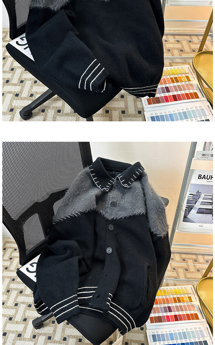 秋冬紐釦開衫毛衣男潮牌學生青少年復古保暖小衆設計感外套針織衫