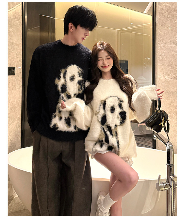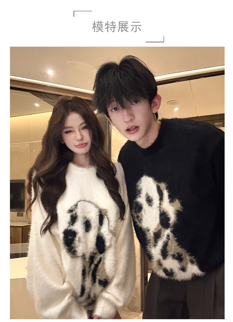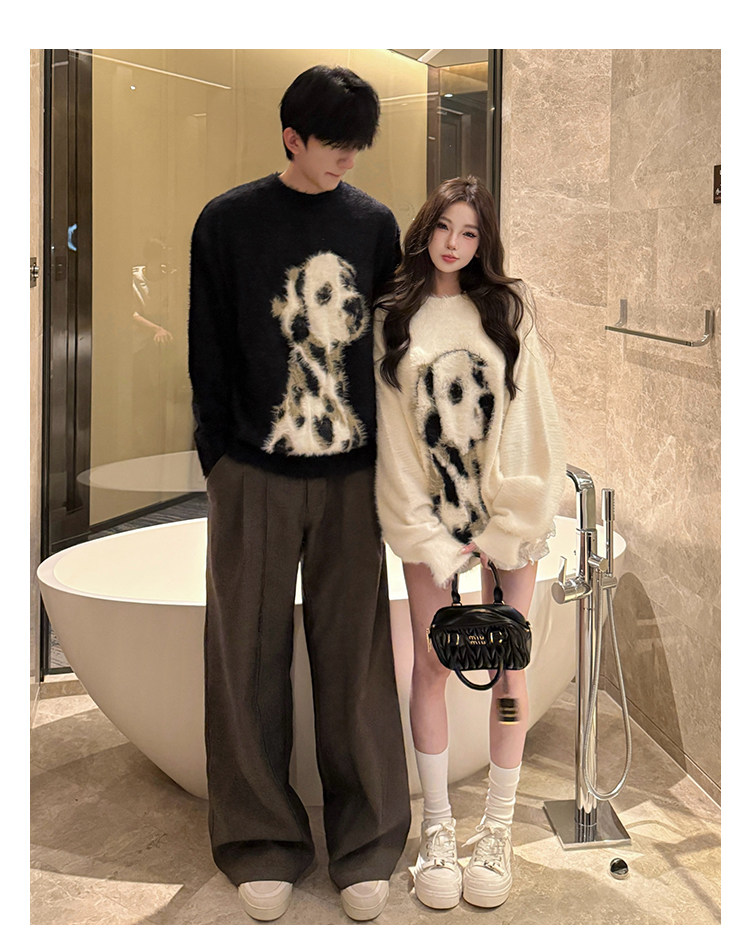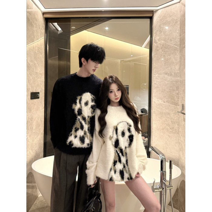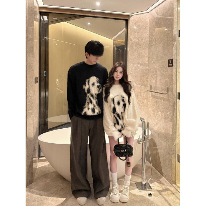 情侶裝秋冬高級感2025新款美式斑點狗毛衣寬鬆圓領慵嬾風針織上衣