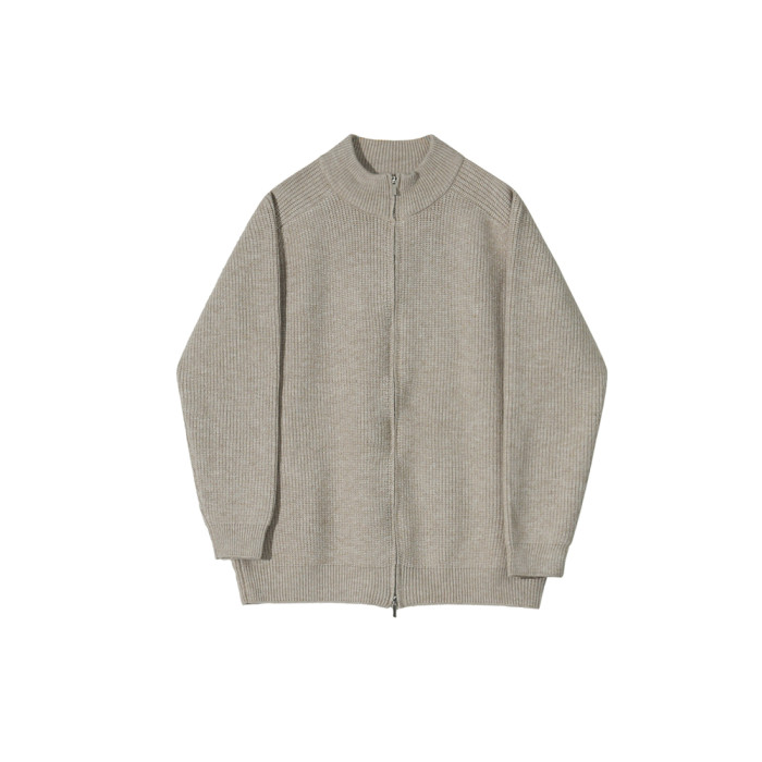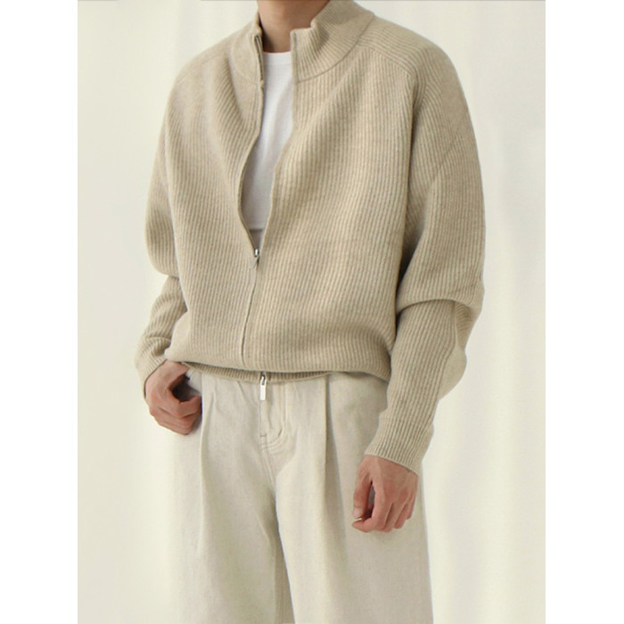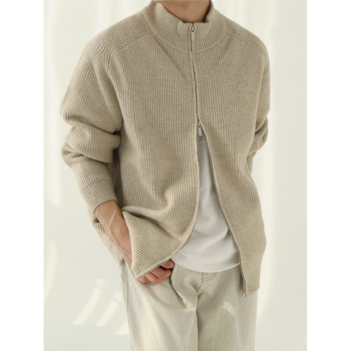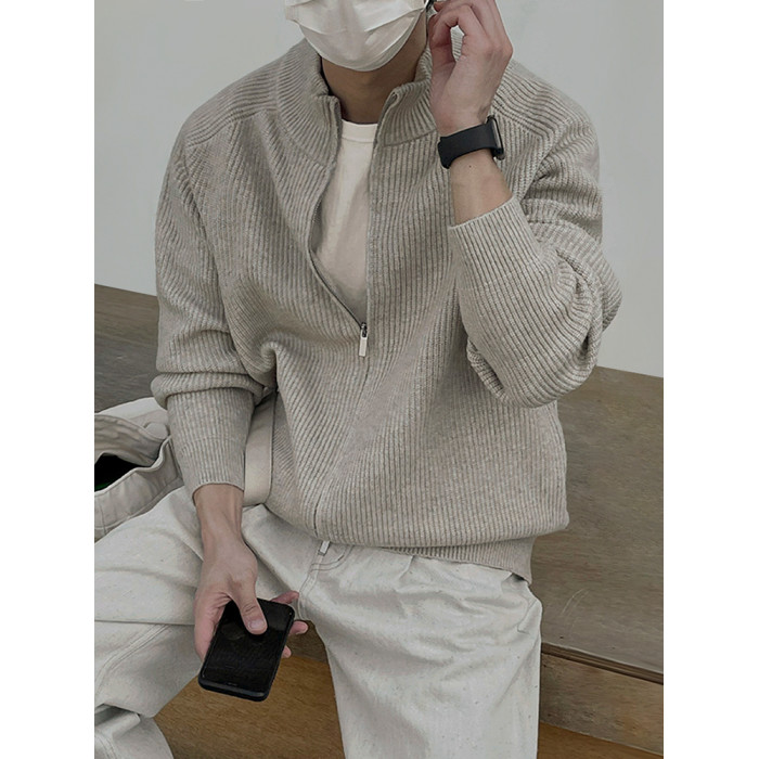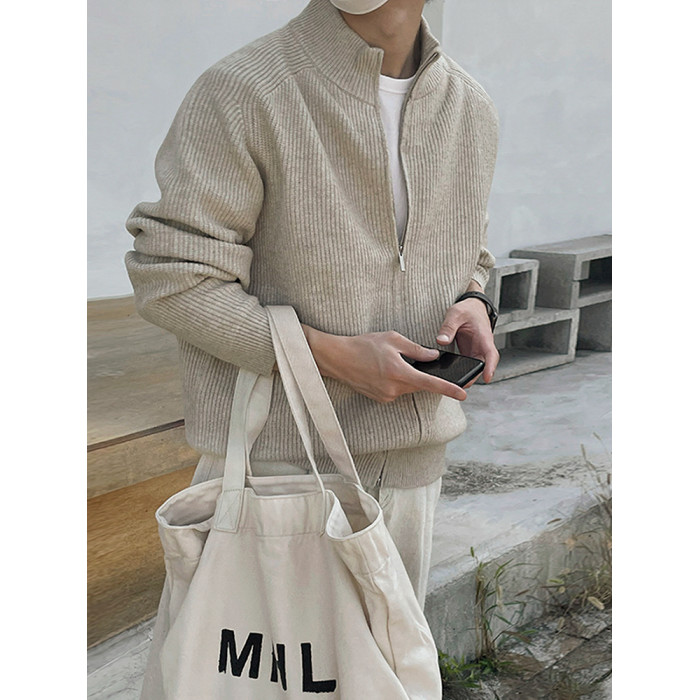 MRCYC立領慵懶風高領毛衣外套男士秋季韓系寬松潮流拉鍊針織開衫