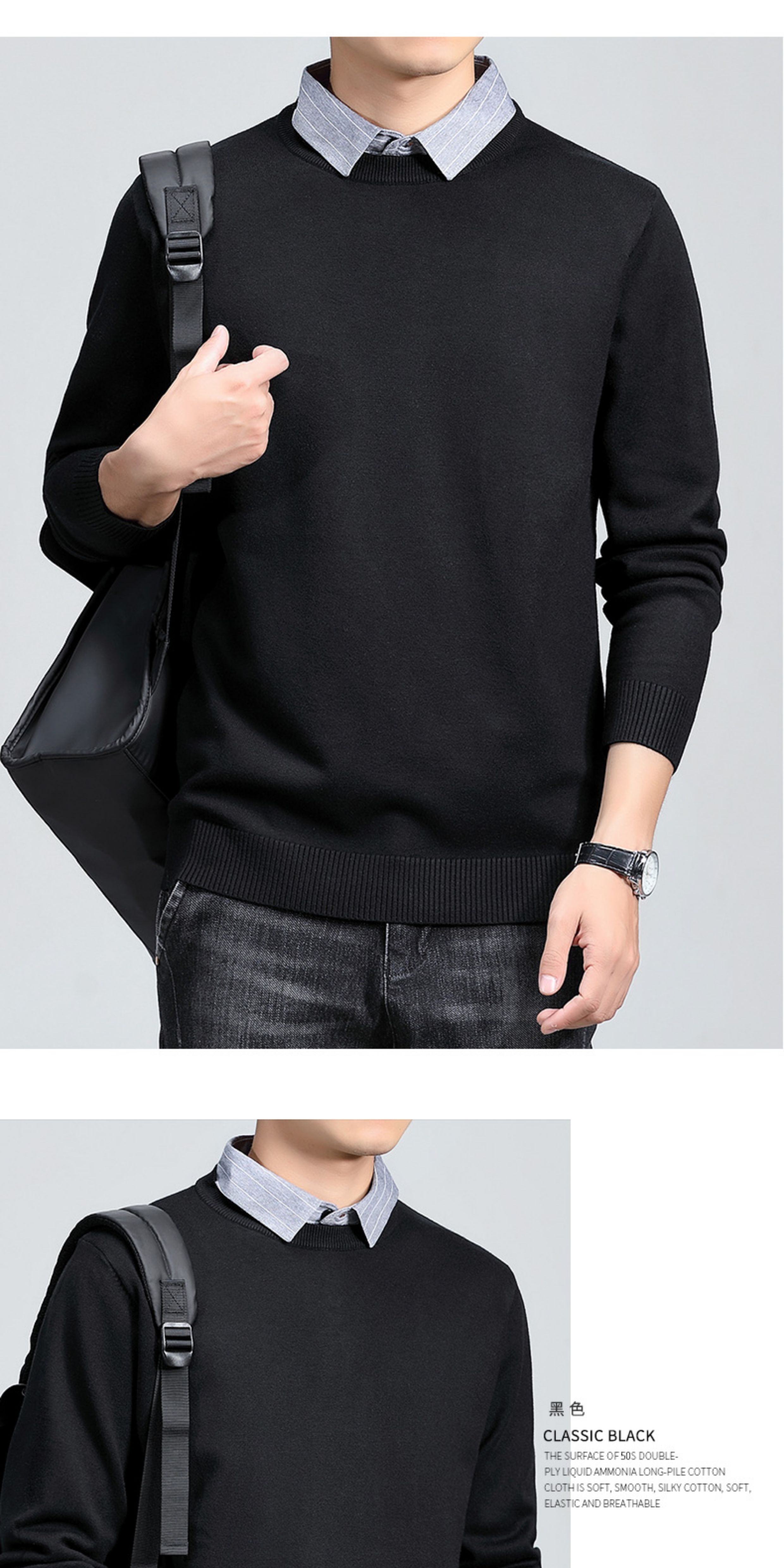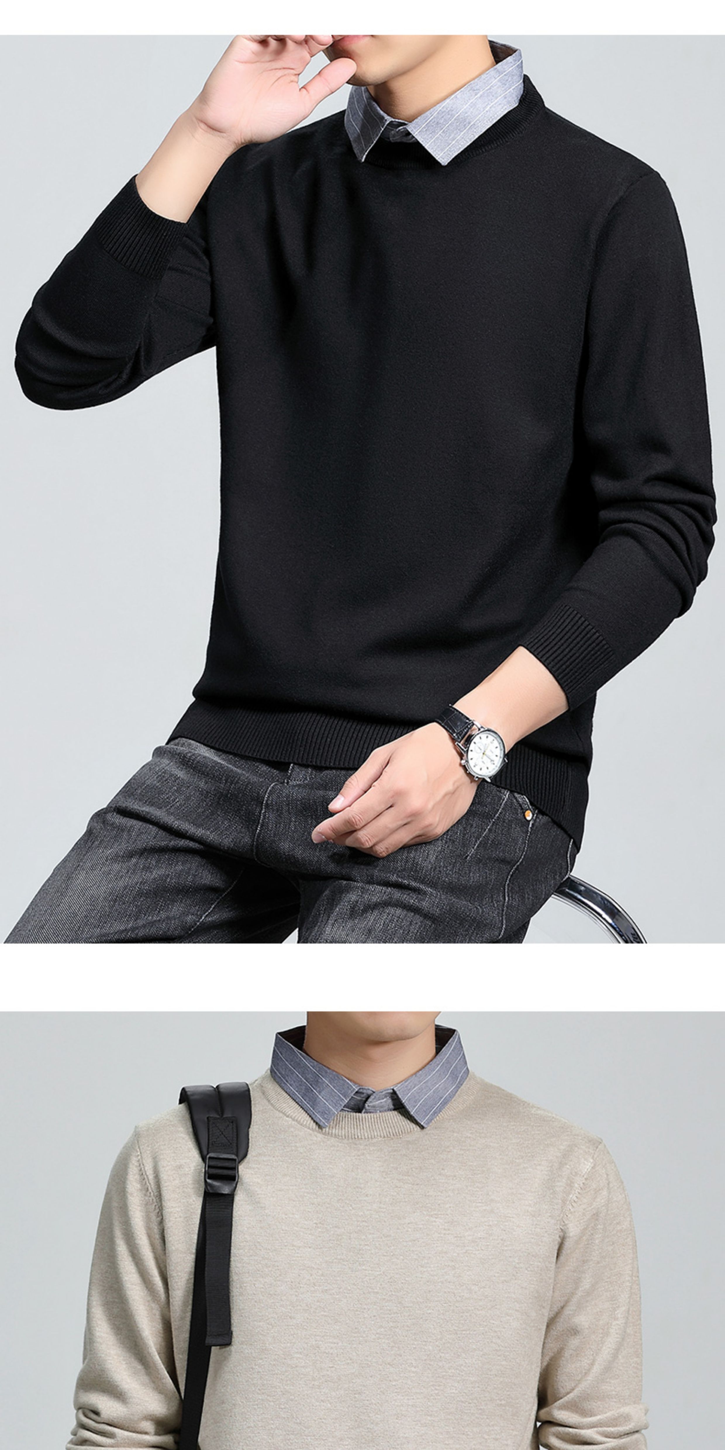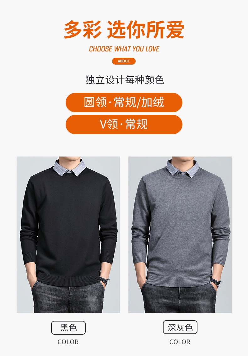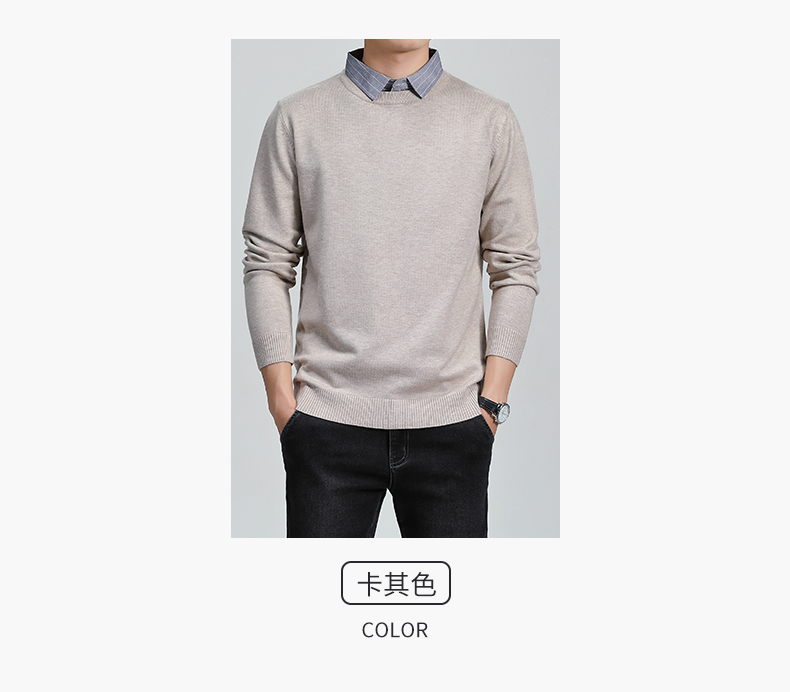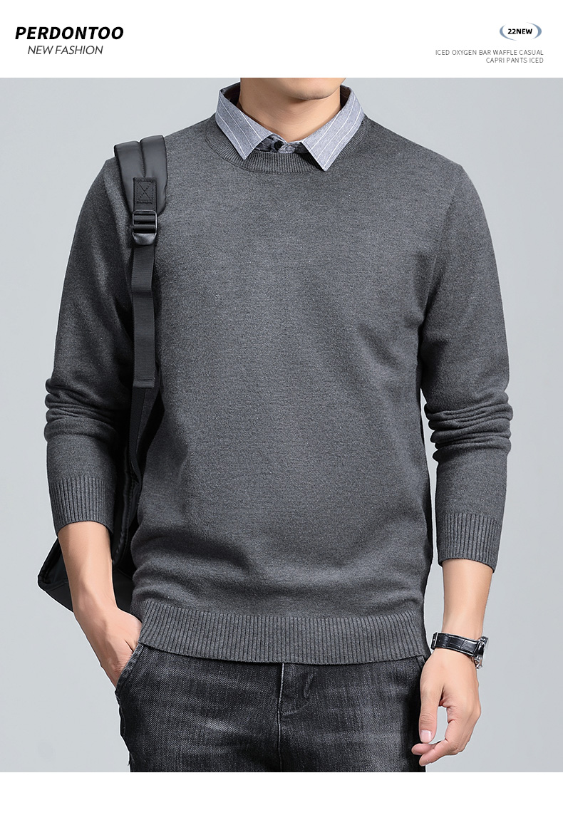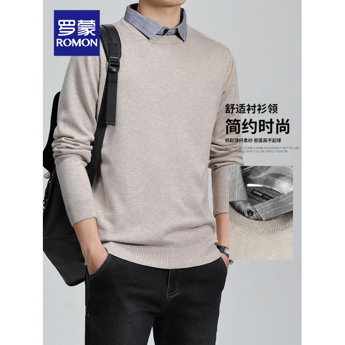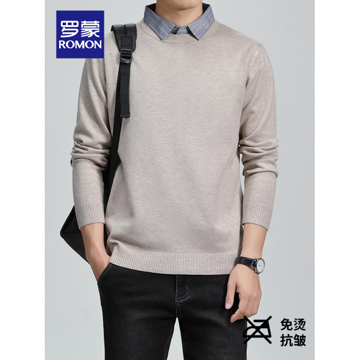 羅矇2025新款假兩件毛衣男秋冬修身打底衫保暖針織衫休閒上衣男