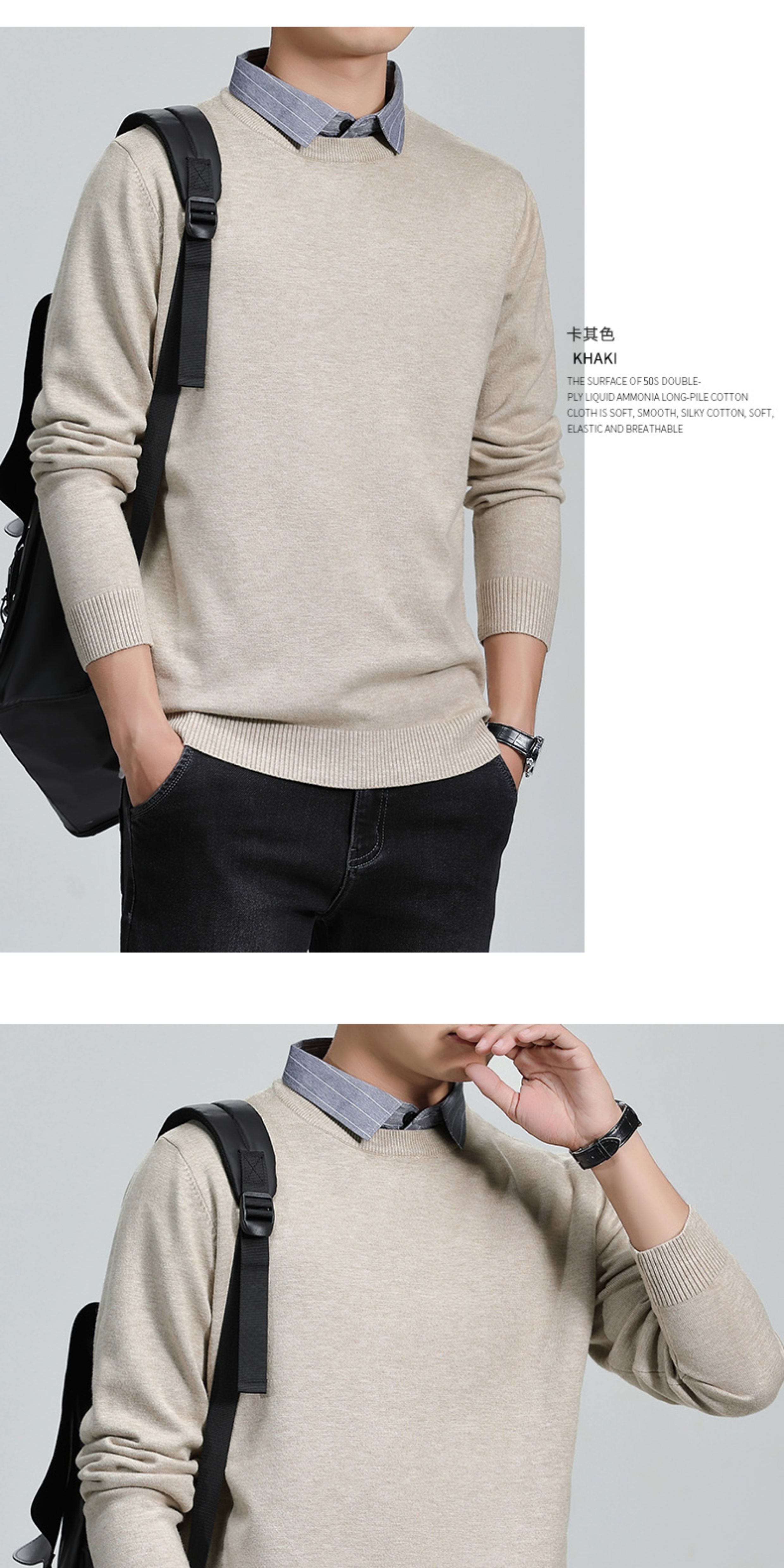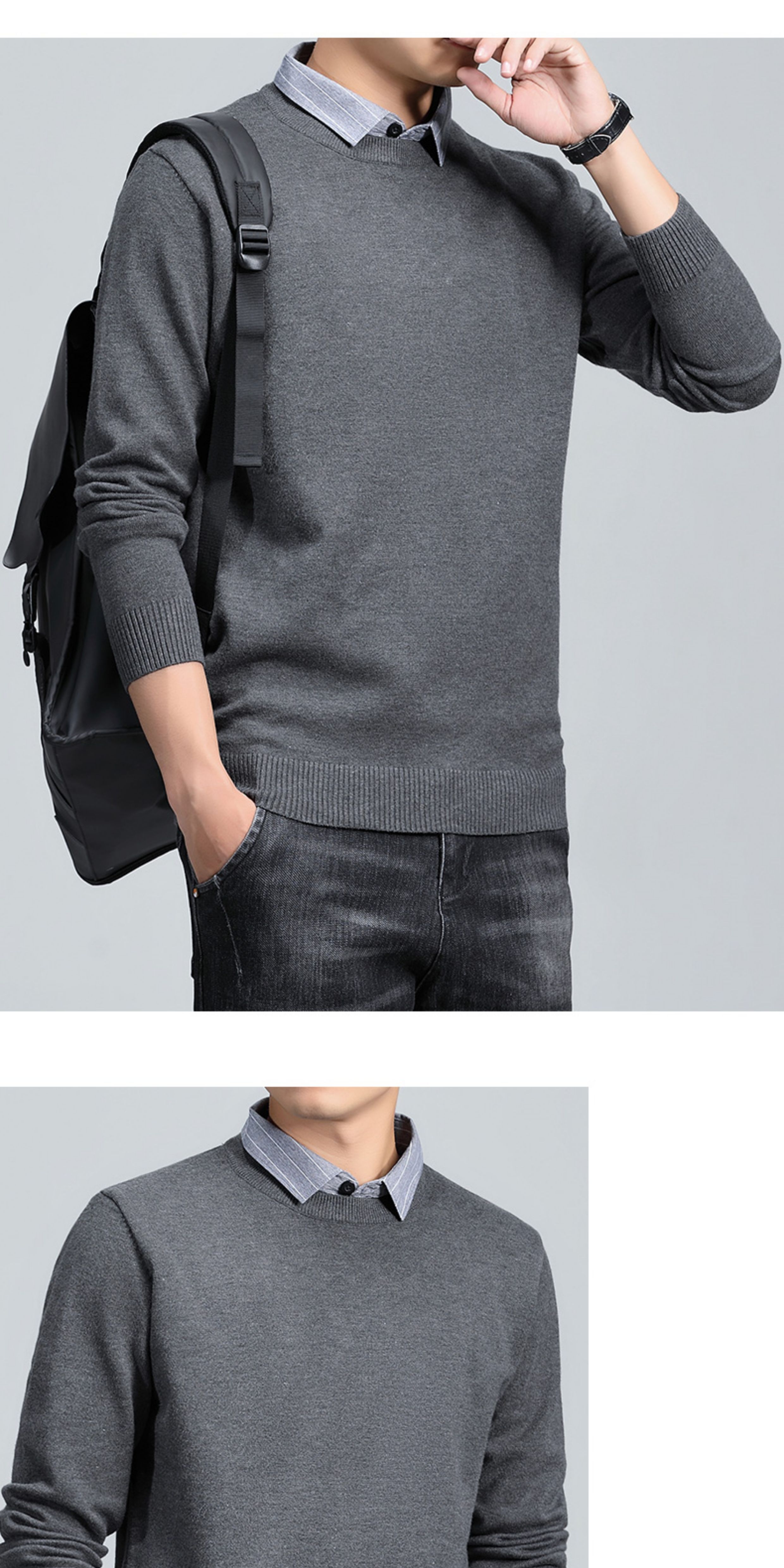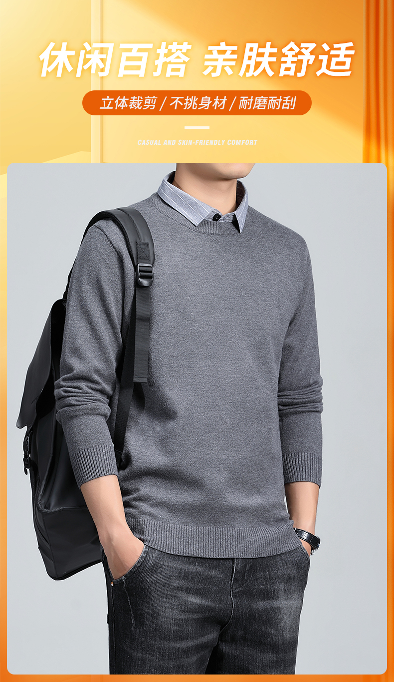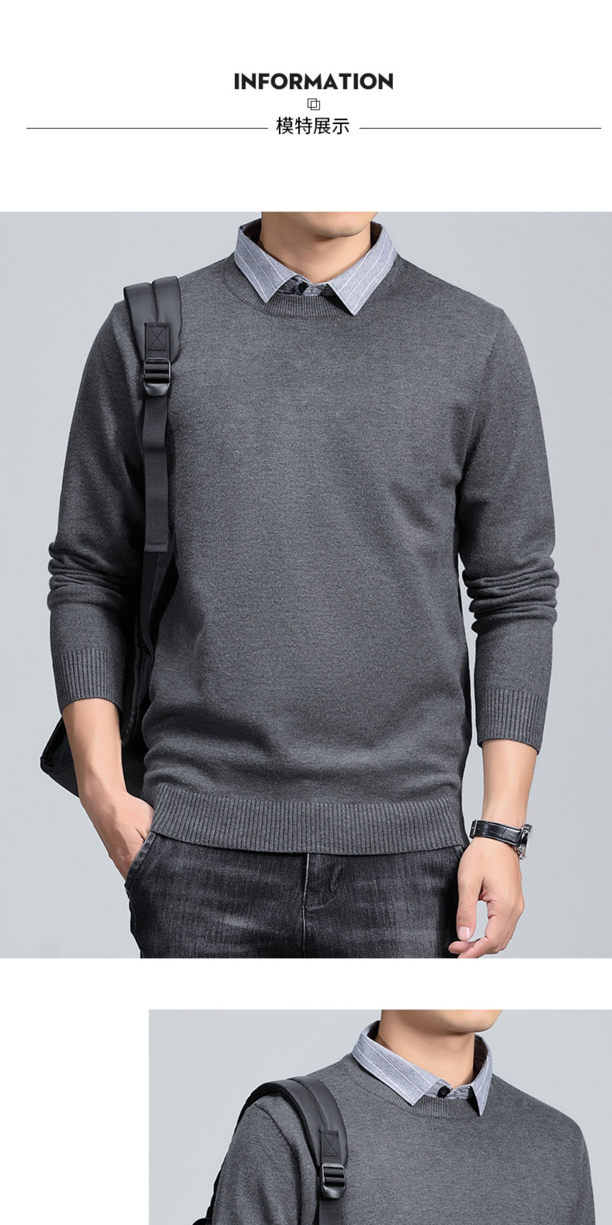 羅矇2025新款假兩件毛衣男秋冬修身打底衫保暖針織衫休閒上衣男
