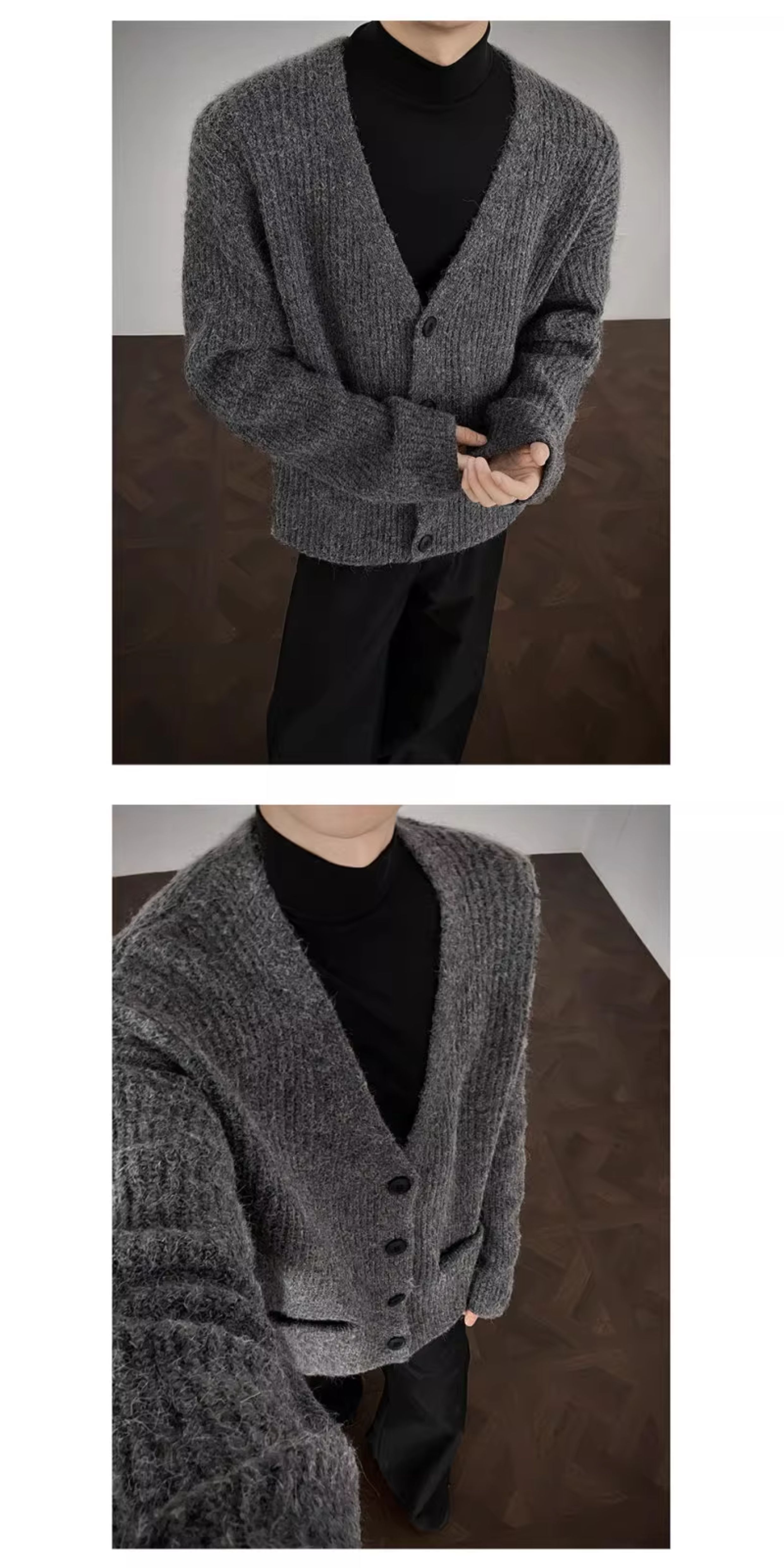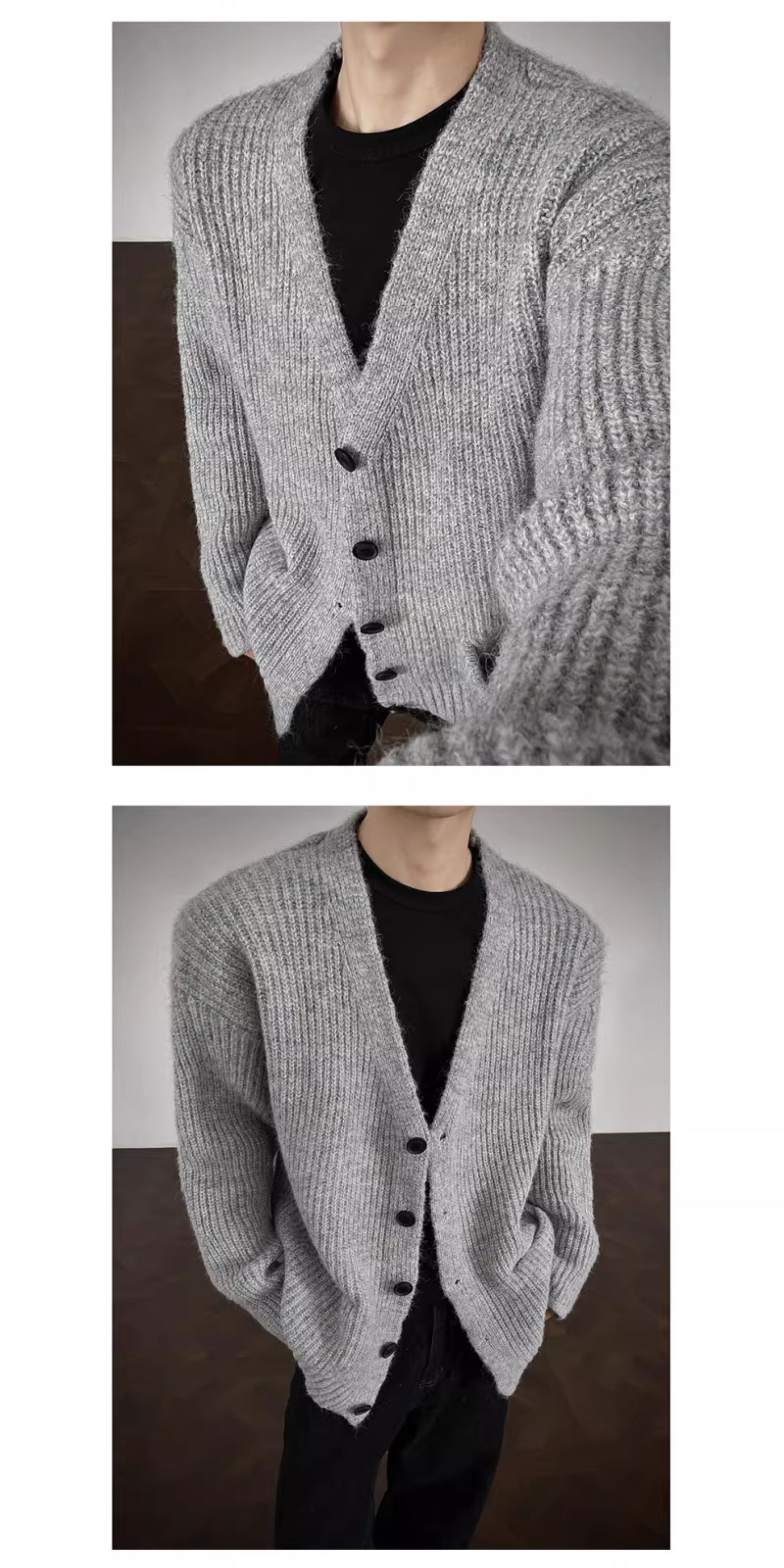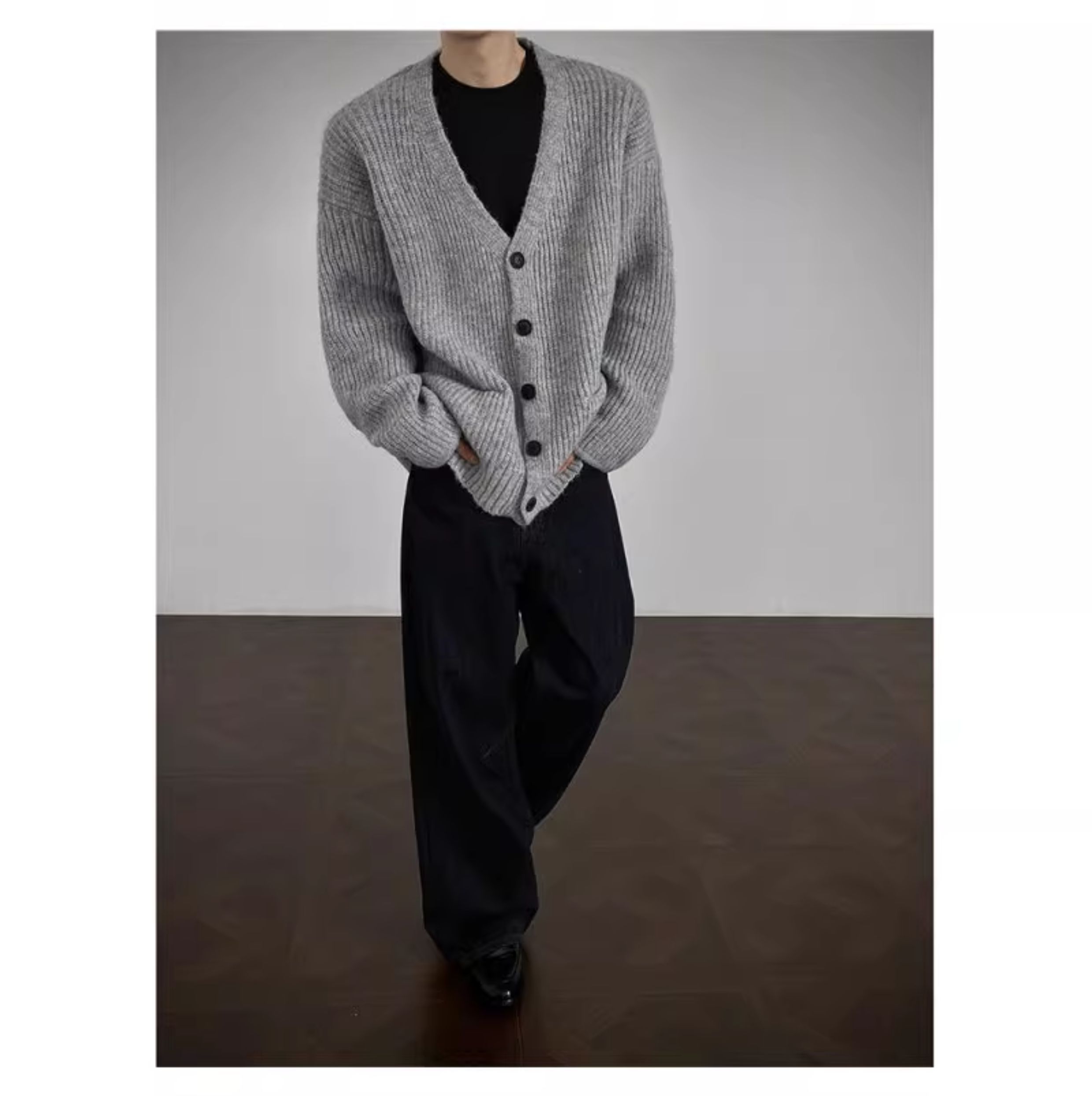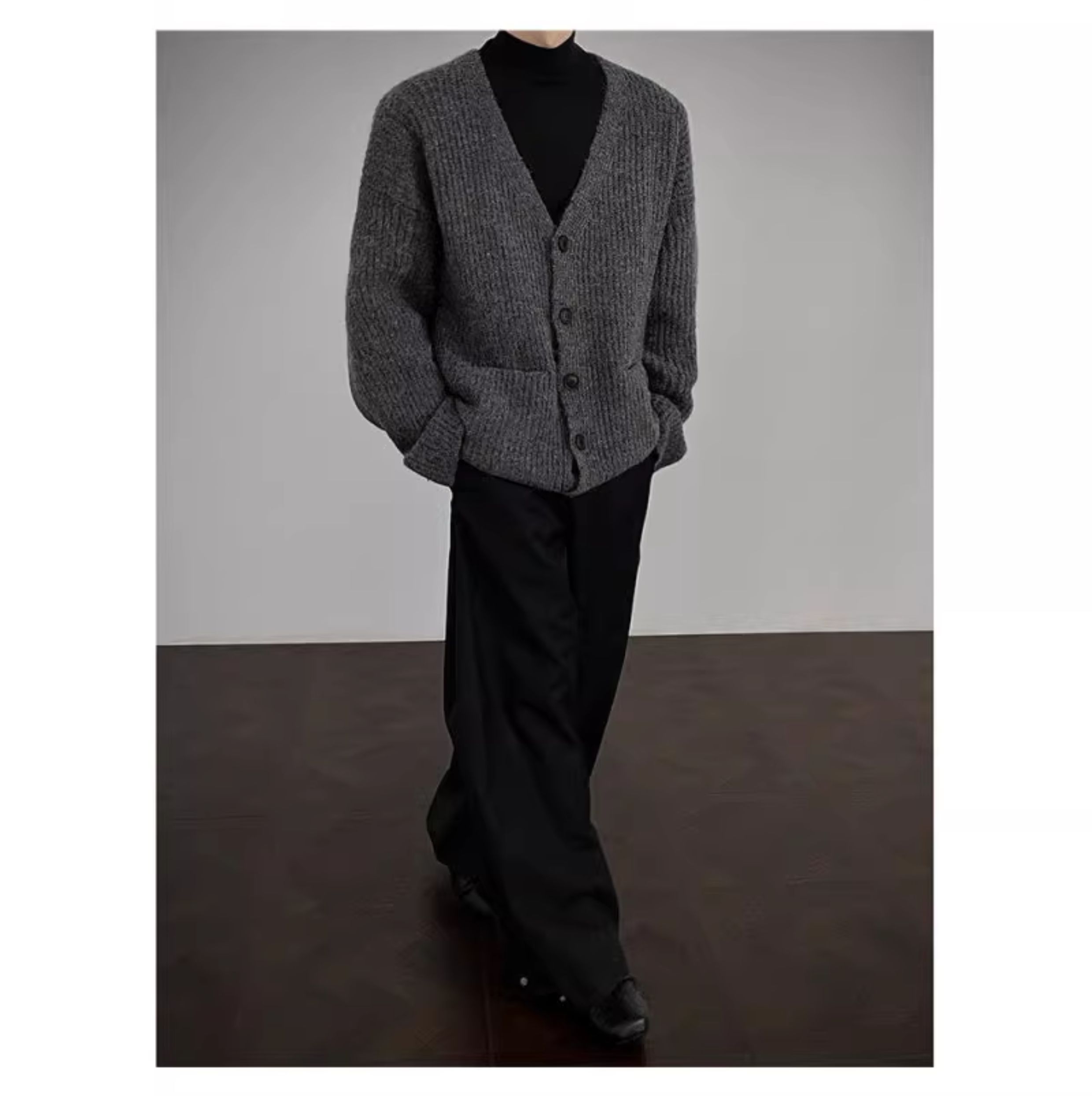 痞帥高級感男士針織開衫毛衣外套男春秋季韓系cleanfit穿搭上衣男
