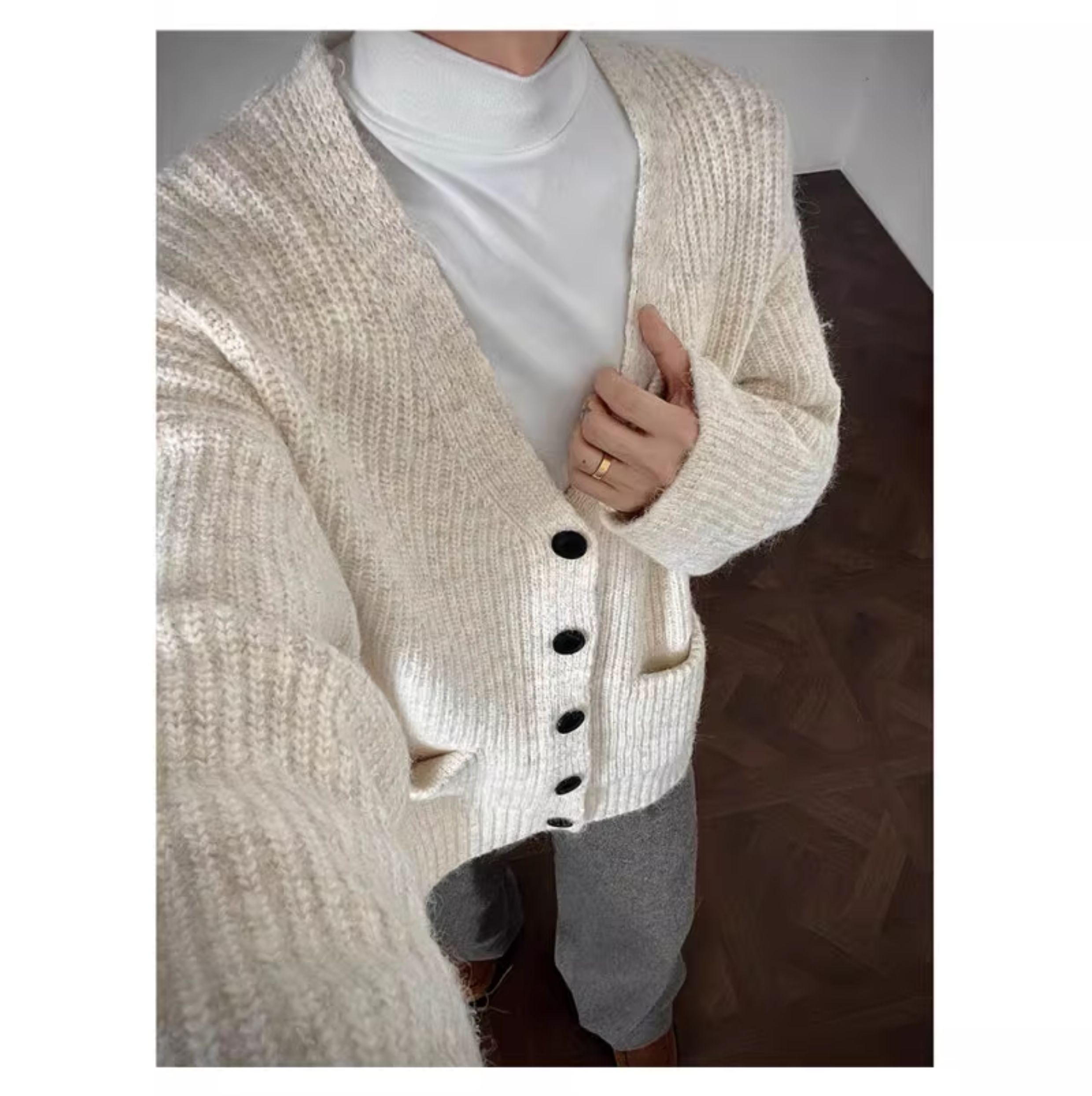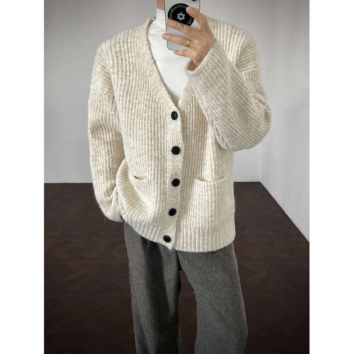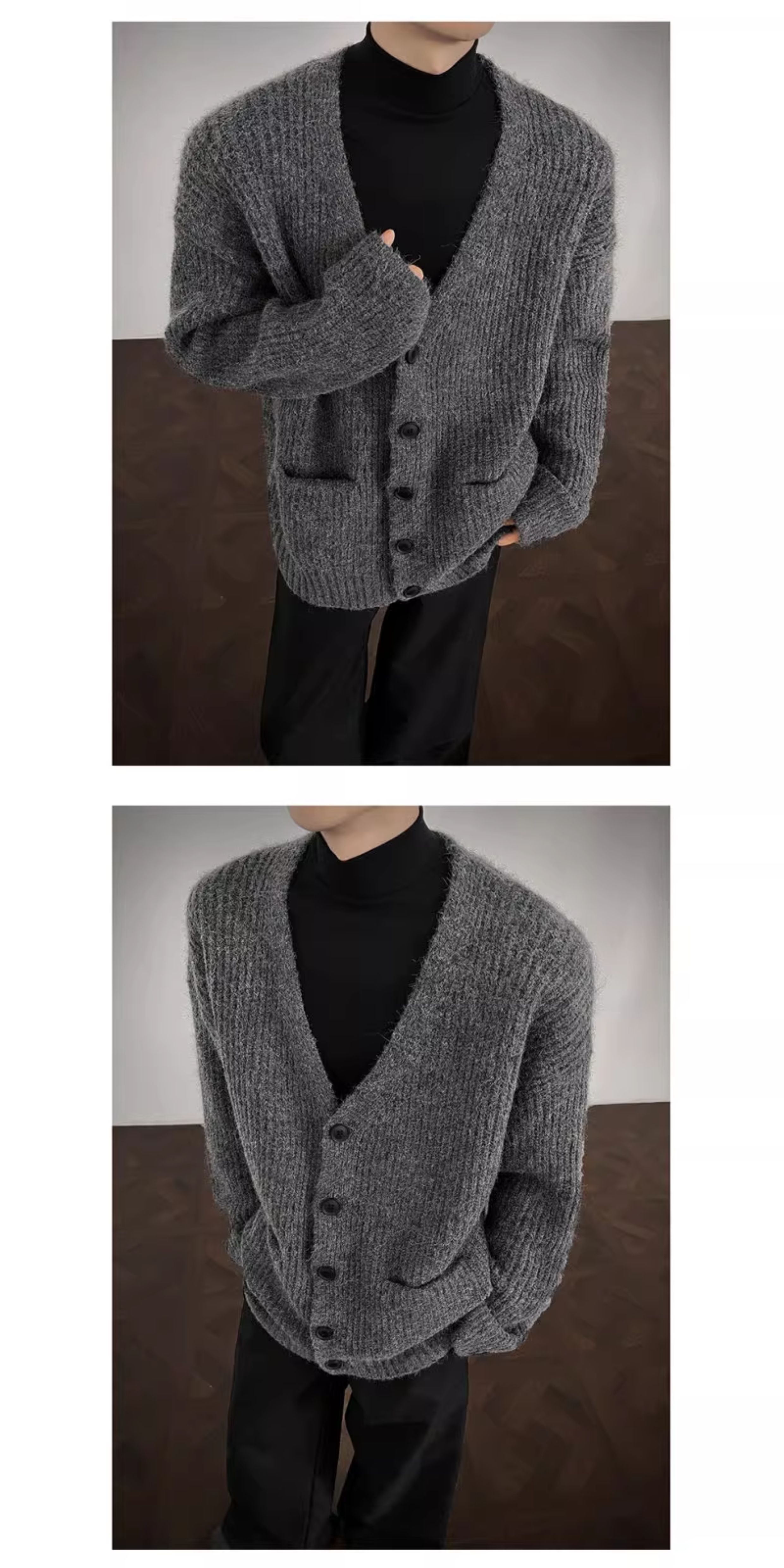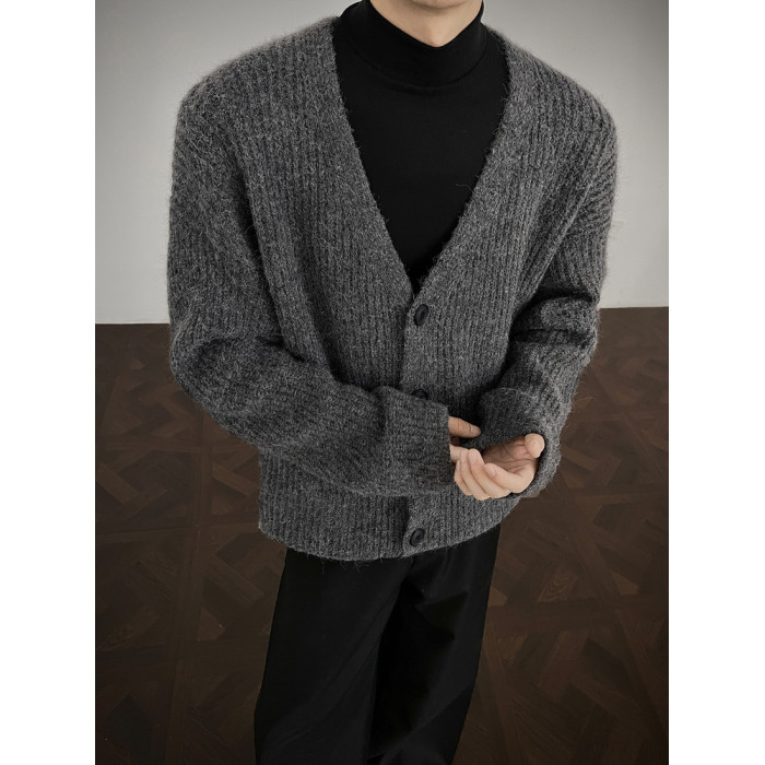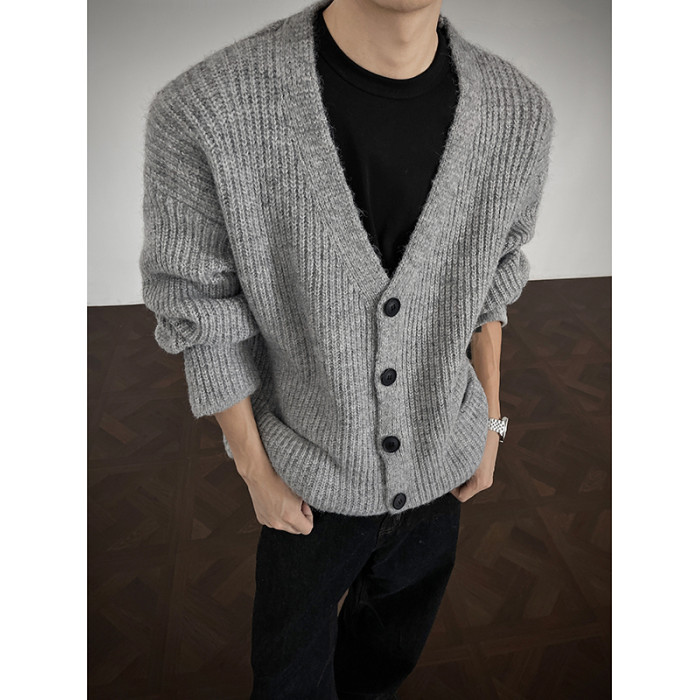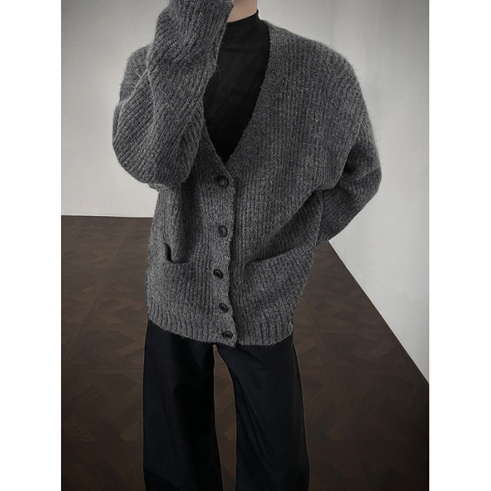 痞帥高級感男士針織開衫毛衣外套男春秋季韓系cleanfit穿搭上衣男