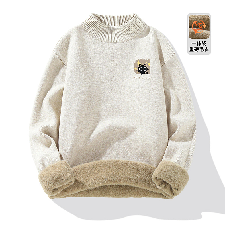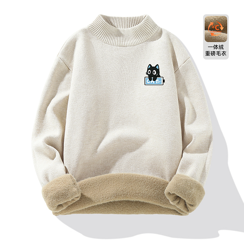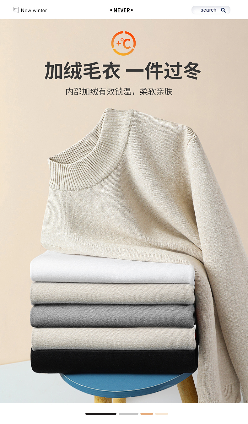 迴力加絨毛衣男款冬季半高領一體絨保暖加厚打底衫男士秋冬針織衫