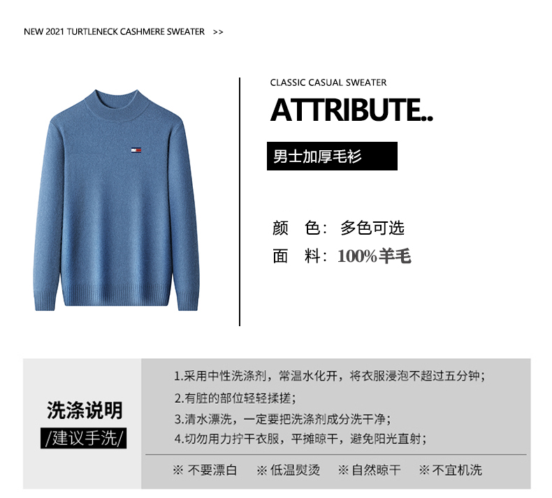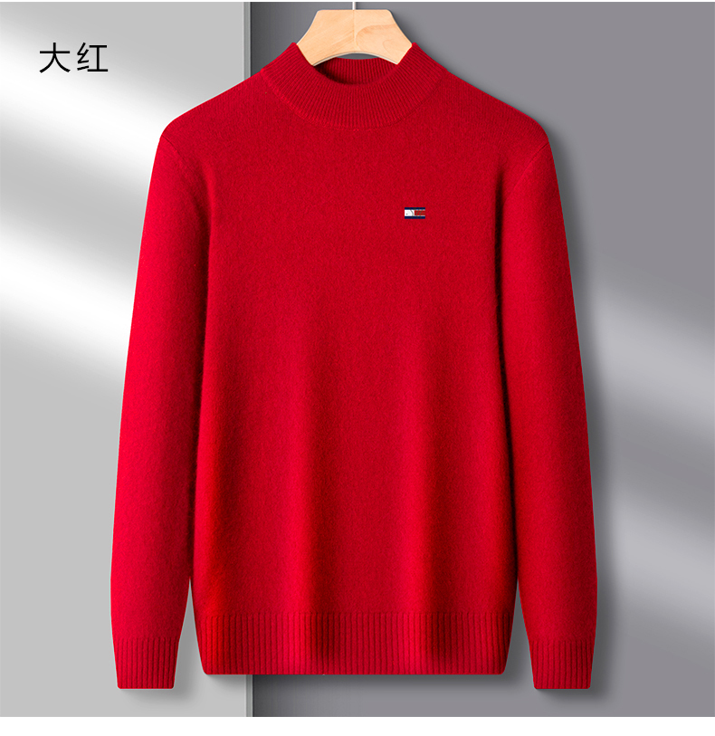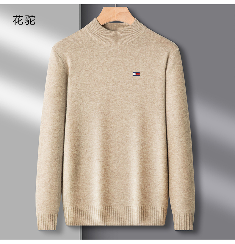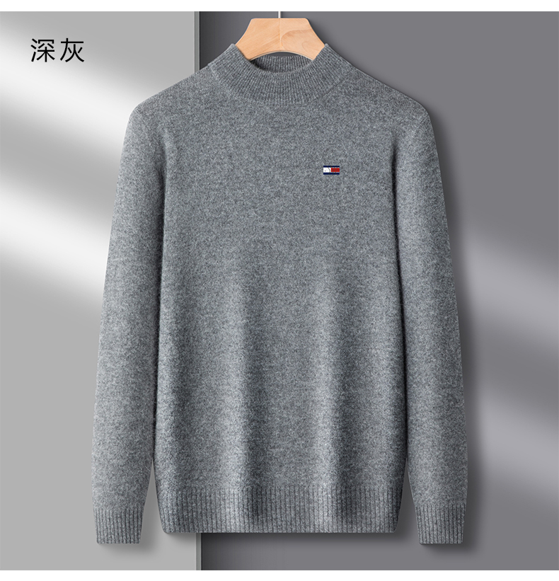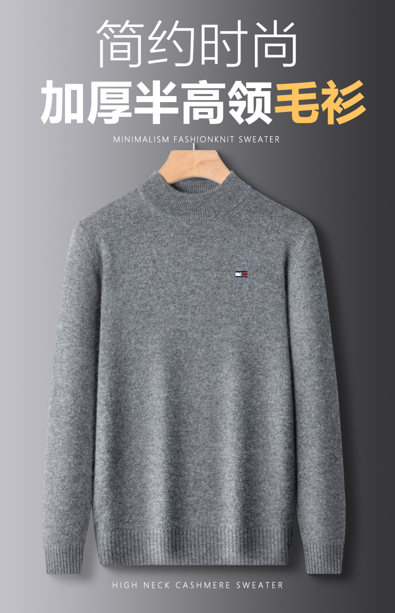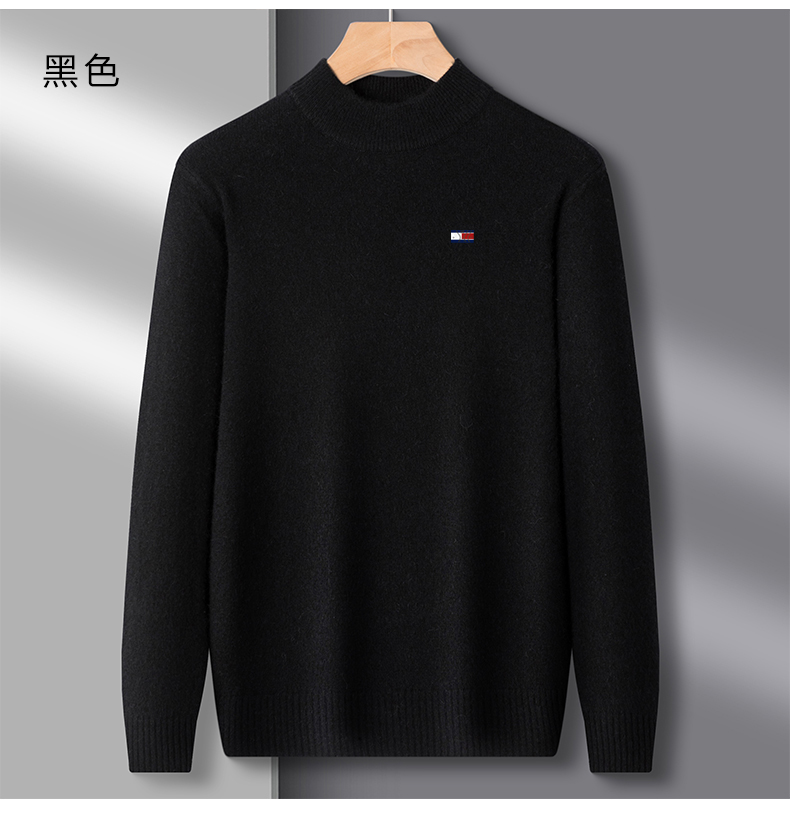 湯米純色羊毛衫男100純羊毛冬季高級品牌半高領加厚羊絨毛衣