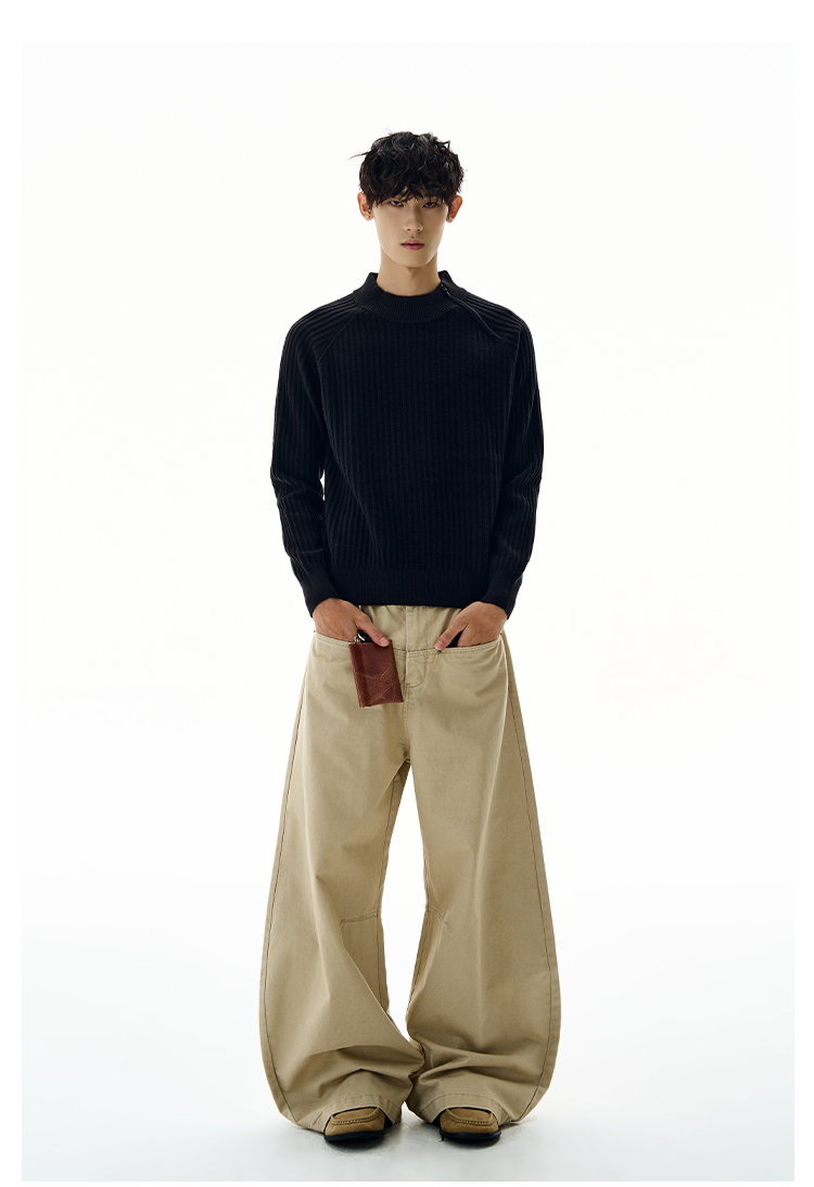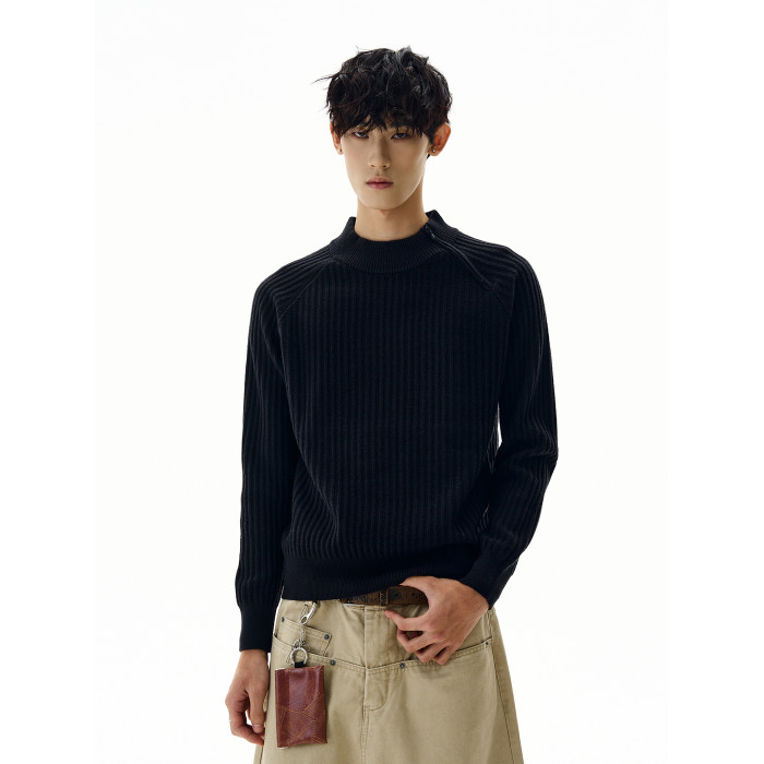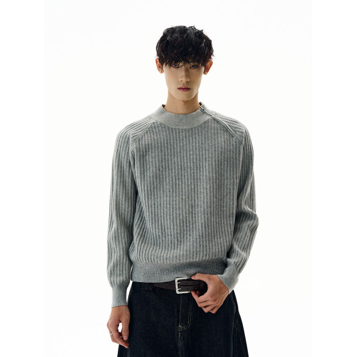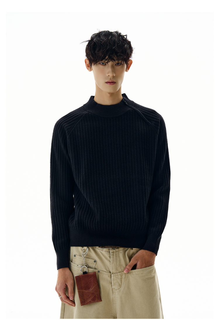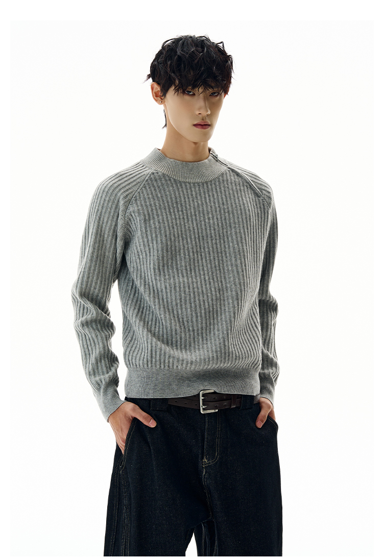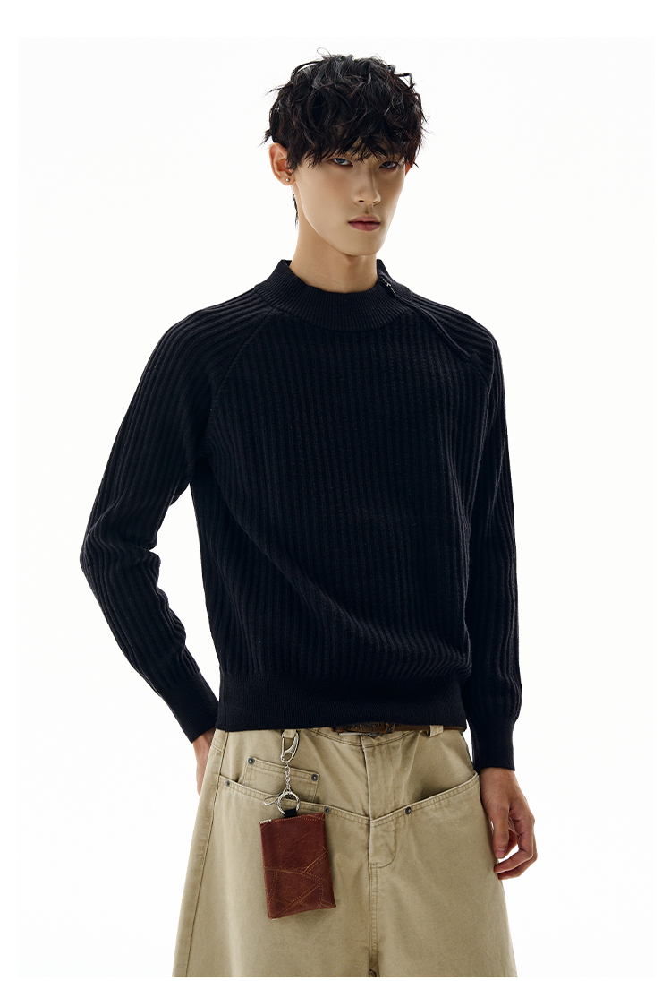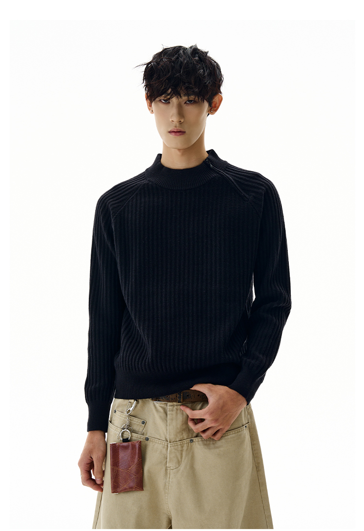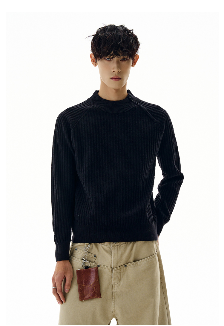 A PUEE美式復古斜拉鍊坑條針織衫cleanfit高級感百搭短款修身毛衣