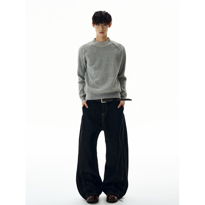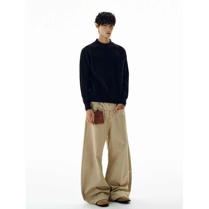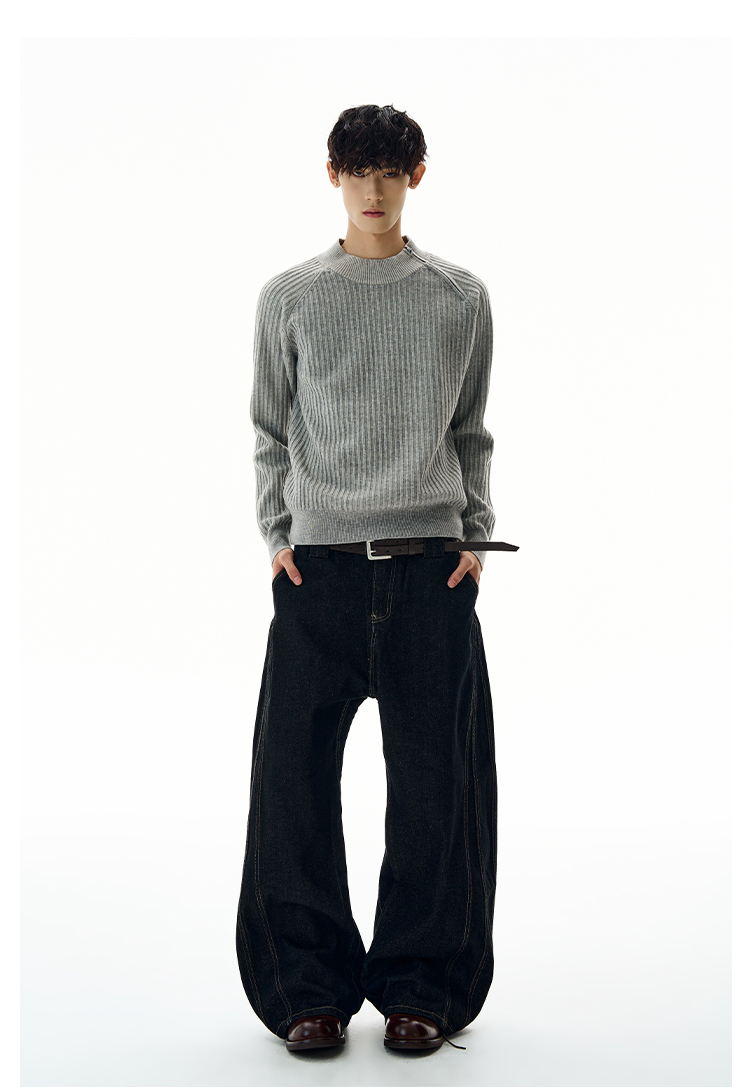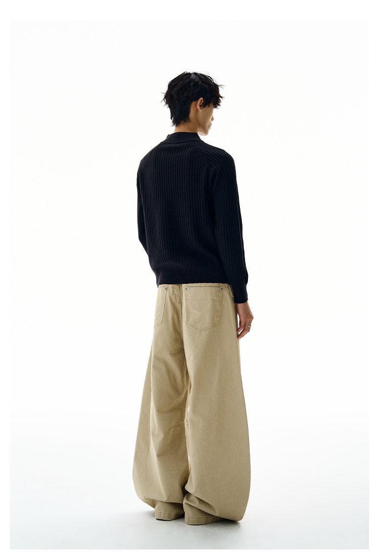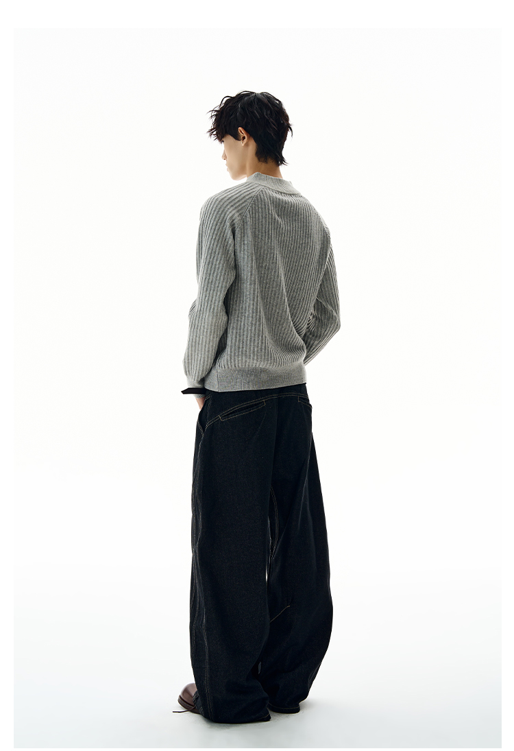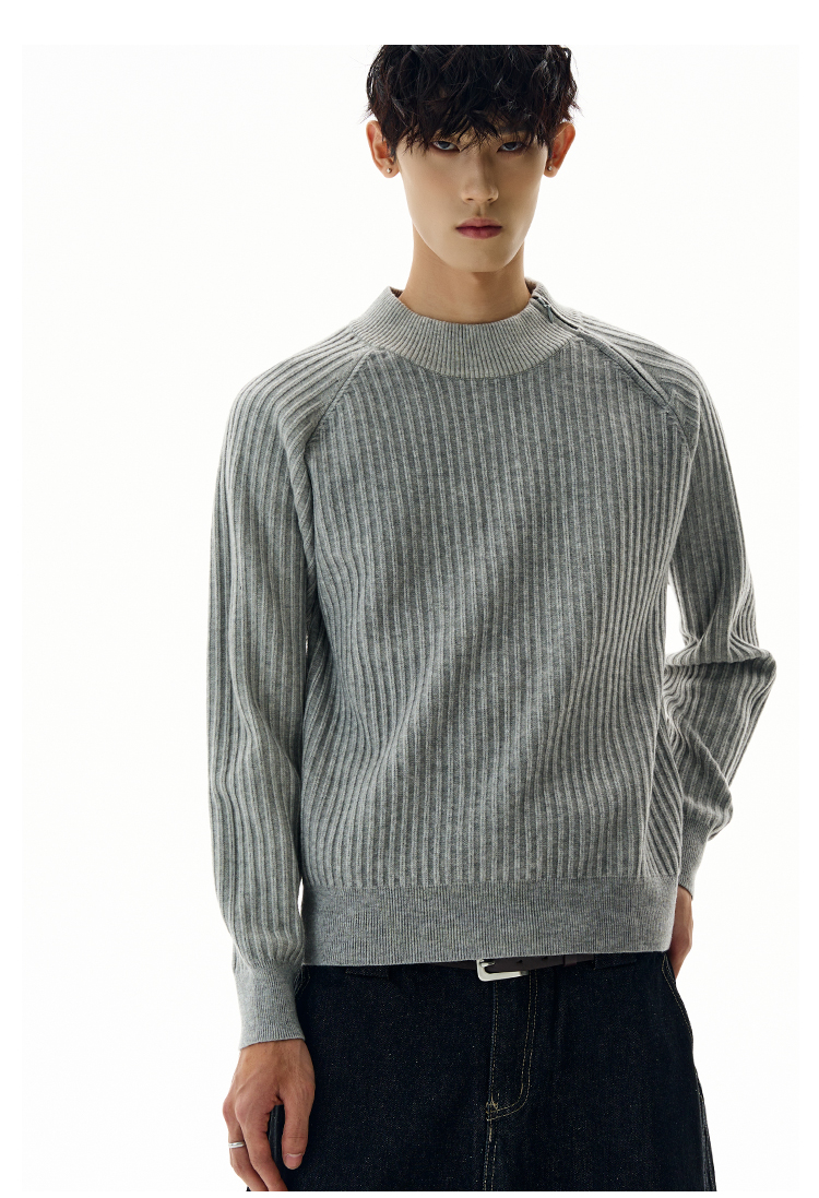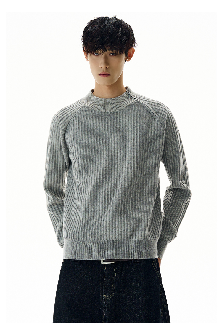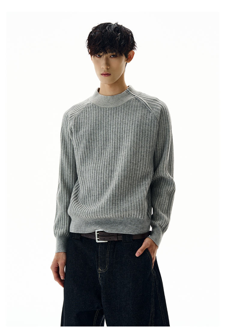 A PUEE美式復古斜拉鍊坑條針織衫cleanfit高級感百搭短款修身毛衣
