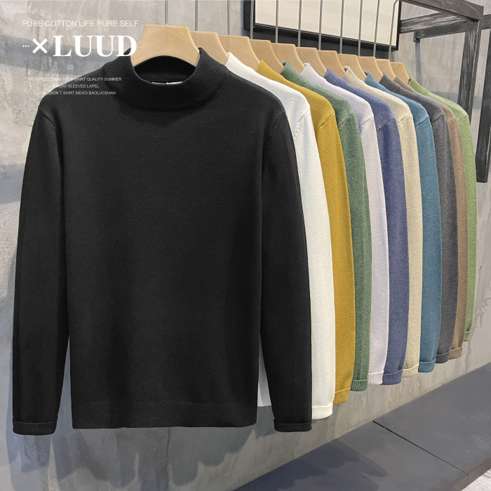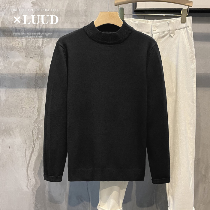 LUUD 冬季黑色半高小立領針織毛線衫韓版百搭修身打底內搭上衣男
