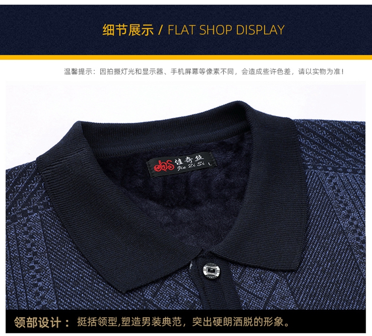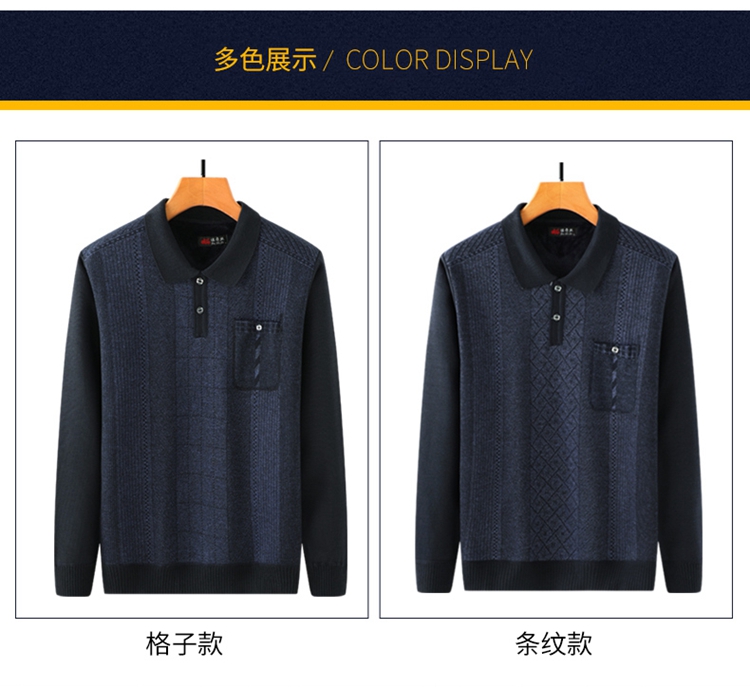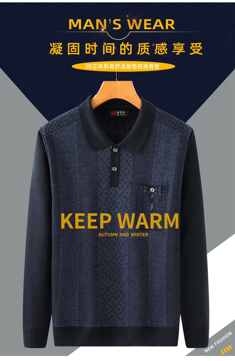 中年爸爸冬季加絨加厚款毛衣中老年男士上衣老人打底衫男裝秋冬裝