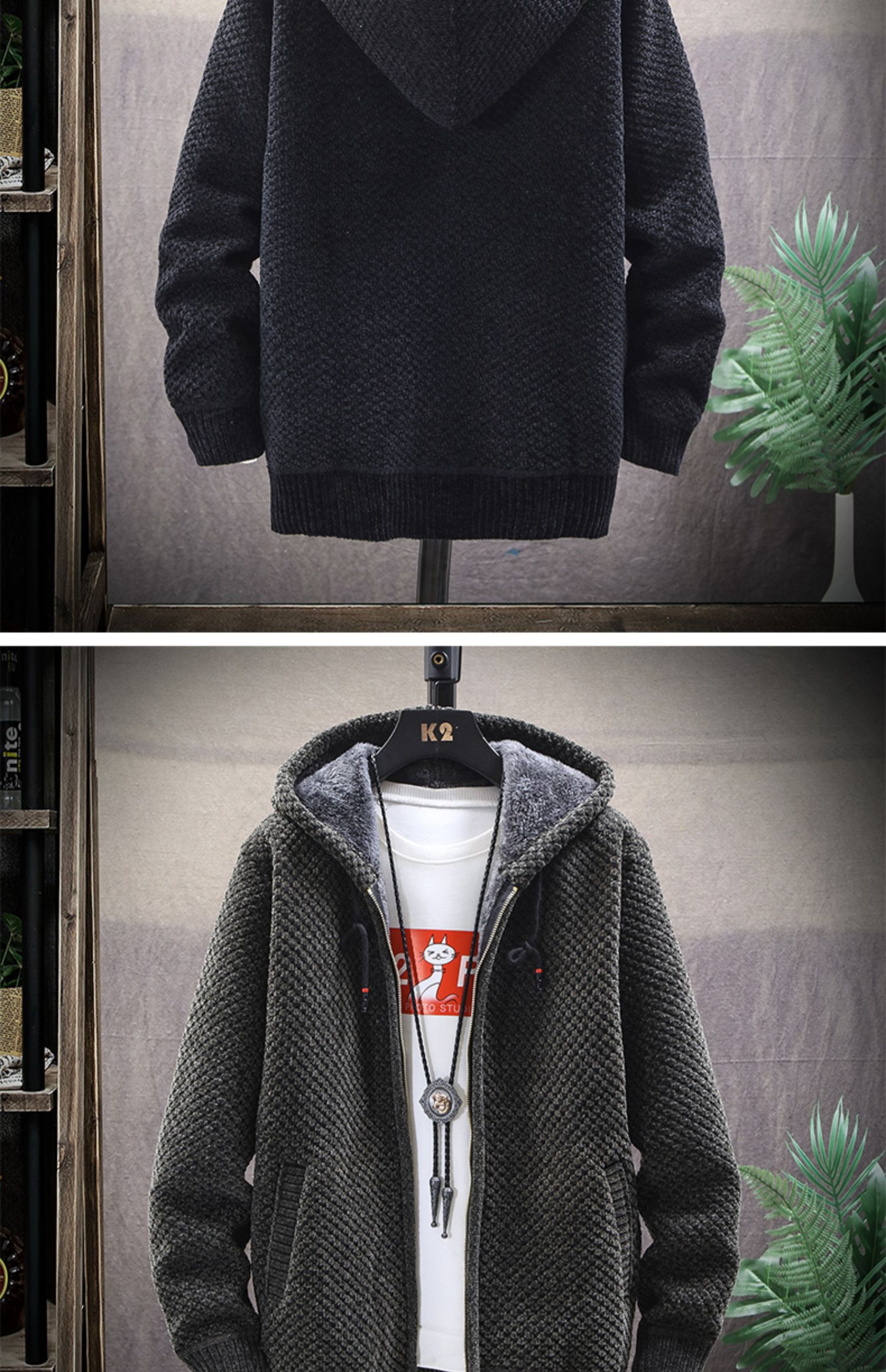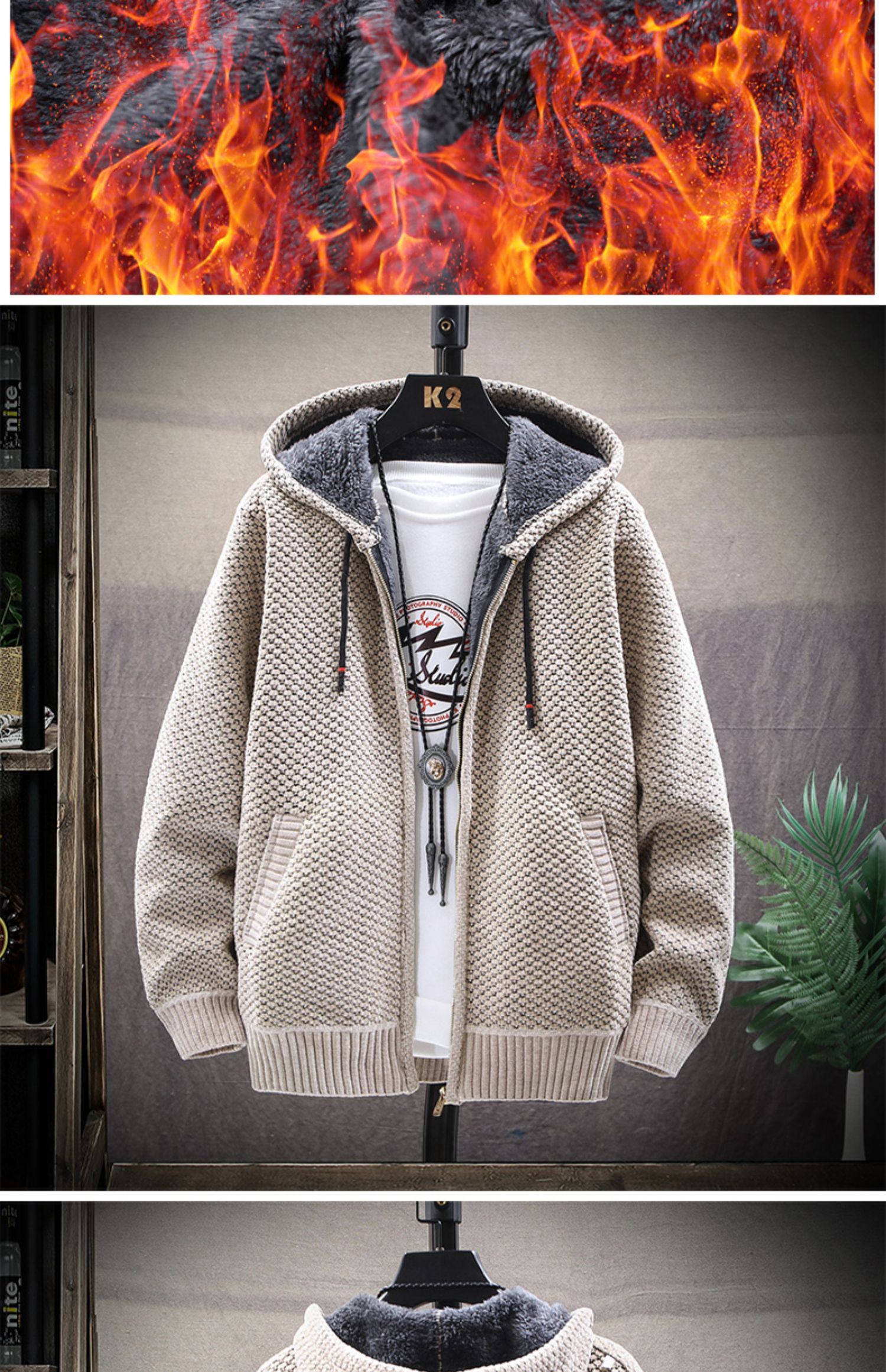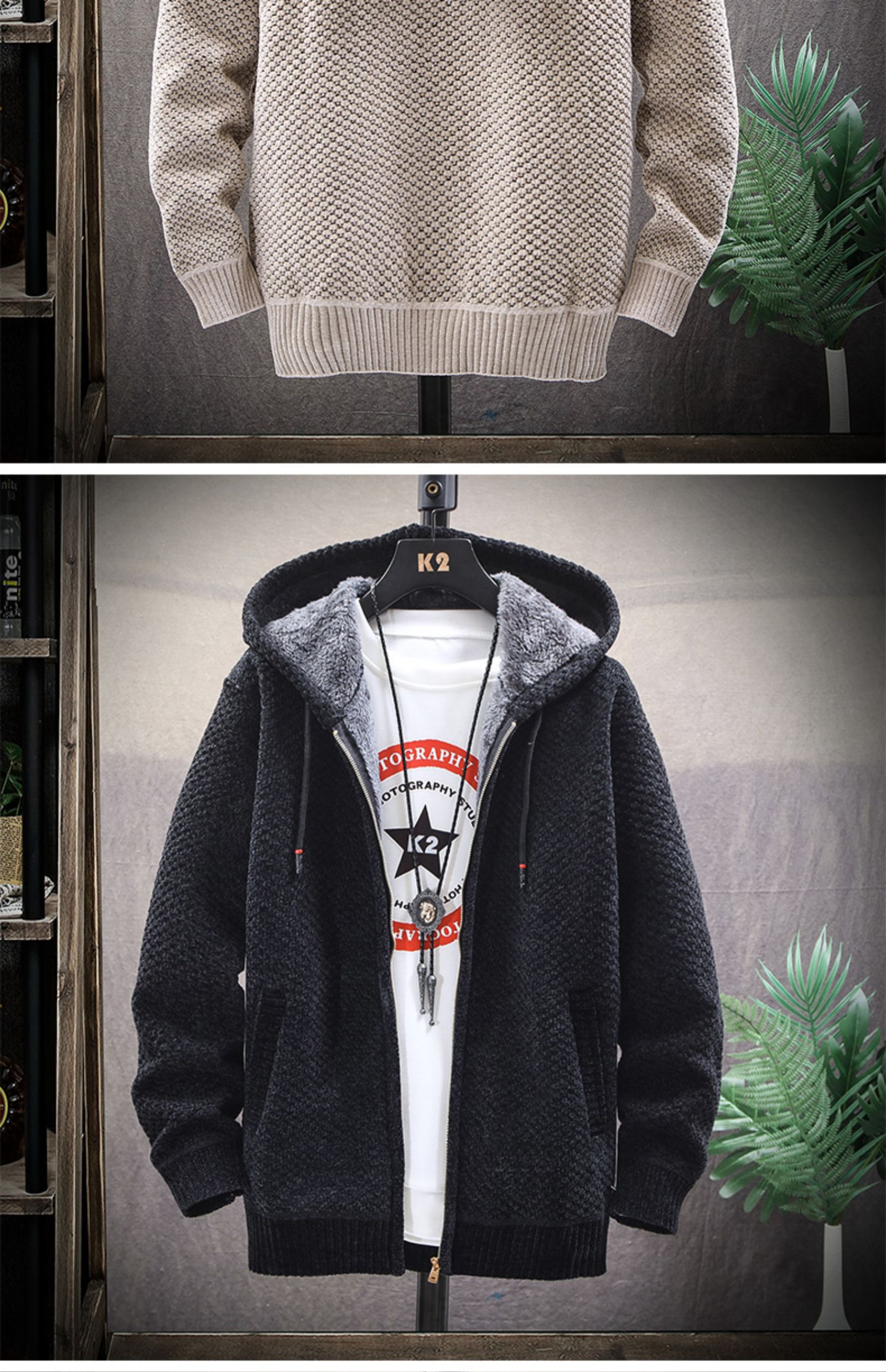 外套男士秋冬季保暖加絨加厚針織衫開衫毛衣潮流時尚線衫寬松大碼