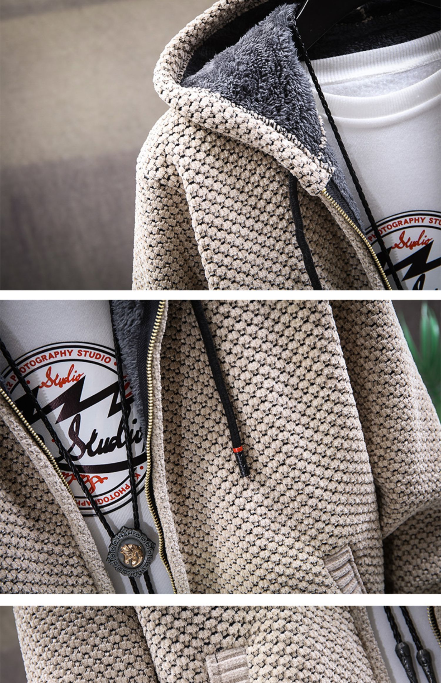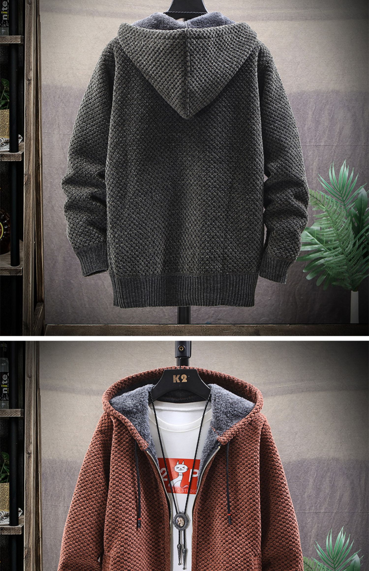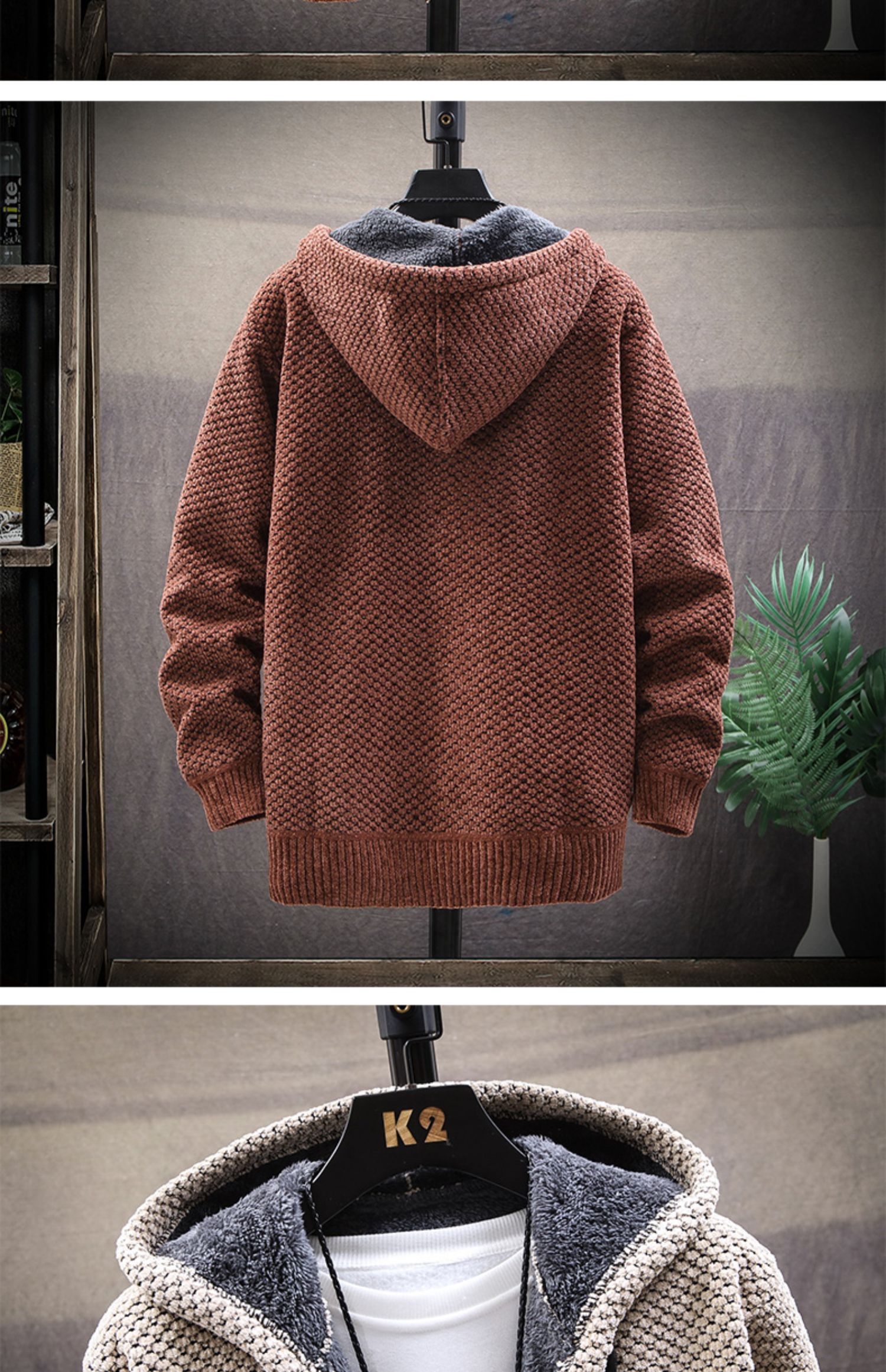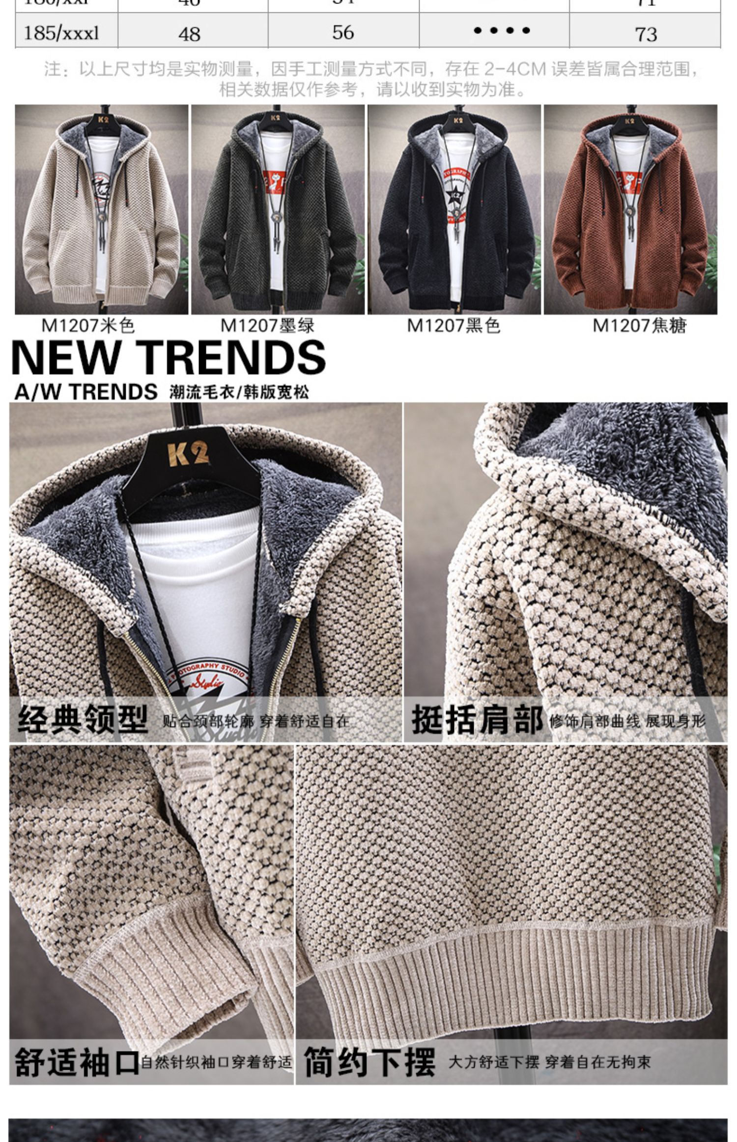 外套男士秋冬季保暖加絨加厚針織衫開衫毛衣潮流時尚線衫寬松大碼