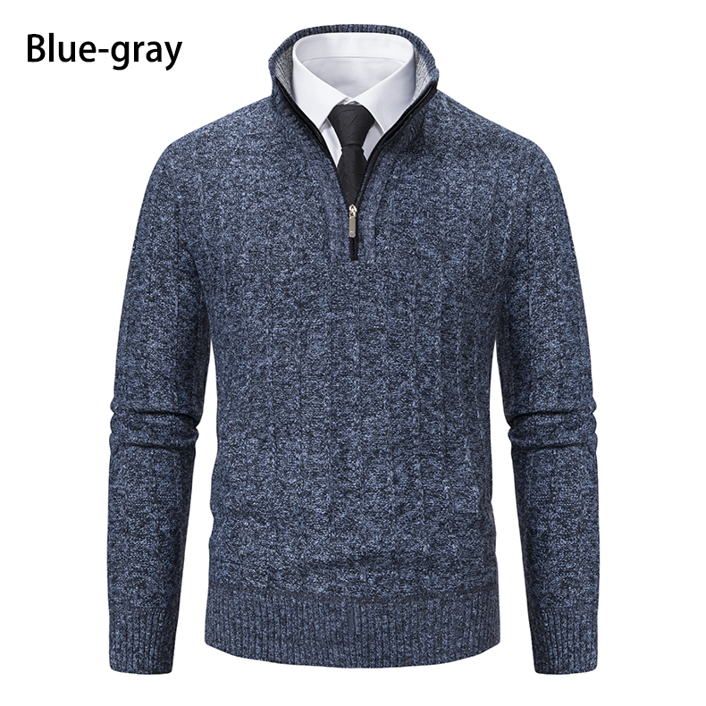 秋冬季男士立領純色針織上衣加絨加厚寬松毛衣時尚休閒百搭褂子男