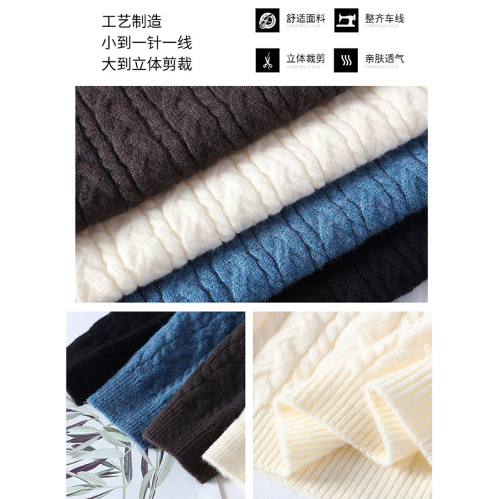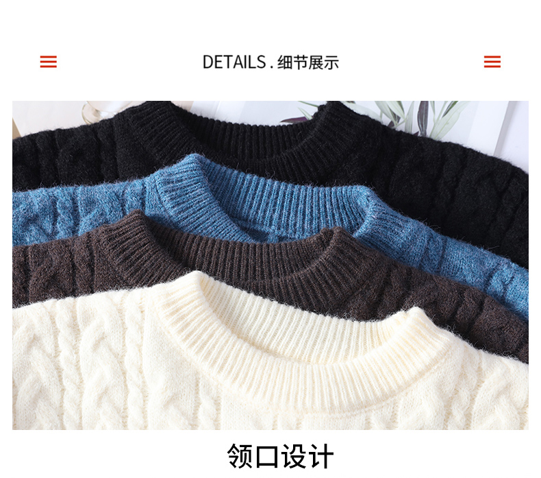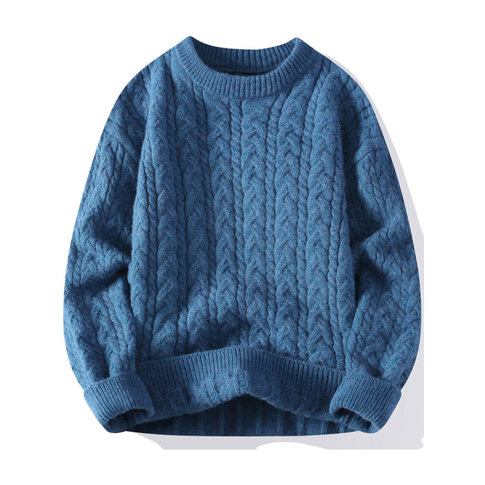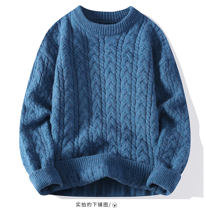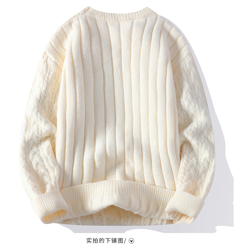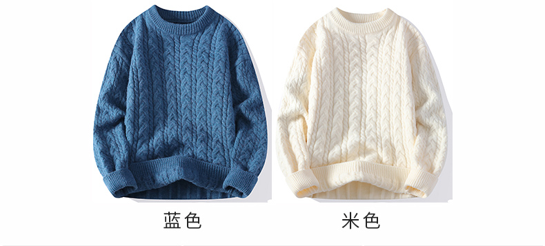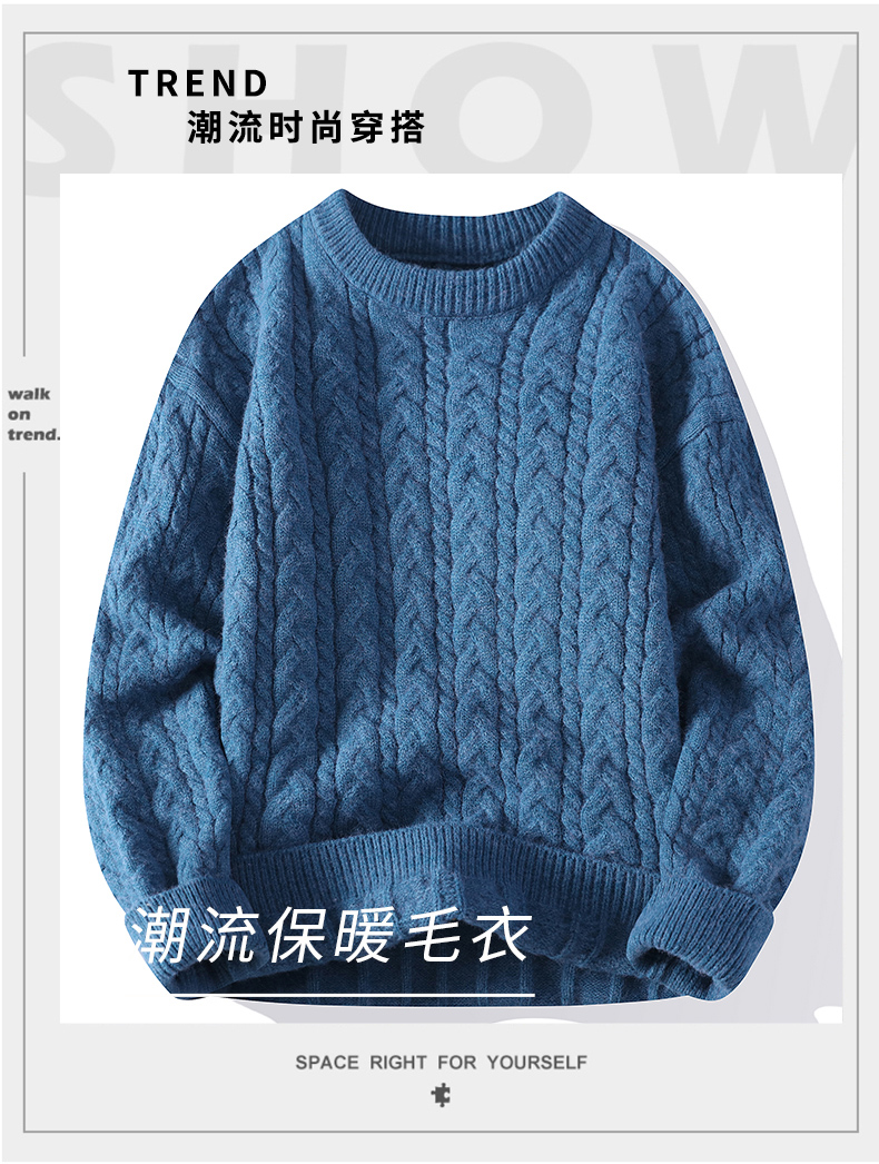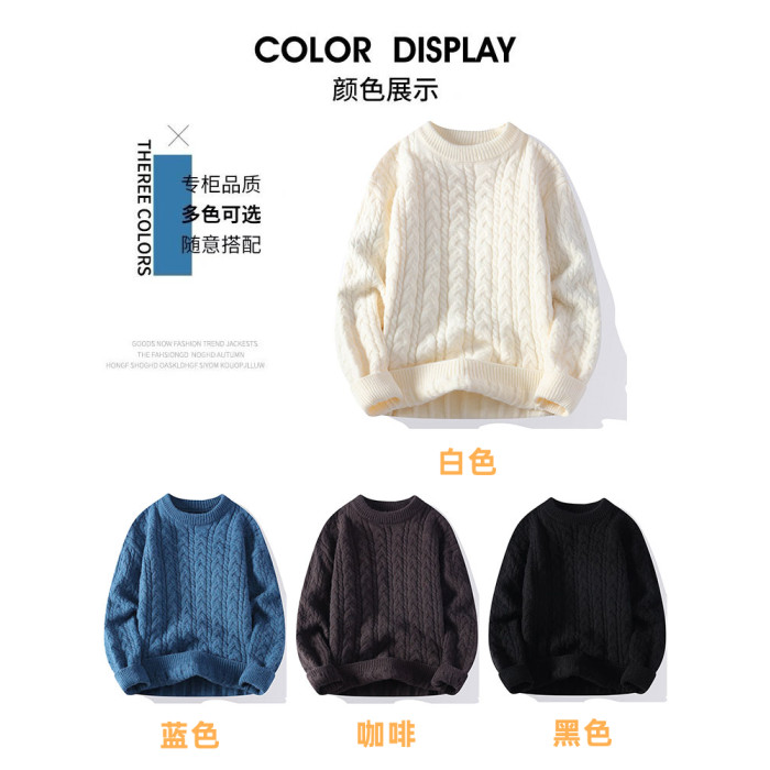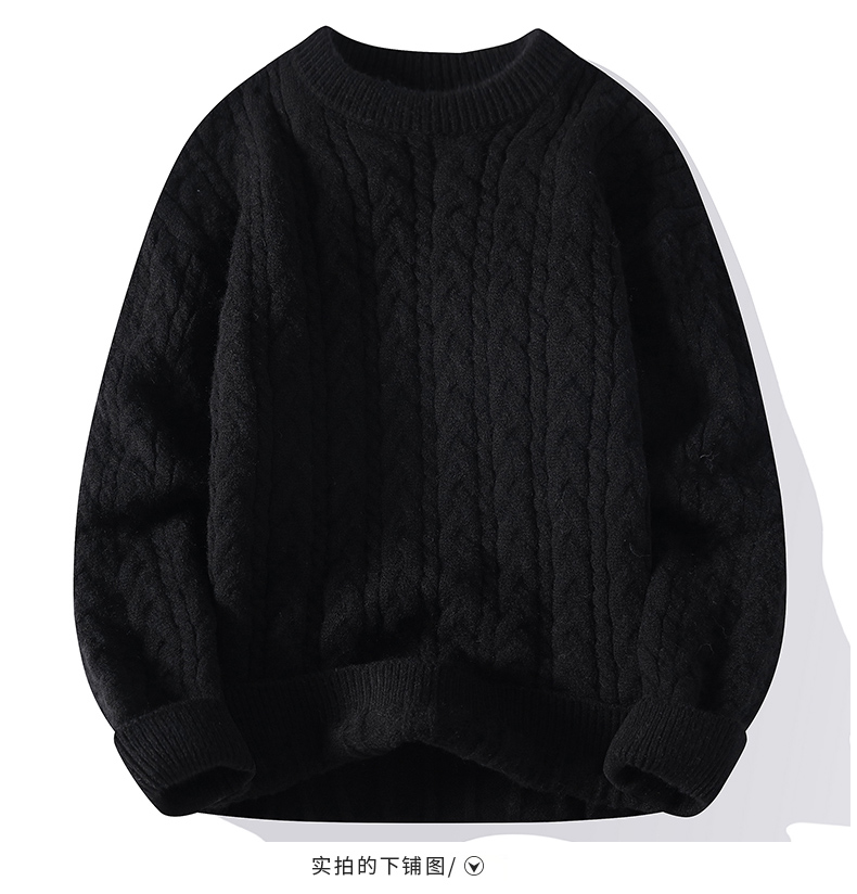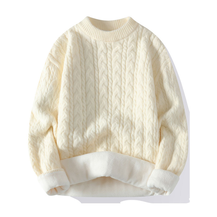 圓領毛衣男秋冬季加絨加厚內搭線衣女青少年慵懶風潮流打底針織衫
