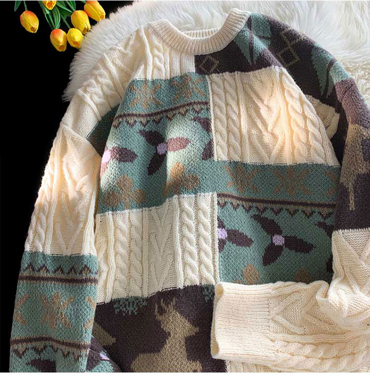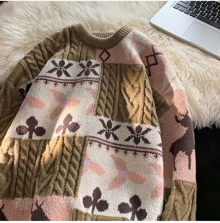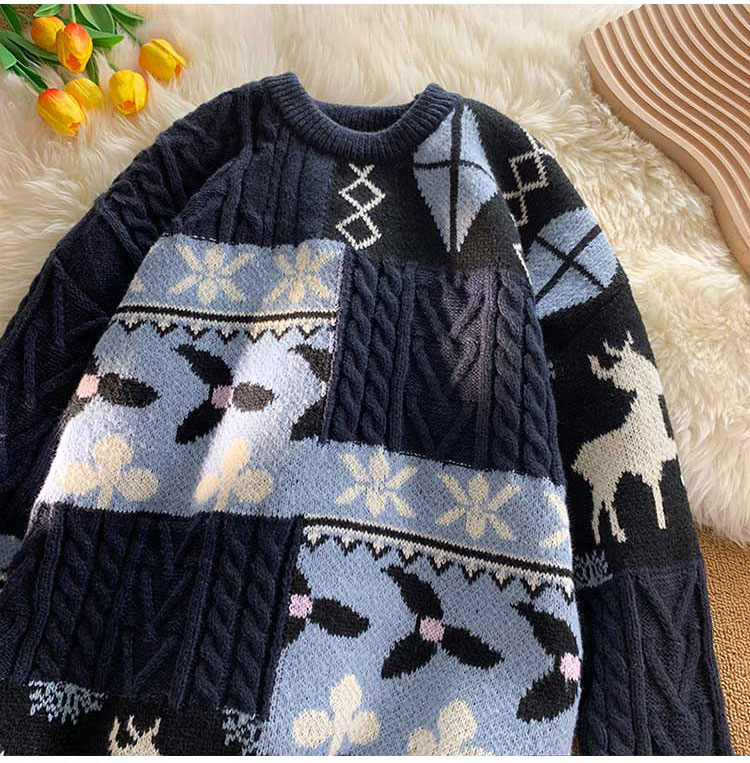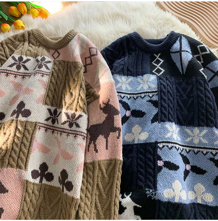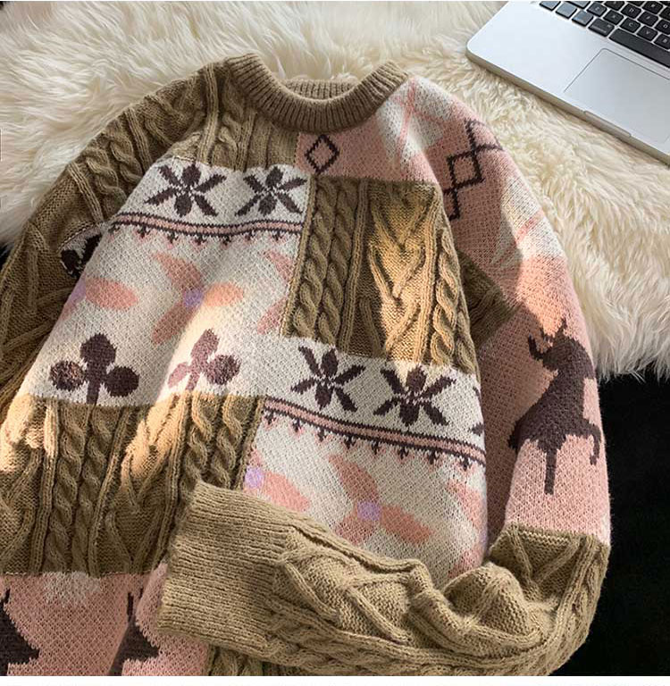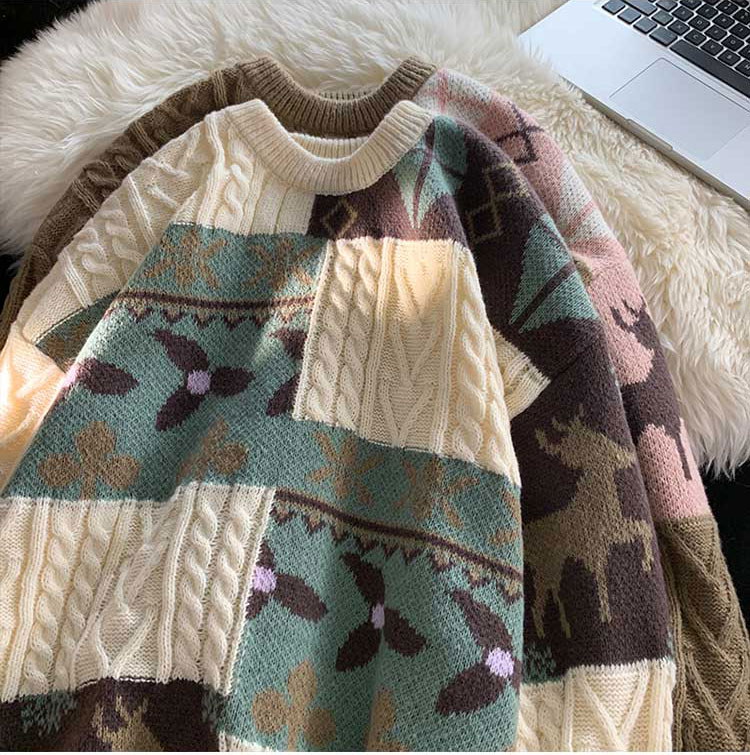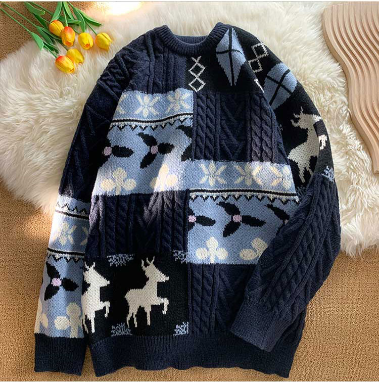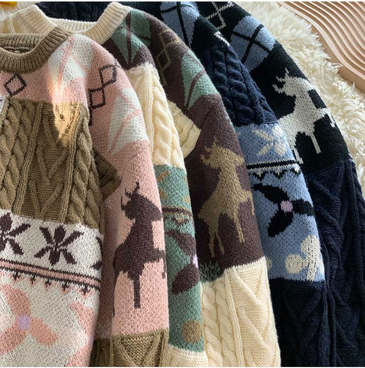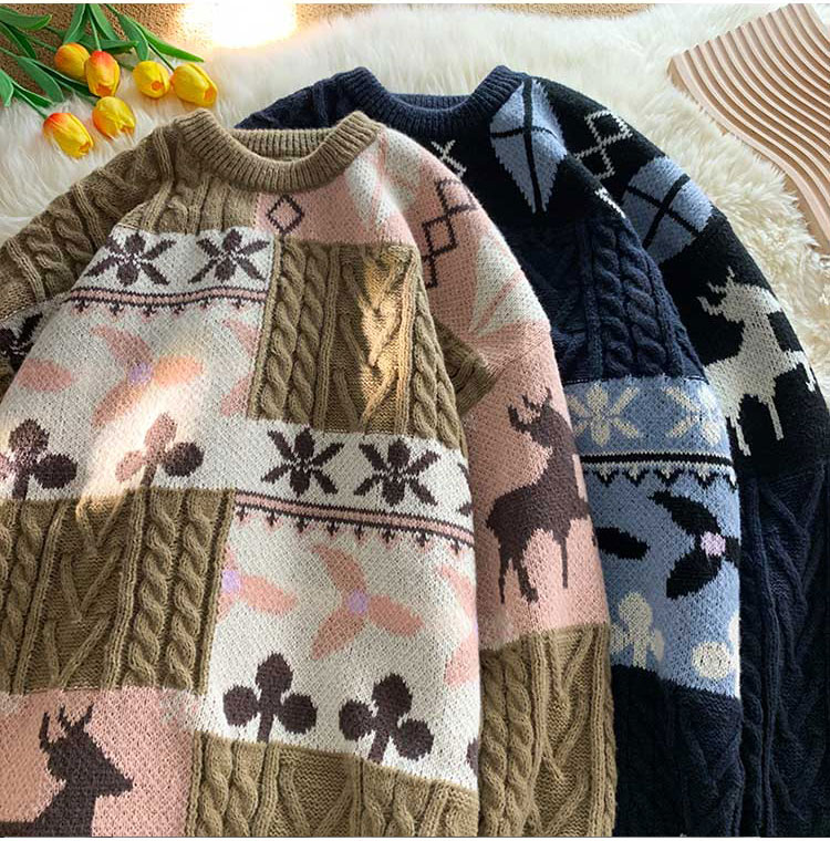 秋冬季聖誕節毛衣男圓領加絨休閒潮牌日系復古美式情侶百搭針織衫