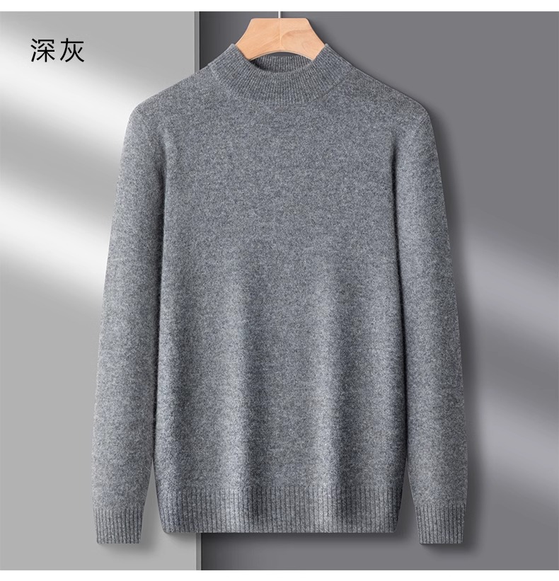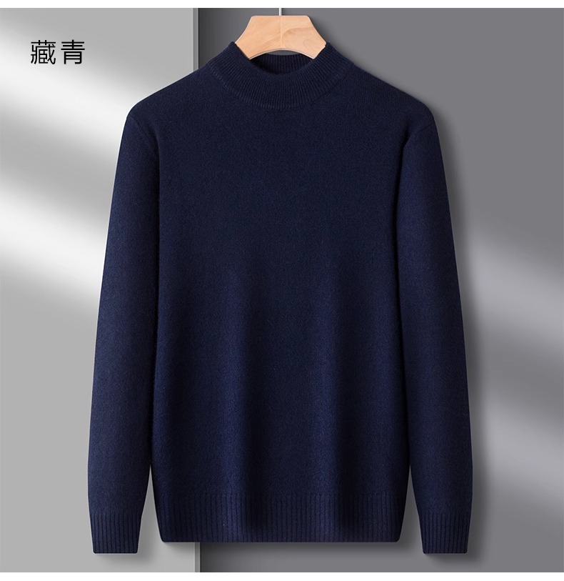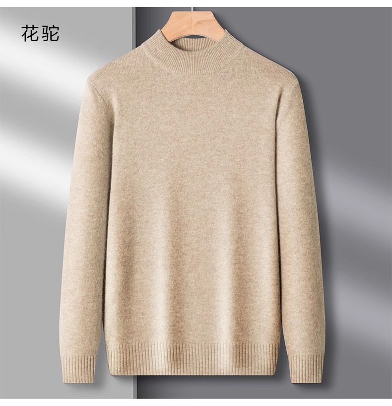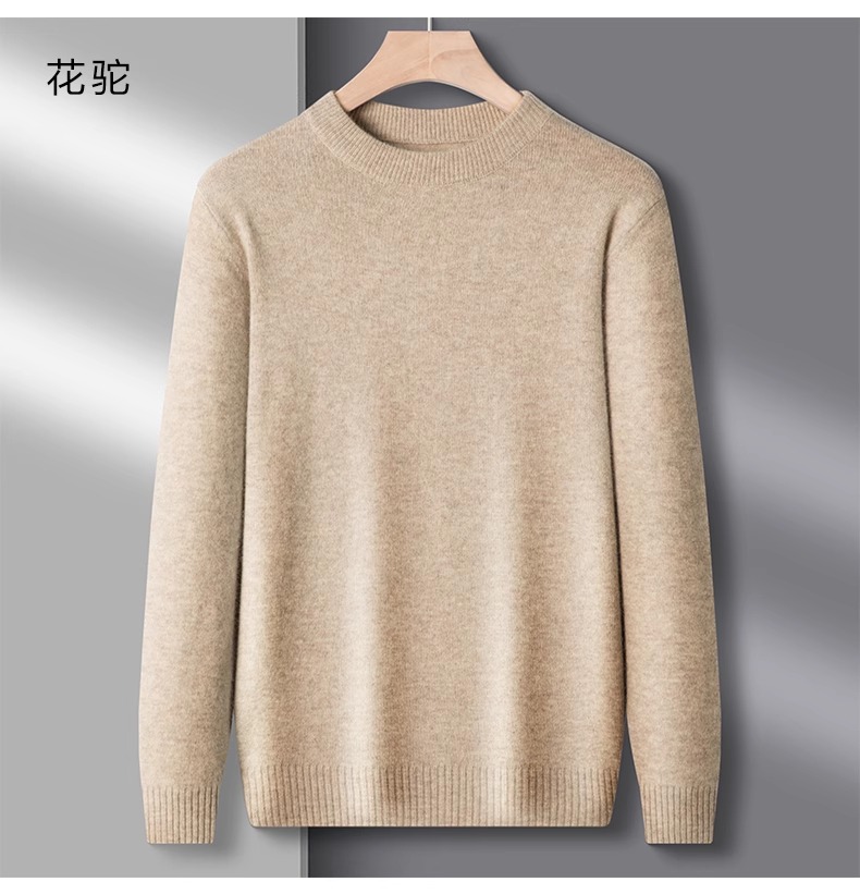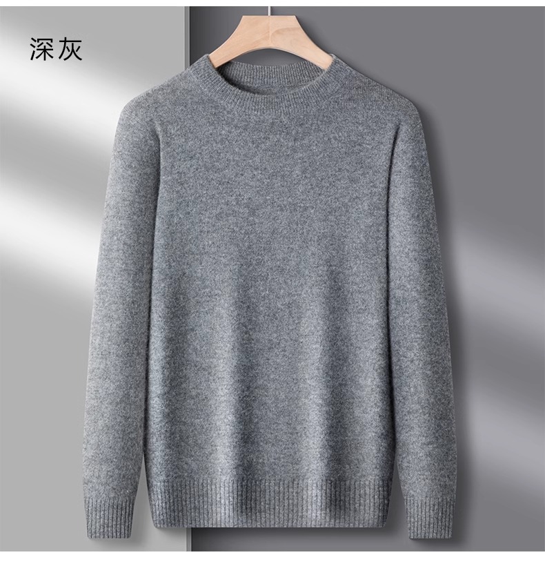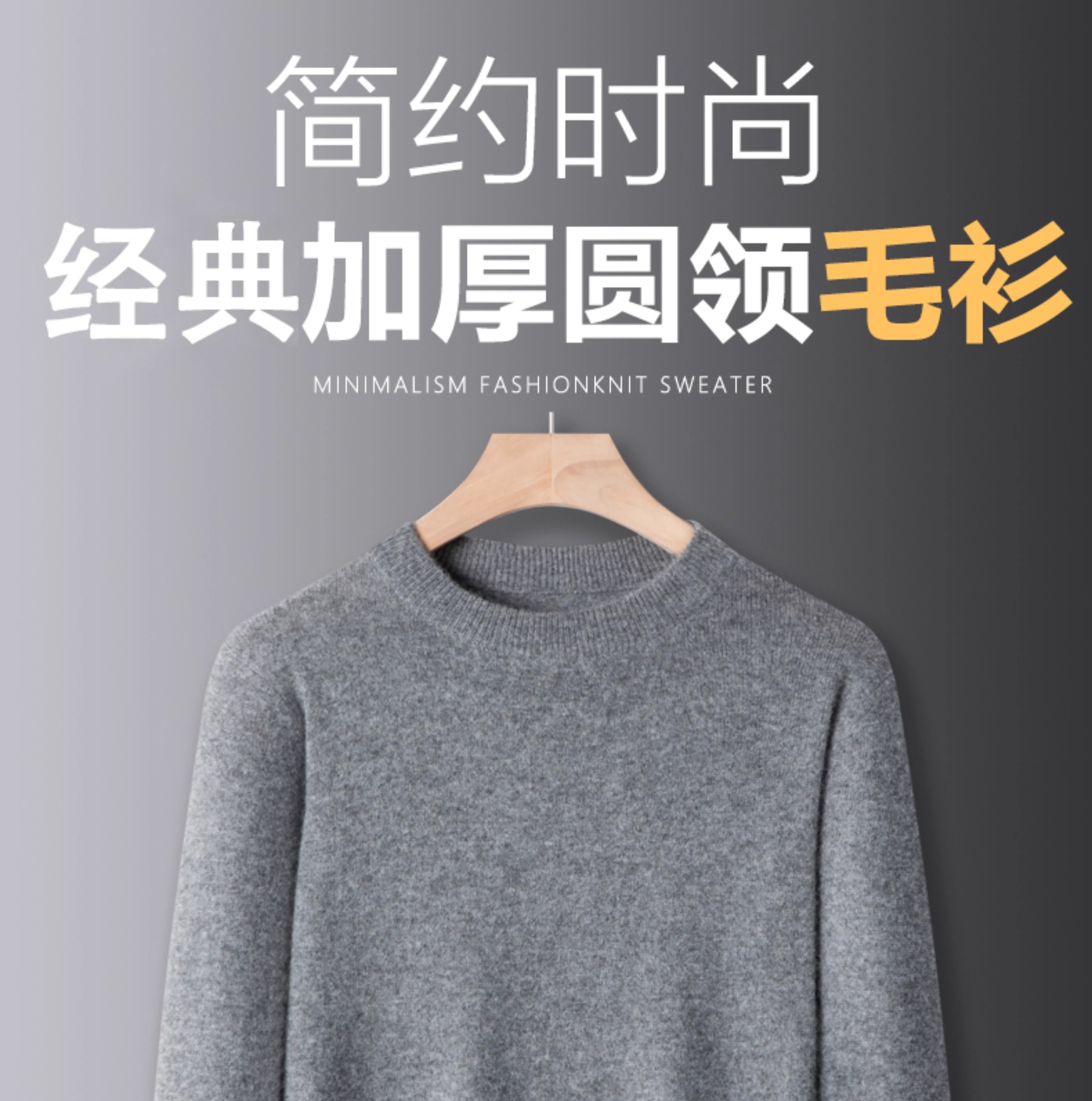 啄木鳥冬季羊毛衫男士圓領加厚毛衣加絨半高領針織衫中年羊絨線衫