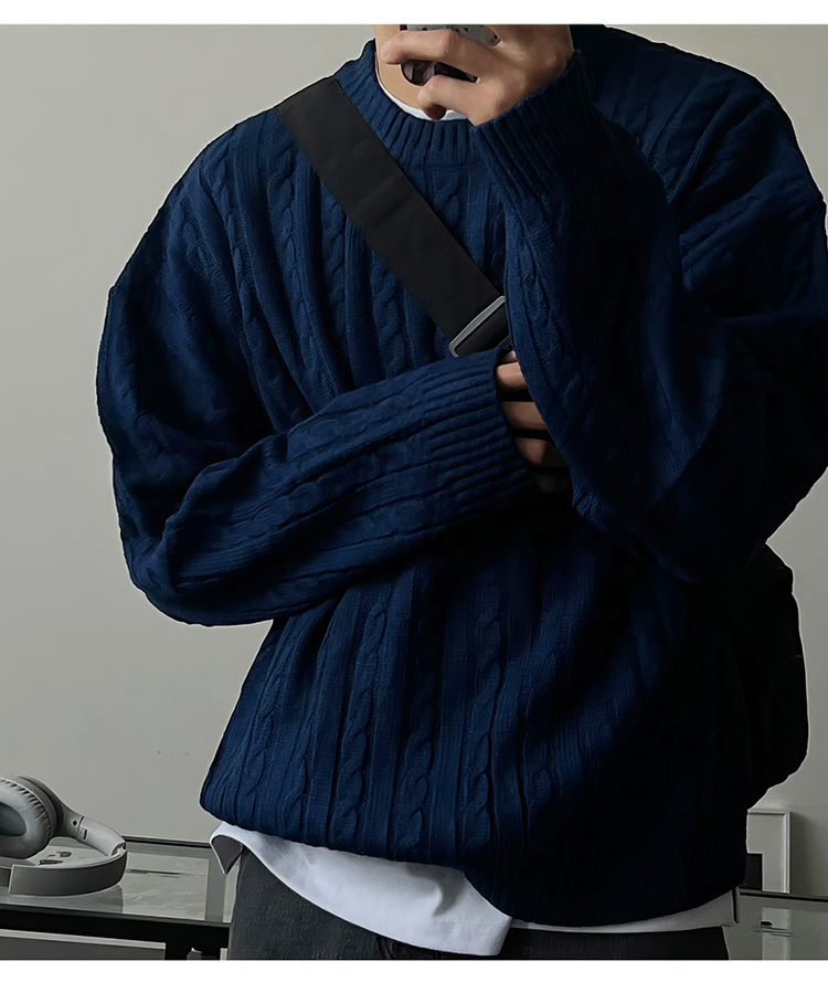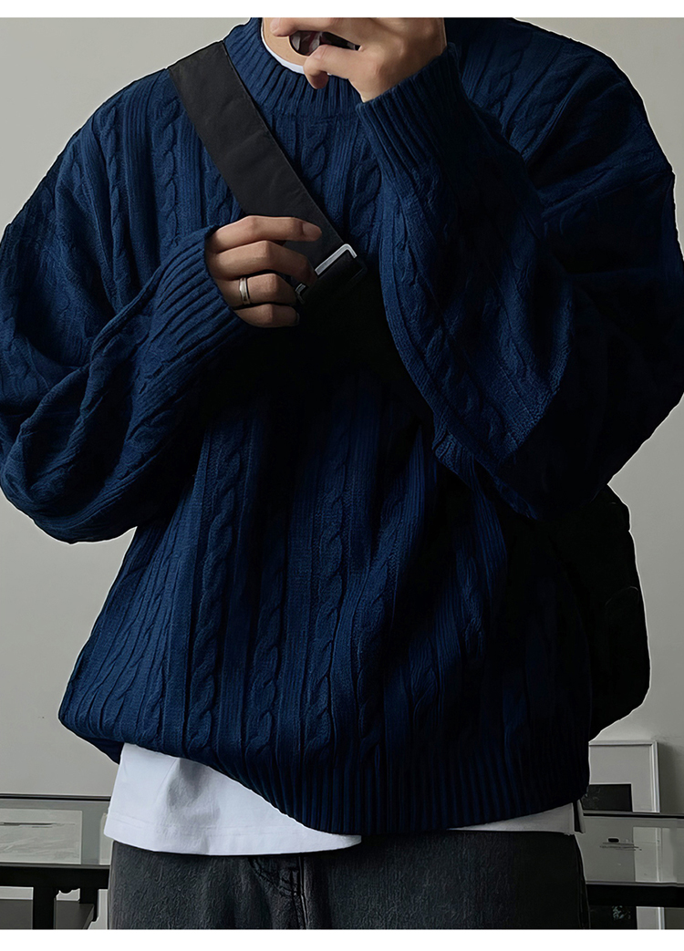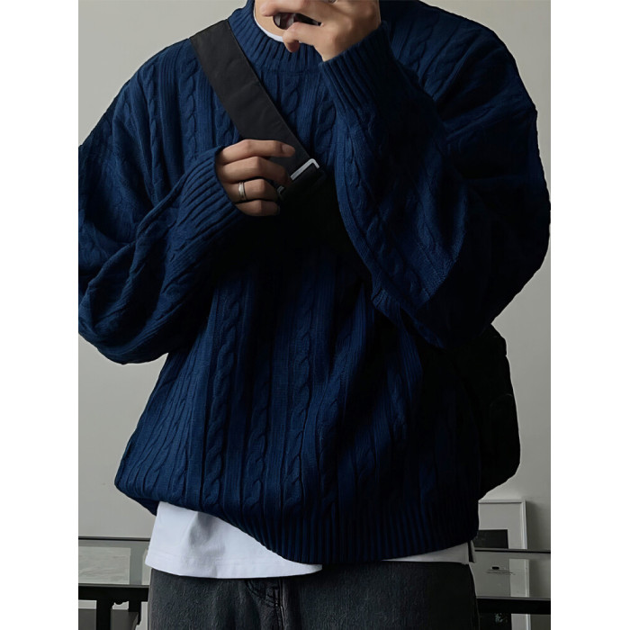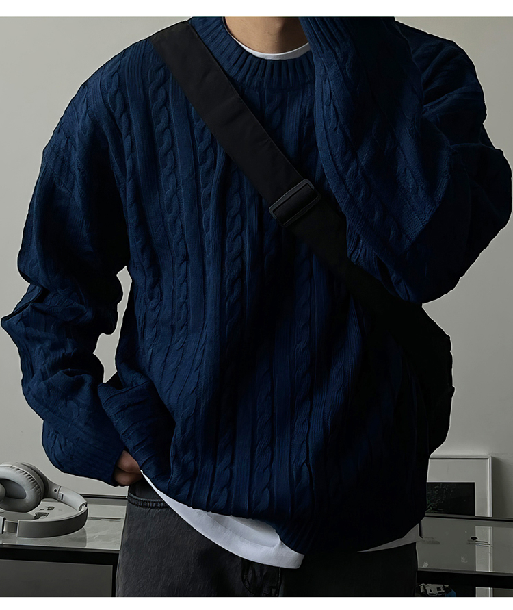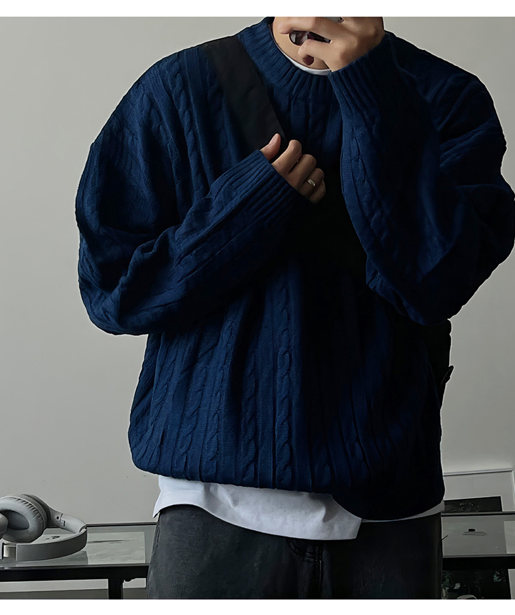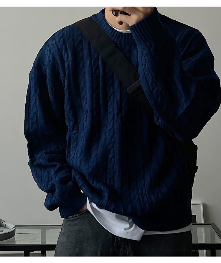 老錢風麻花紋毛衣男秋冬韓版寬松慵懶高級感加厚圓領毛衣休閒外套
