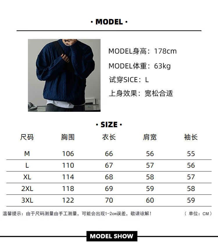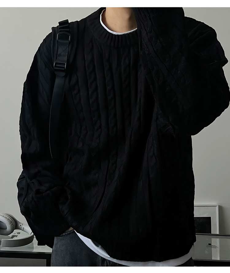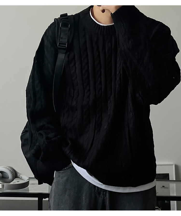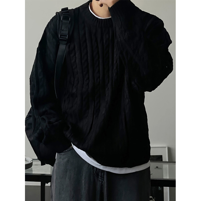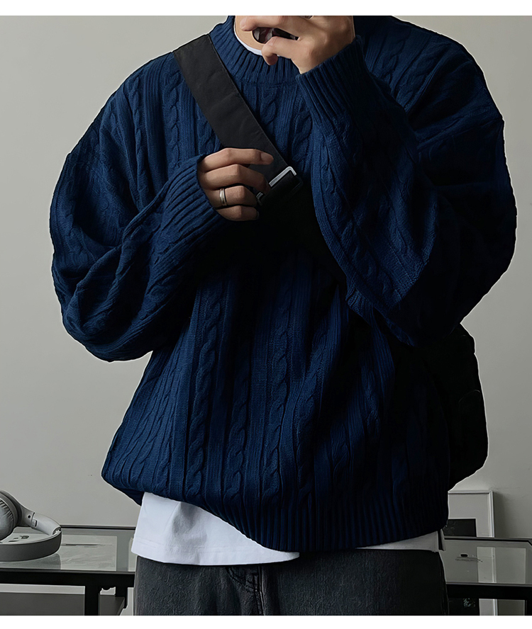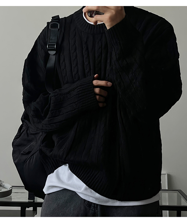 老錢風麻花紋毛衣男秋冬韓版寬松慵懶高級感加厚圓領毛衣休閒外套