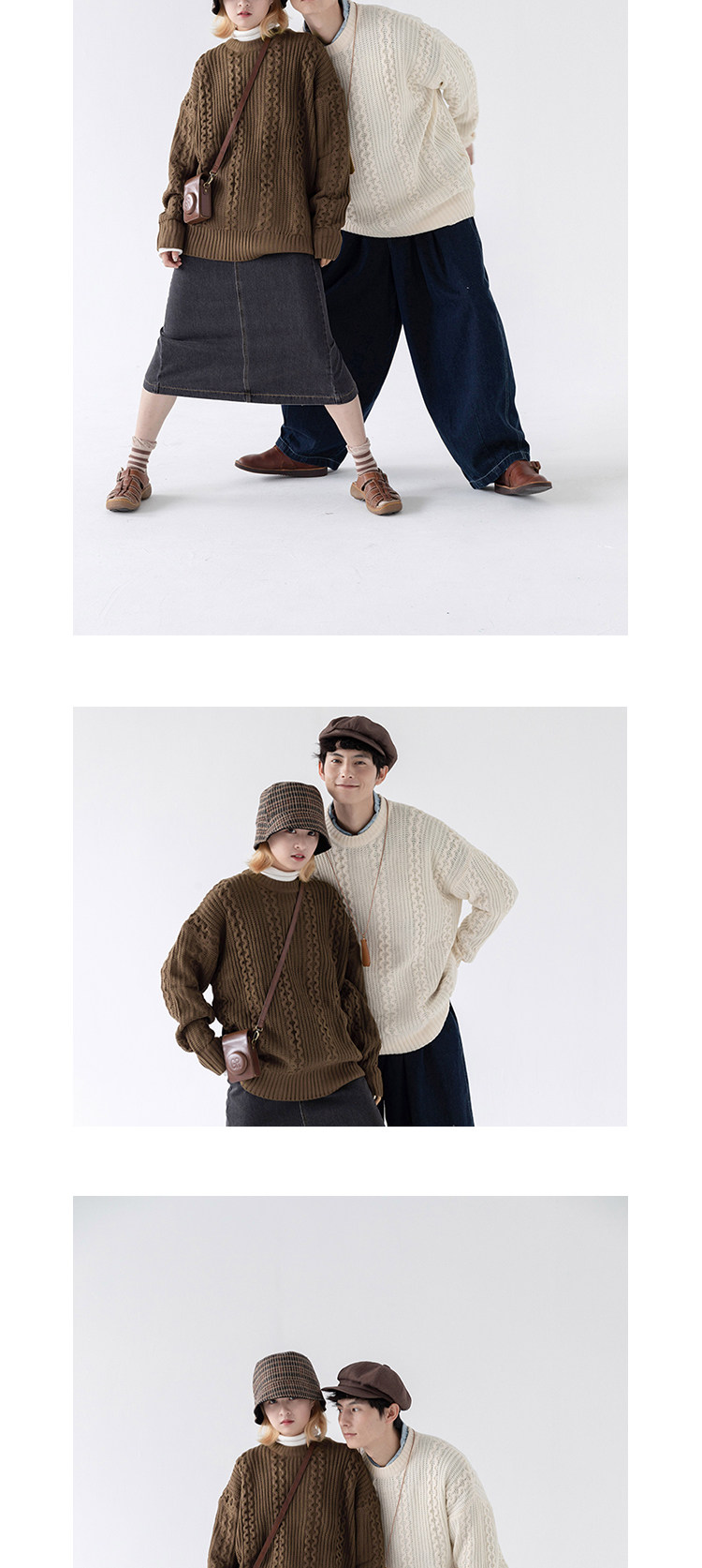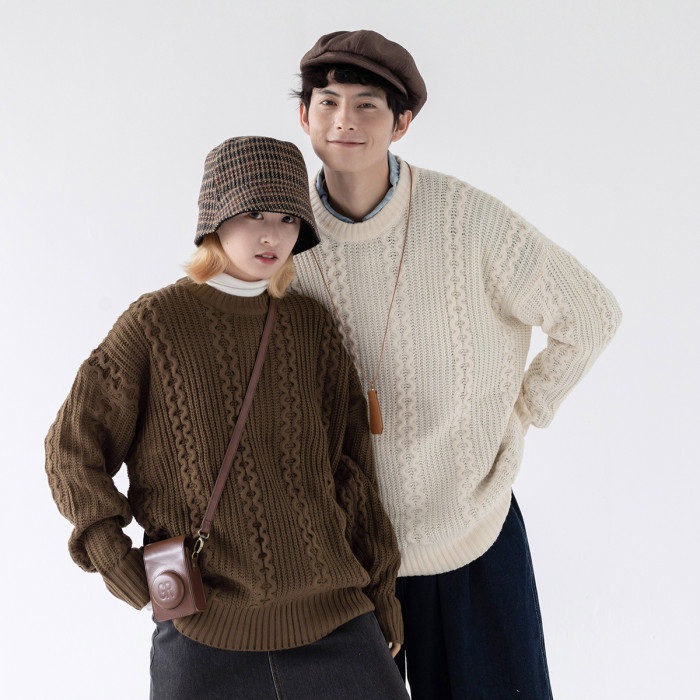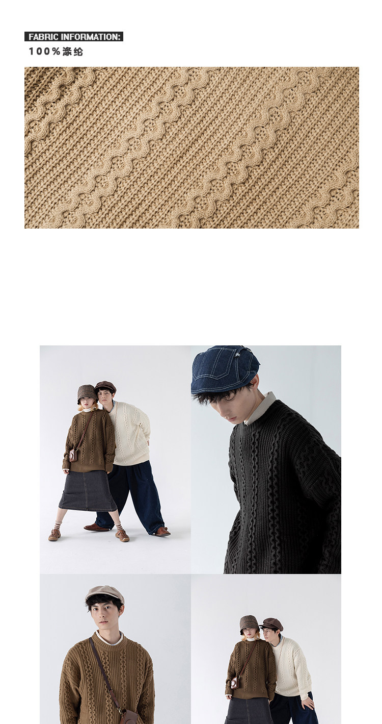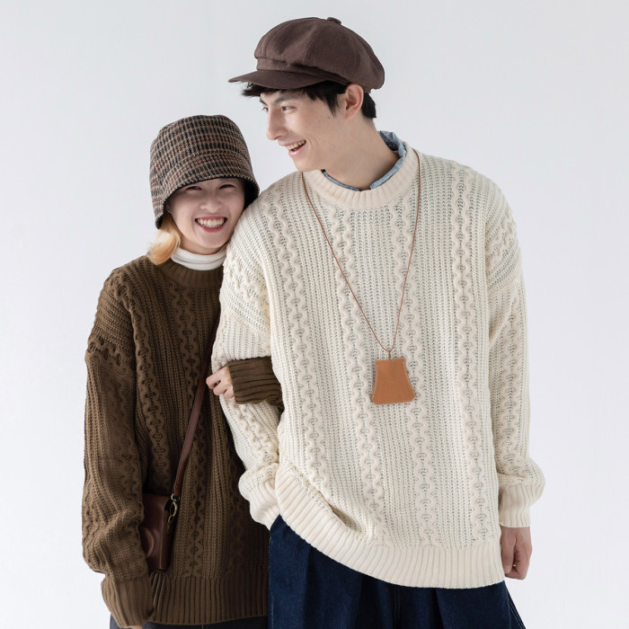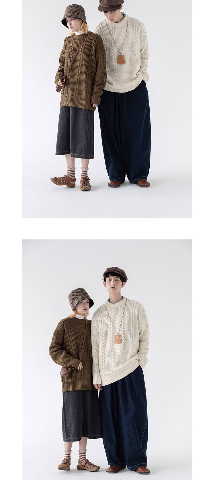 矇馬特先生 水瓶座秋冬大地色系毛衣 純色基礎款麻花寬鬆百搭針織