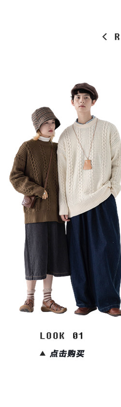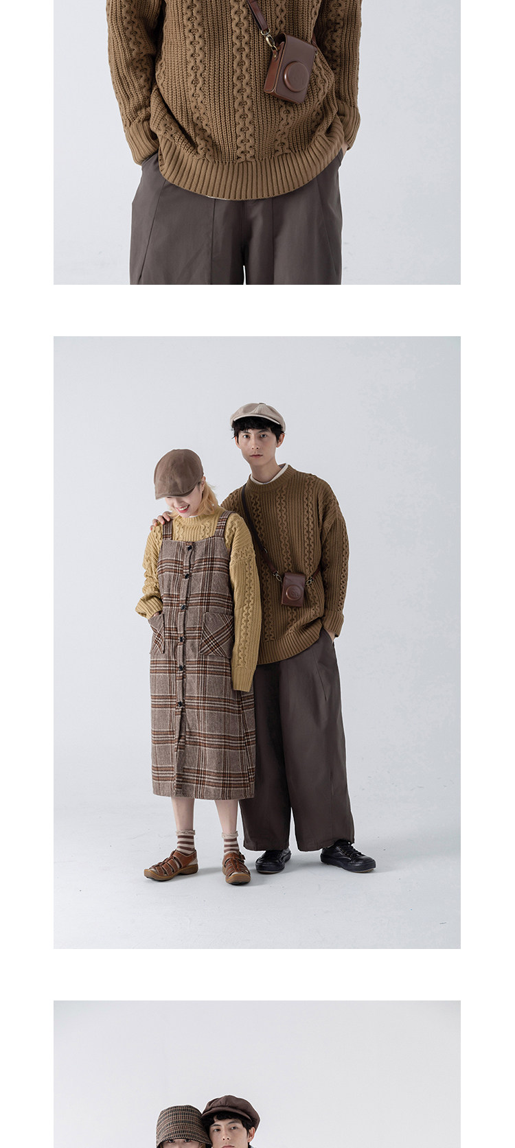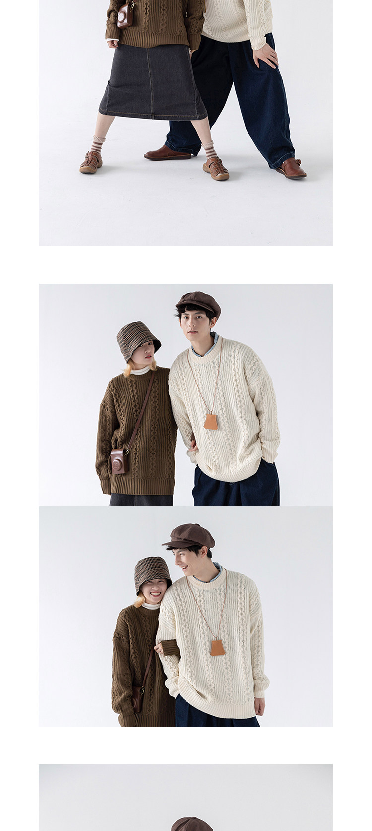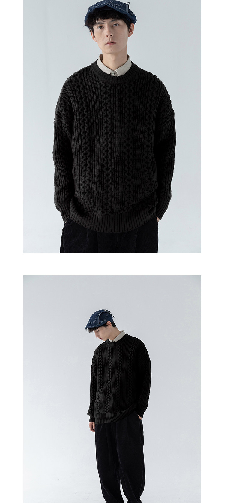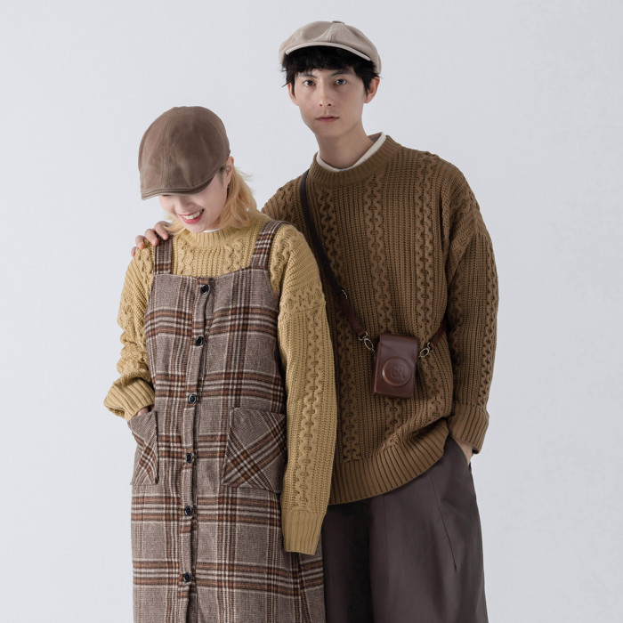 矇馬特先生 水瓶座秋冬大地色系毛衣 純色基礎款麻花寬鬆百搭針織