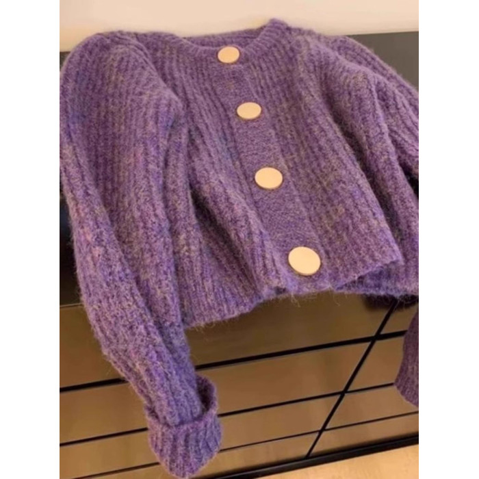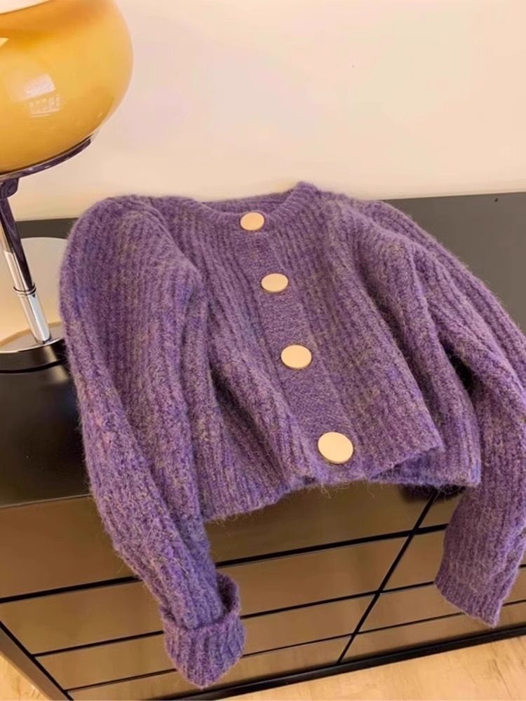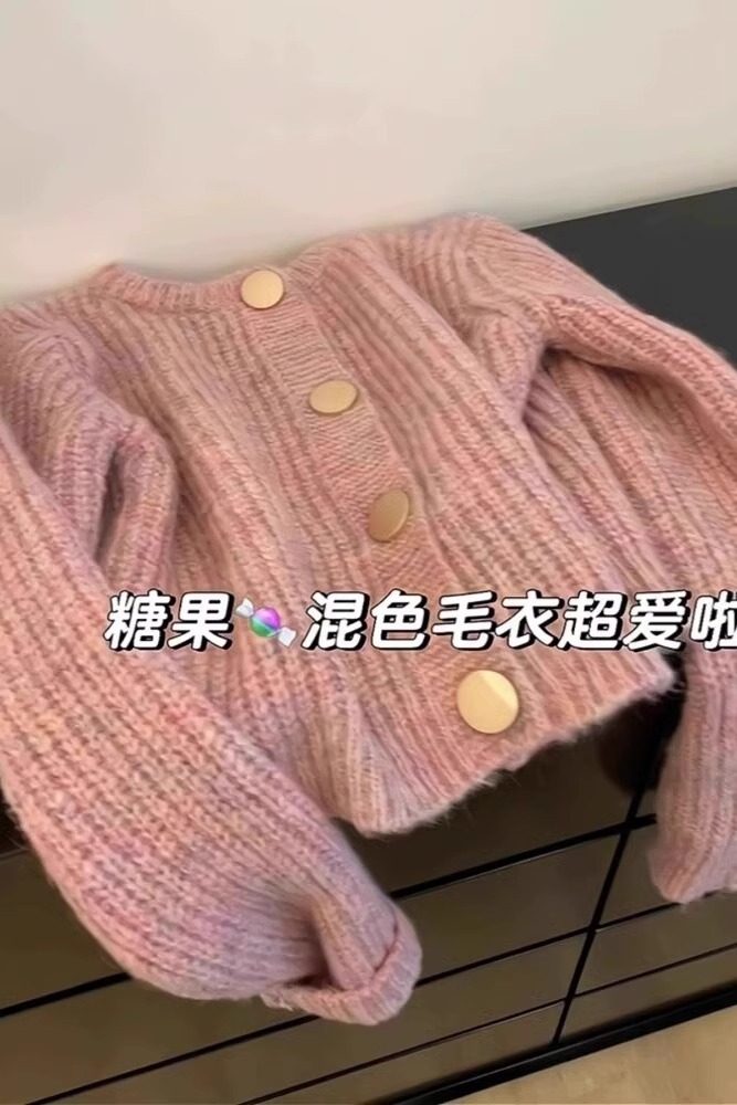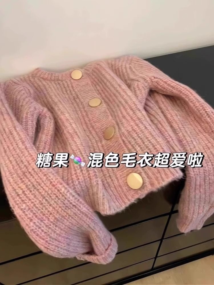 粉色小香風馬海毛毛衣外套女秋冬高級感軟糯慵嬾風針織開衫上衣厚