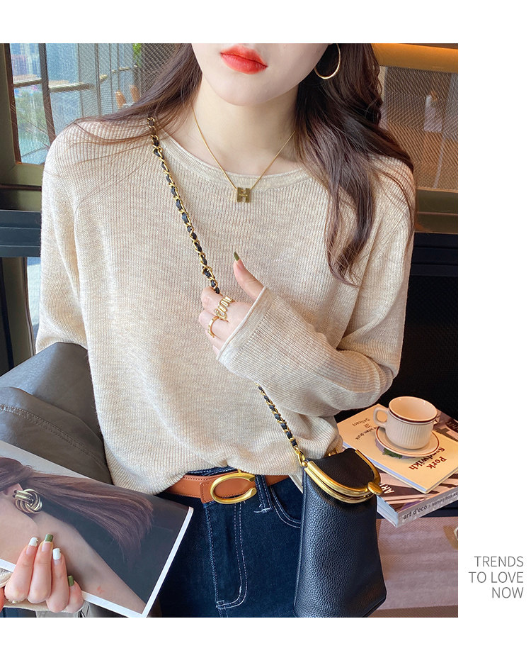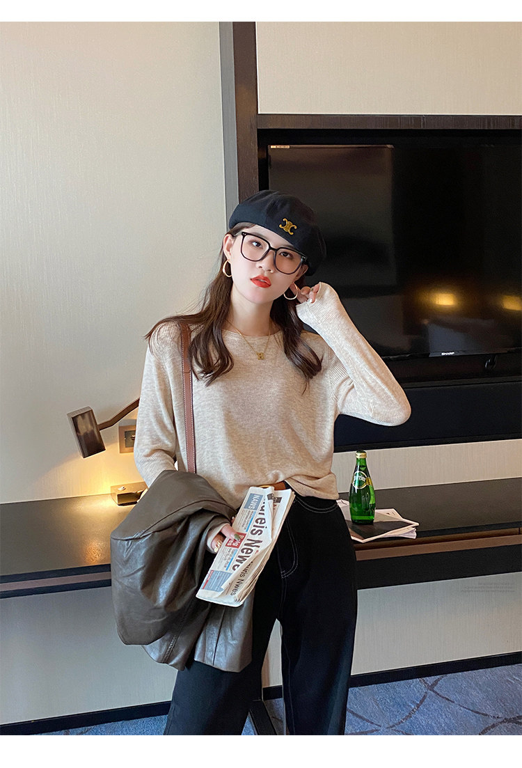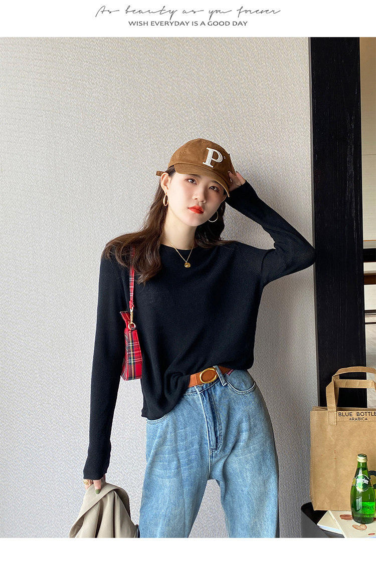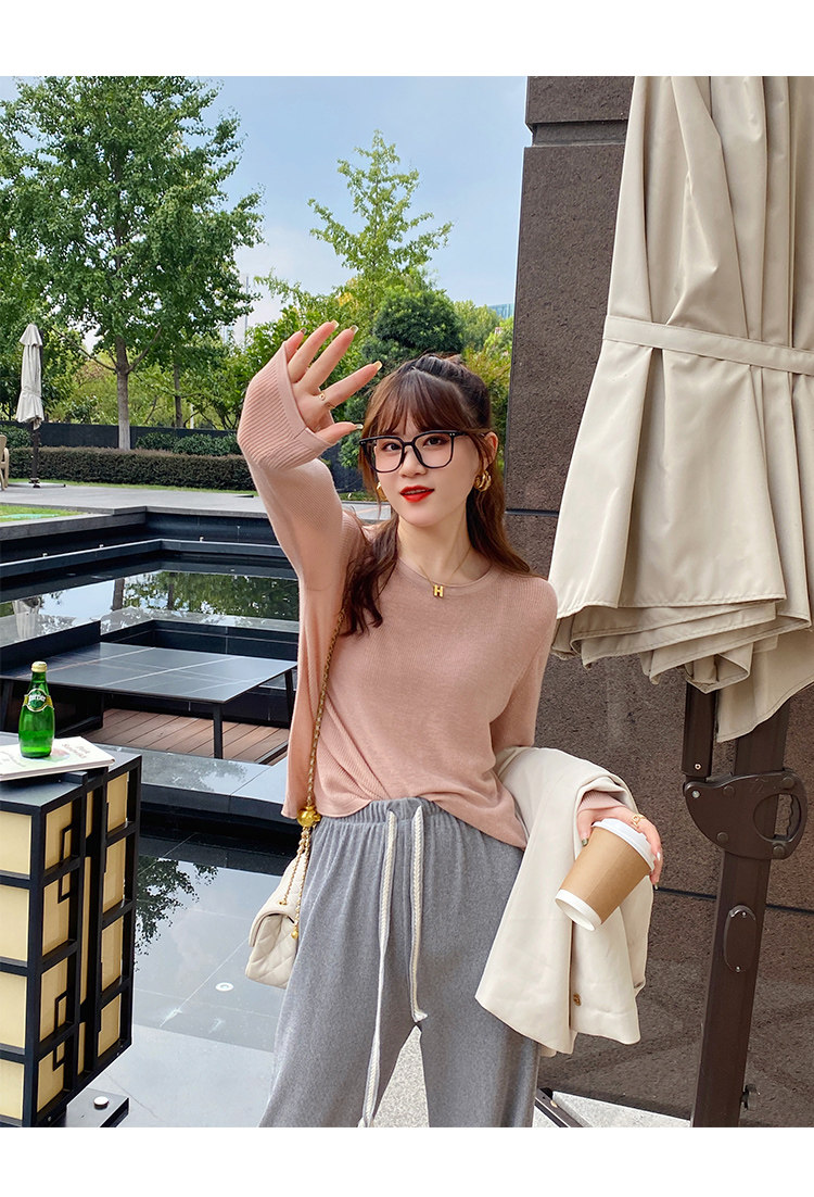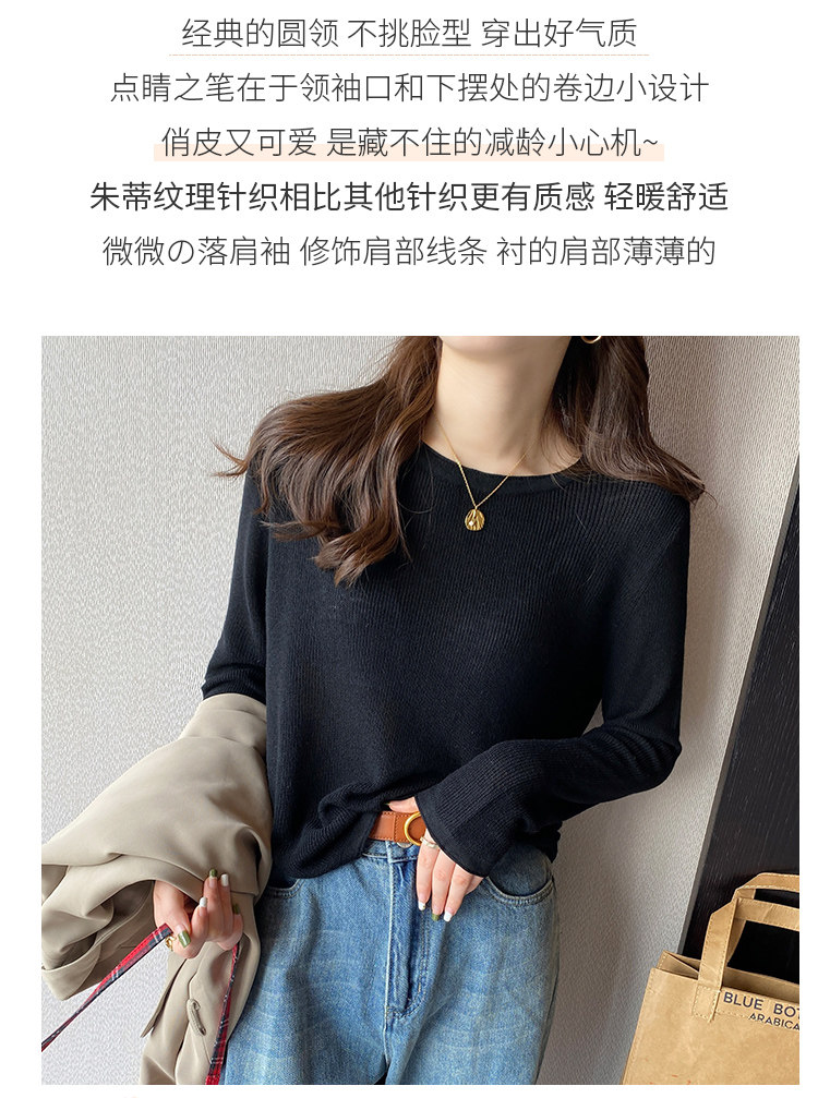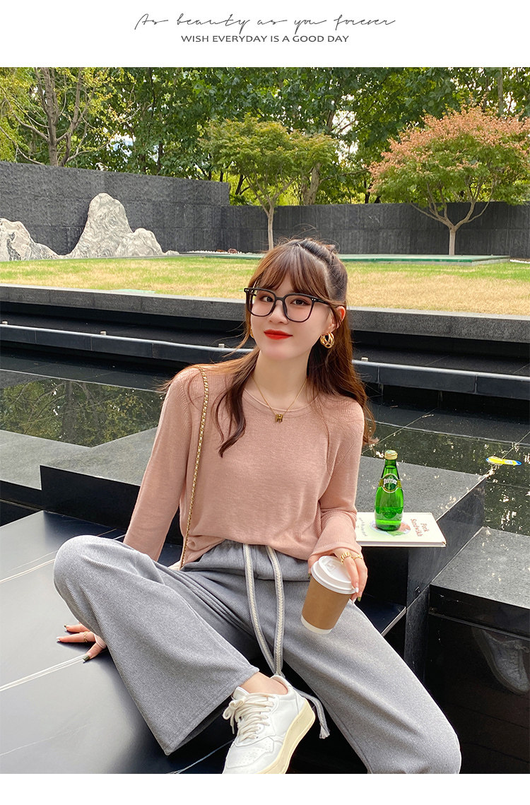 粉色針織打底衫女春秋2026新款時尚百搭顯瘦洋氣內搭長袖圓領上衣