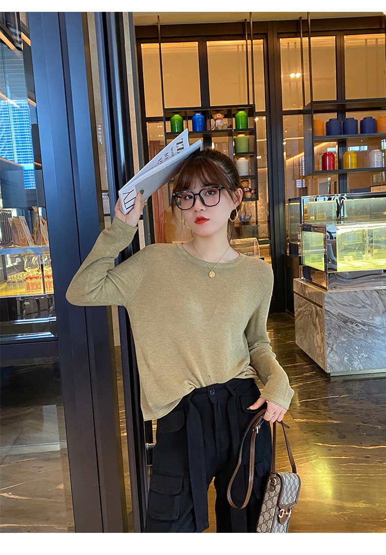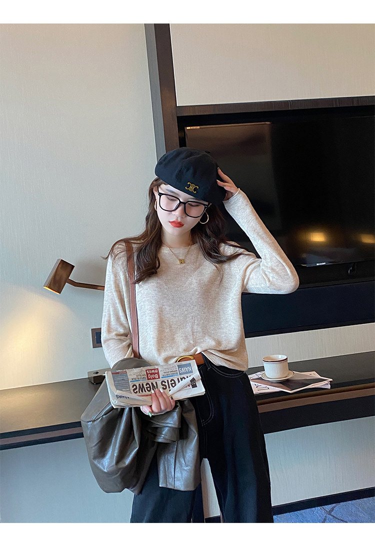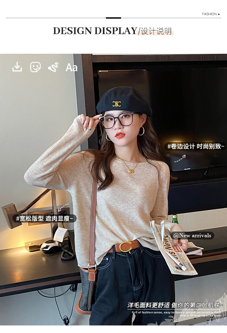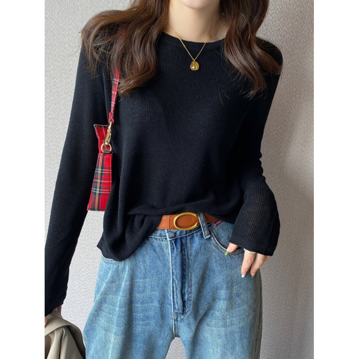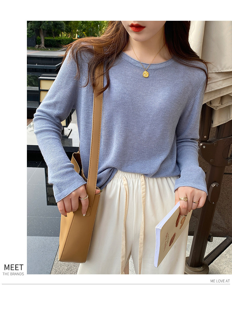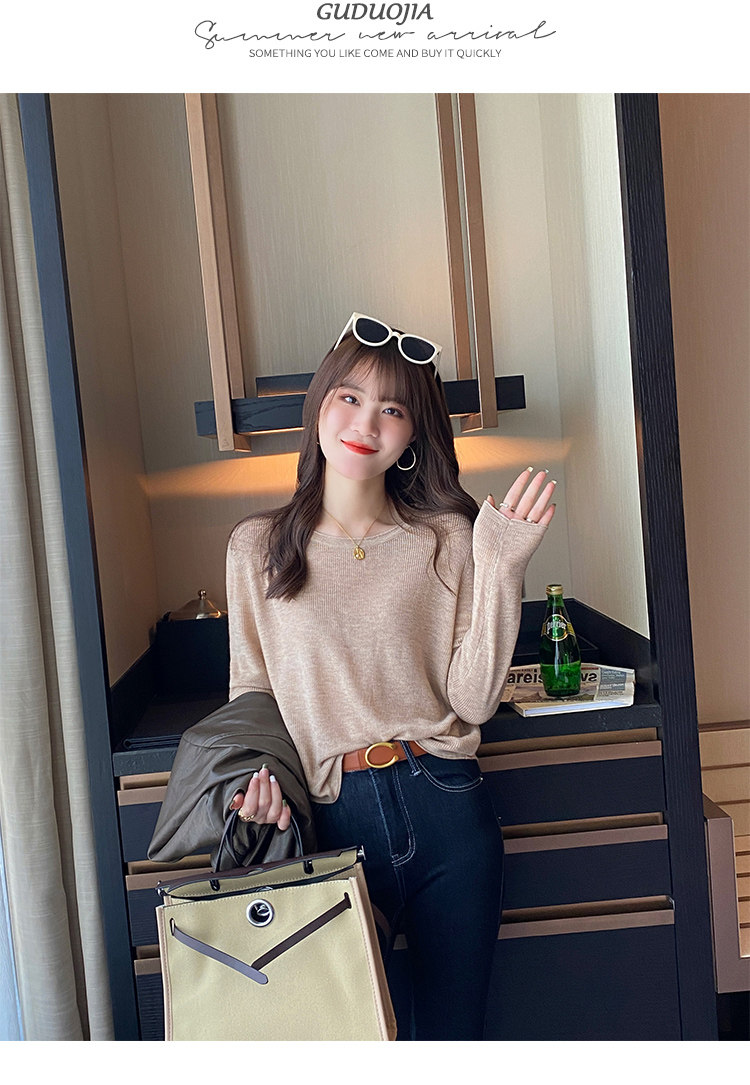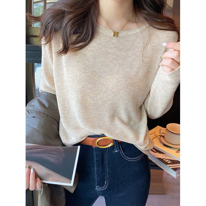 粉色針織打底衫女春秋2026新款時尚百搭顯瘦洋氣內搭長袖圓領上衣