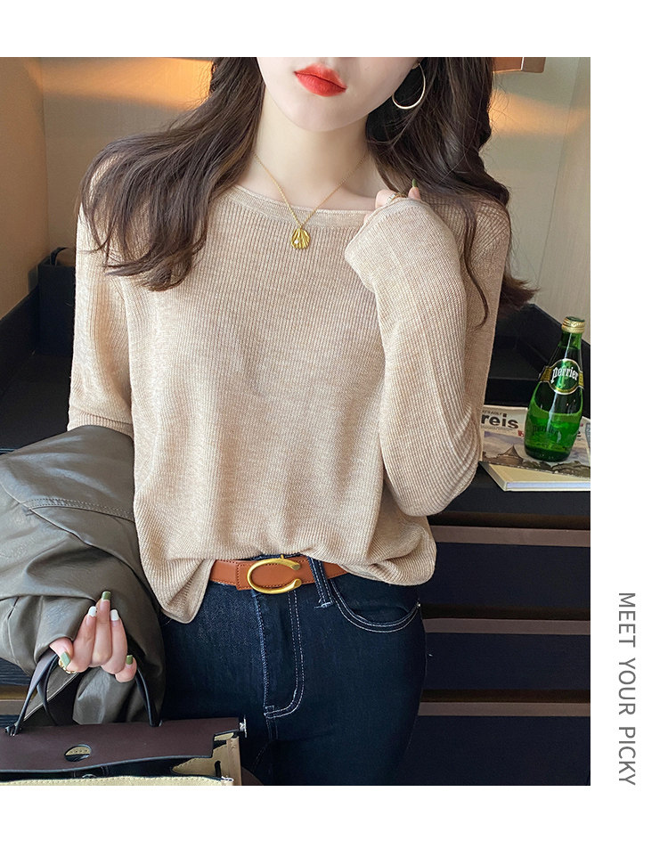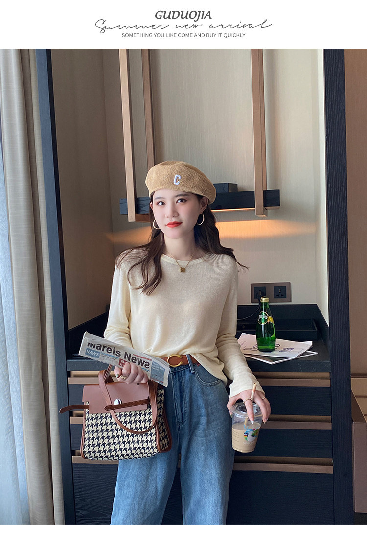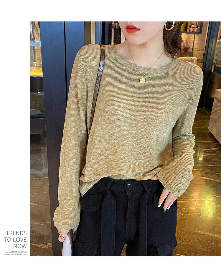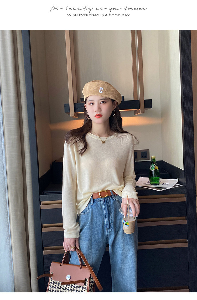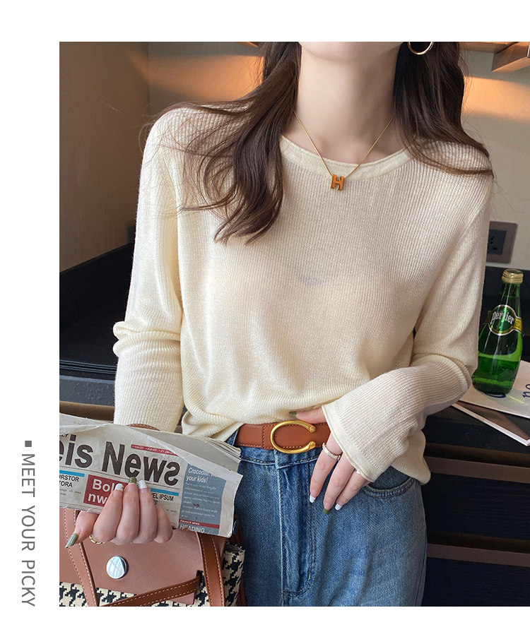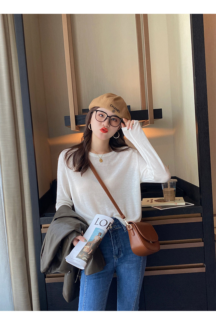 粉色針織打底衫女春秋2026新款時尚百搭顯瘦洋氣內搭長袖圓領上衣